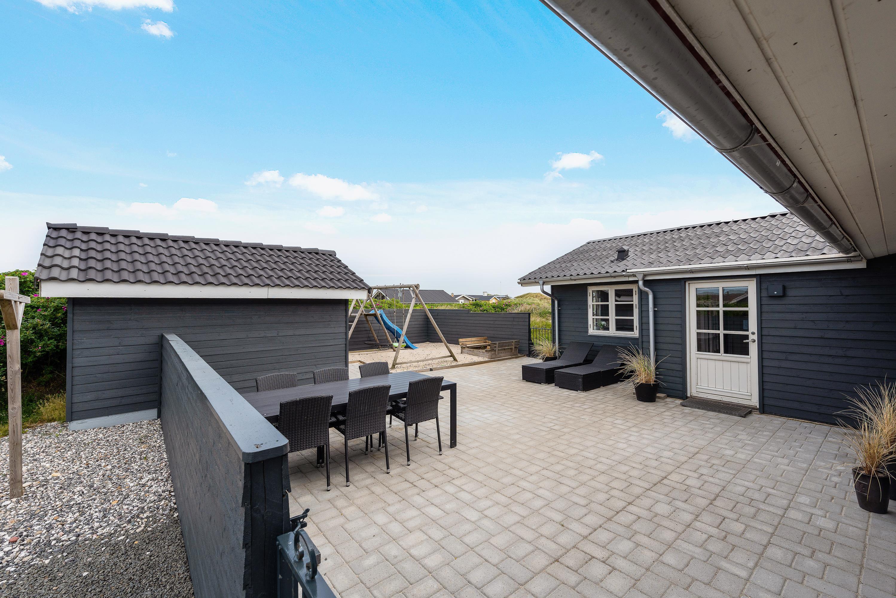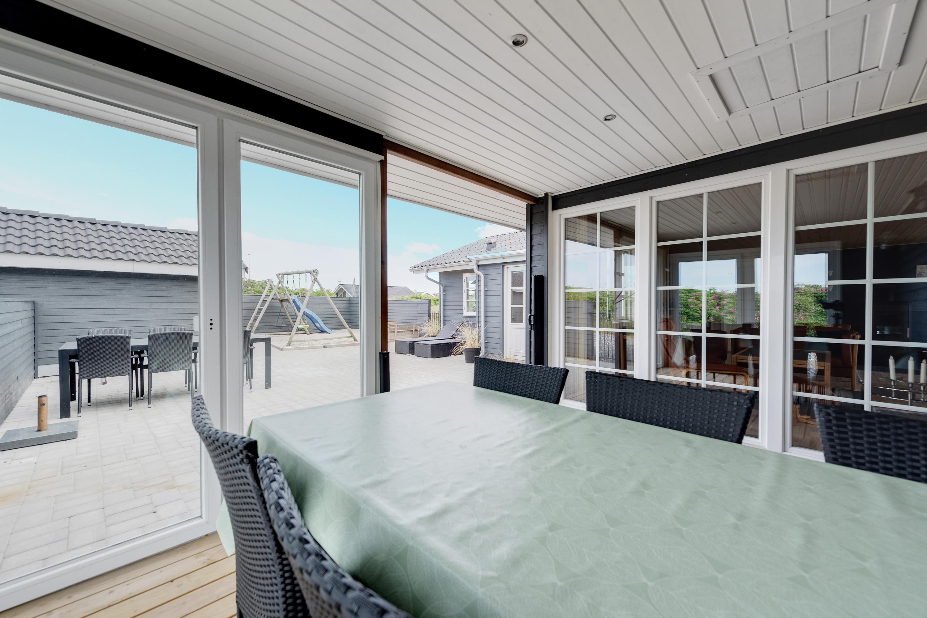 Nyd en lækker, veltilberedt grillmiddag, imens solen farver himlen orangerød over klitterne. Fra stuen er der adgang til en stor, overdækket del af den lukkede terrasse, hvor I kan sidde og nyde den friske luft og naturen, hvis vejret ikke helt er til udetid.