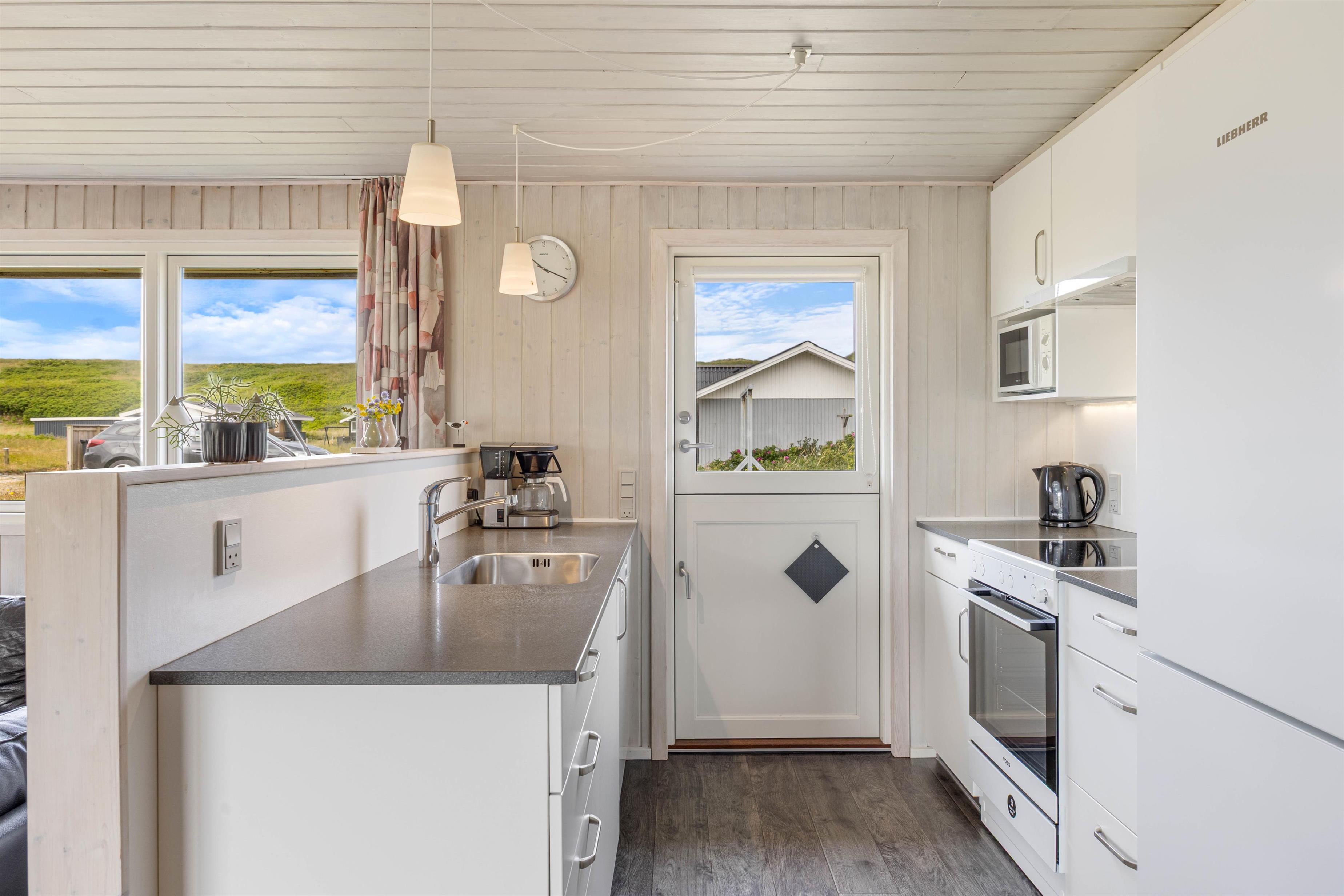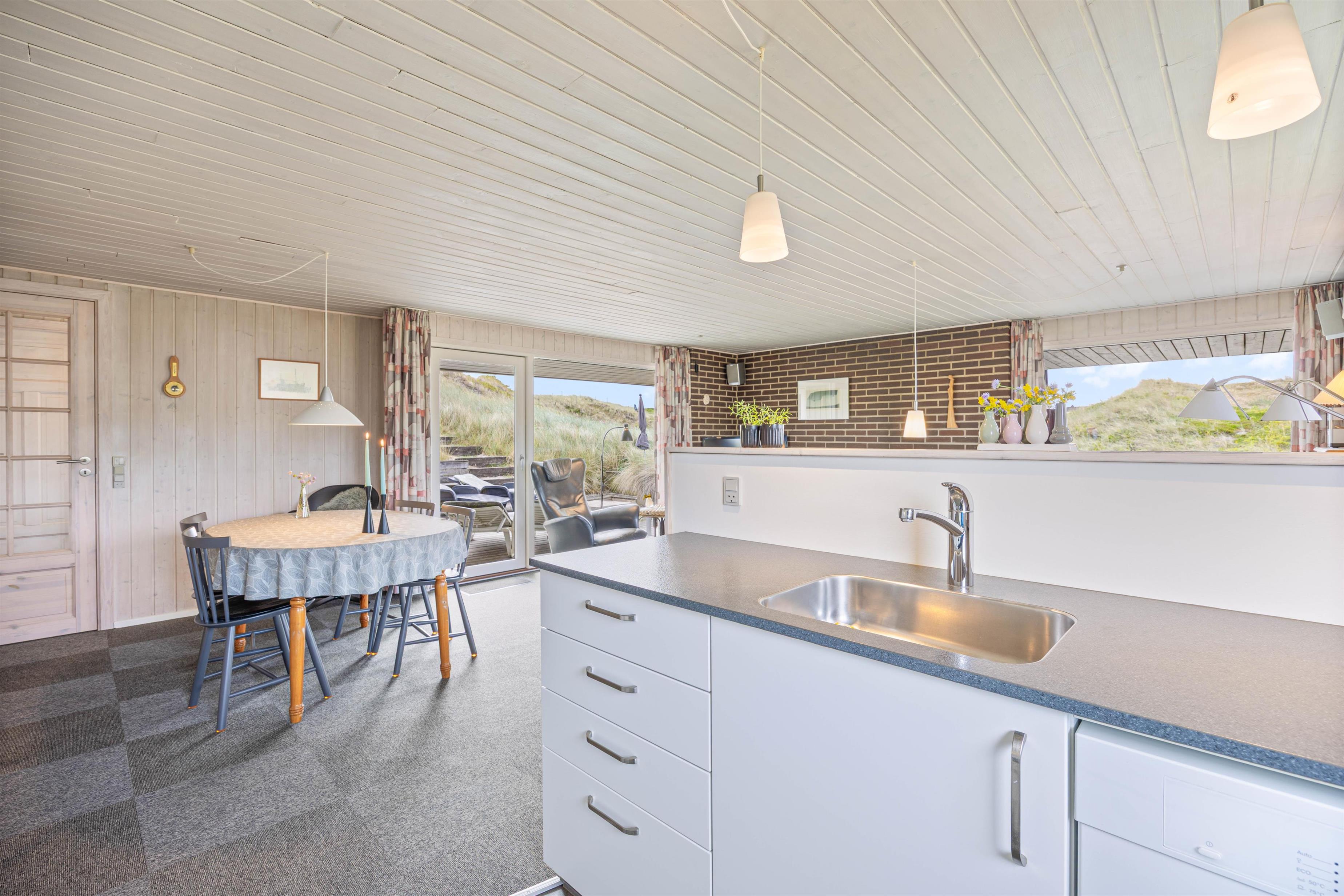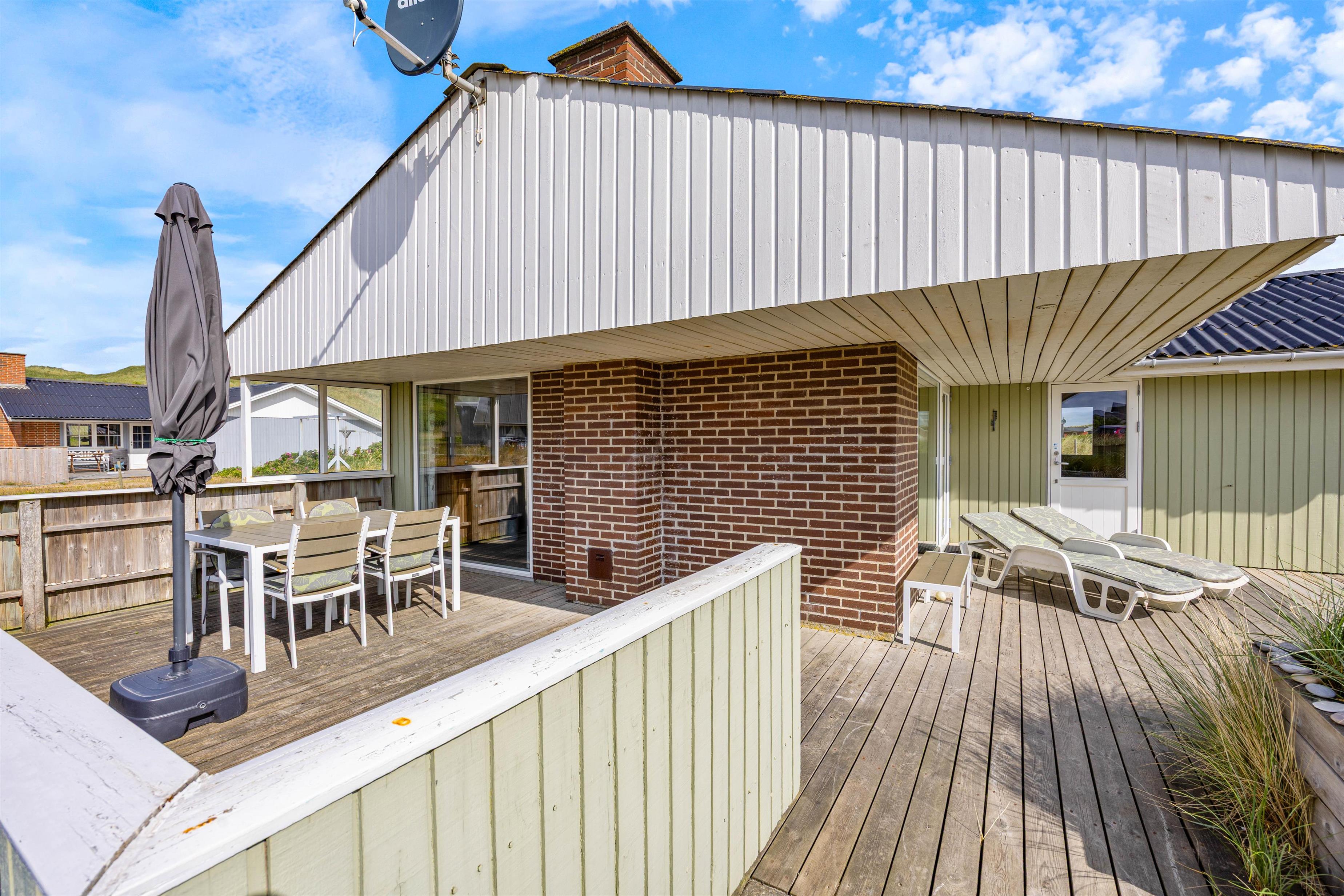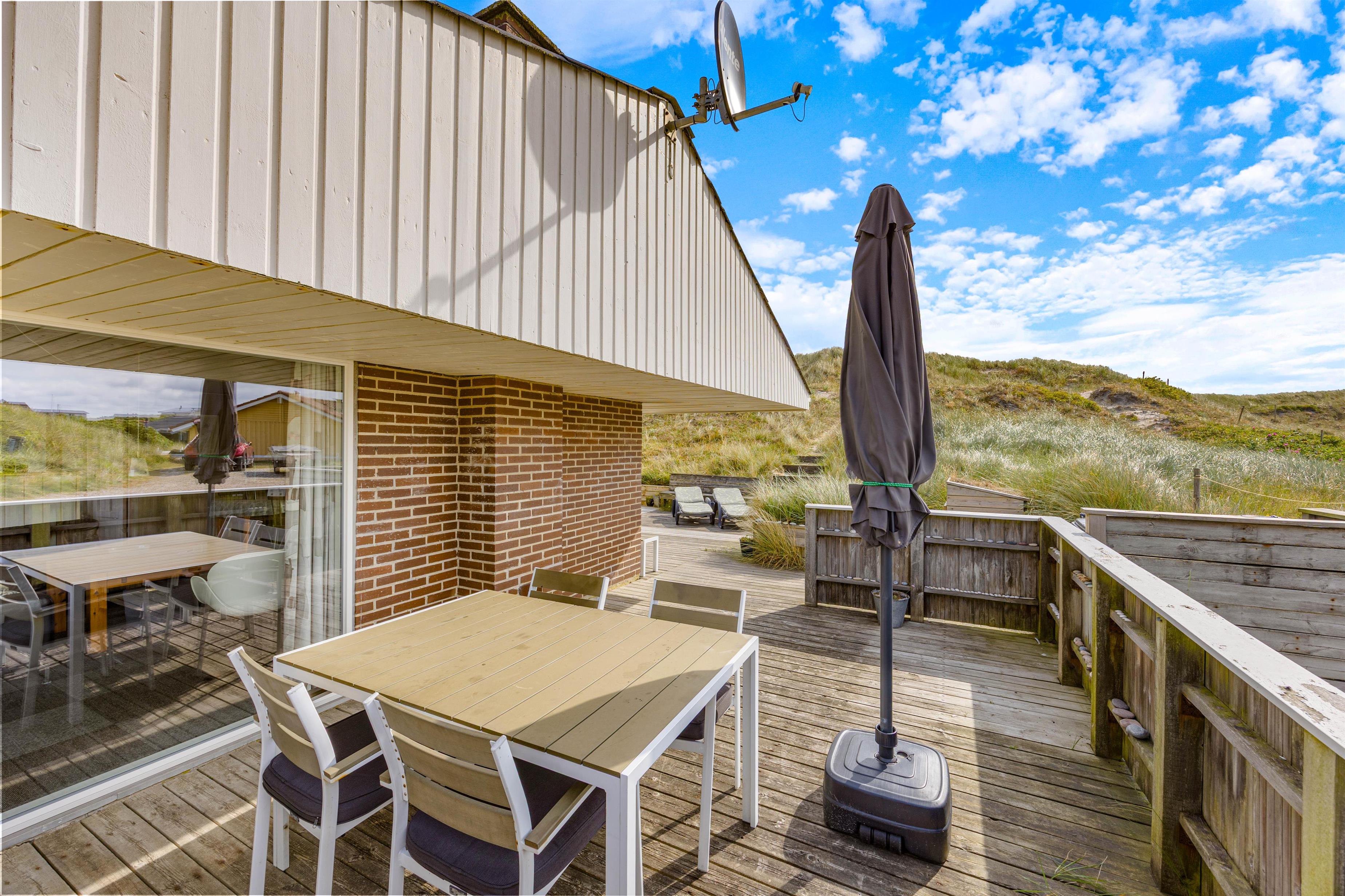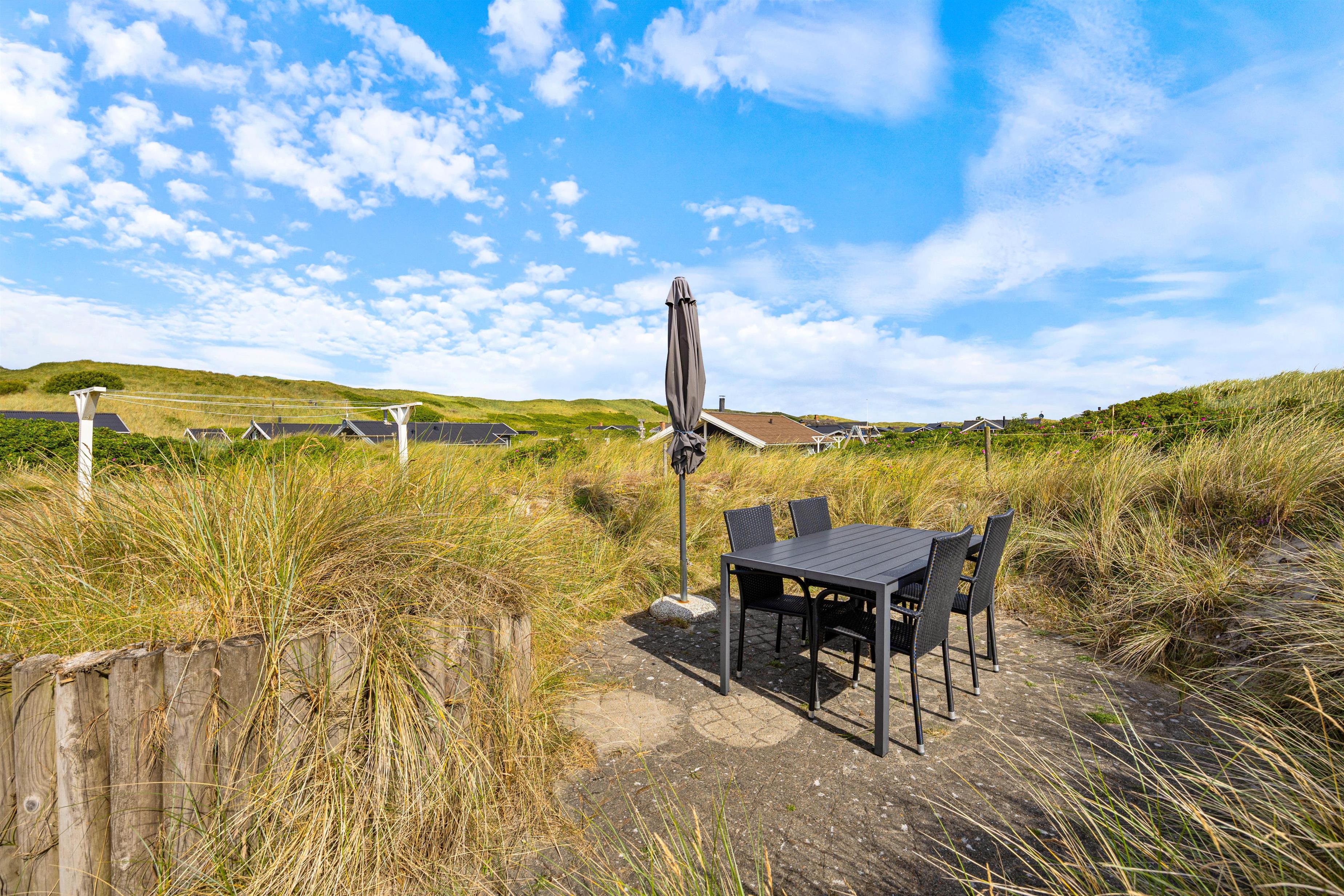 På den 1600 kvm store klitgrund er der en delvist overdækket terrasse, hvor du kan slappe af i fred og ro. Du kan tilberede en lækker middag med frisk fisk, pølser eller bøffer på husets grill. Med beliggenheden for enden af en blind vej og tæt på Vesterhavet, vil du have havets brusende bølger som lydtæppe på ferien. På den tilstødende klit er der yderligere siddepladser, så du kan vælge din favoritplads alt efter vejret. Gå ikke glip af solnedgangen, som du kan se fra bænken i klitterne.