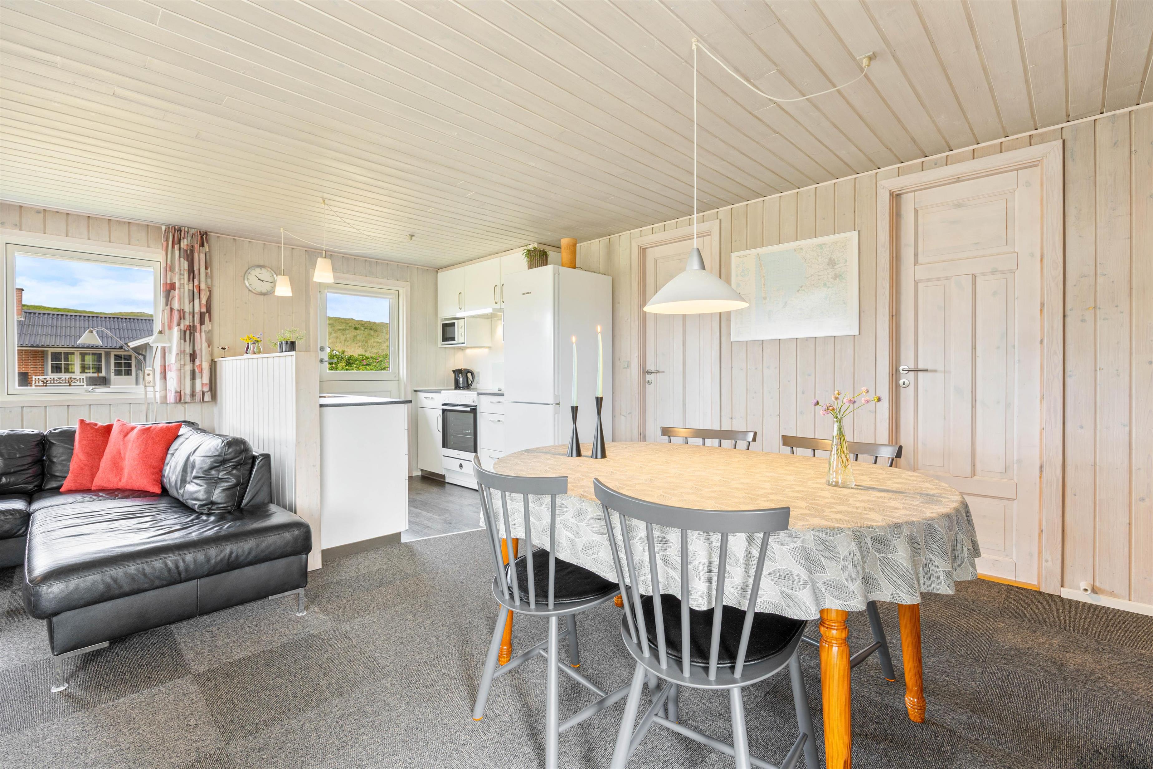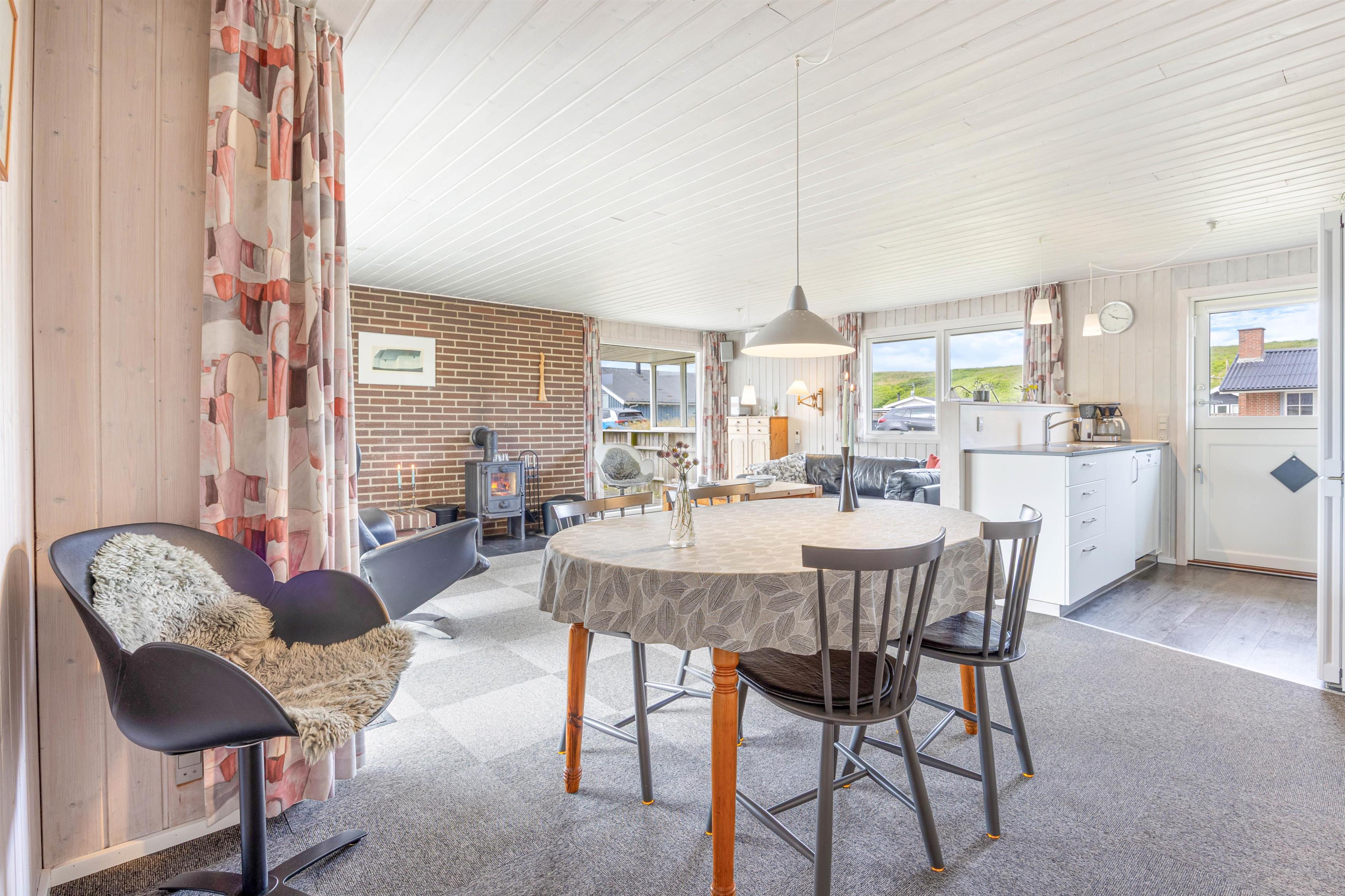 Kun 150 meter fra Vesterhavet ligger dette charmerende sommerhus. Her er en fin sauna og et dejligt udeområde, hvor I kan nyde den friske vesterhavsluft på klitgrunden. 78 velindrettede kvm giver plads til op til 5 gæster, og familiens hund er også velkommen.