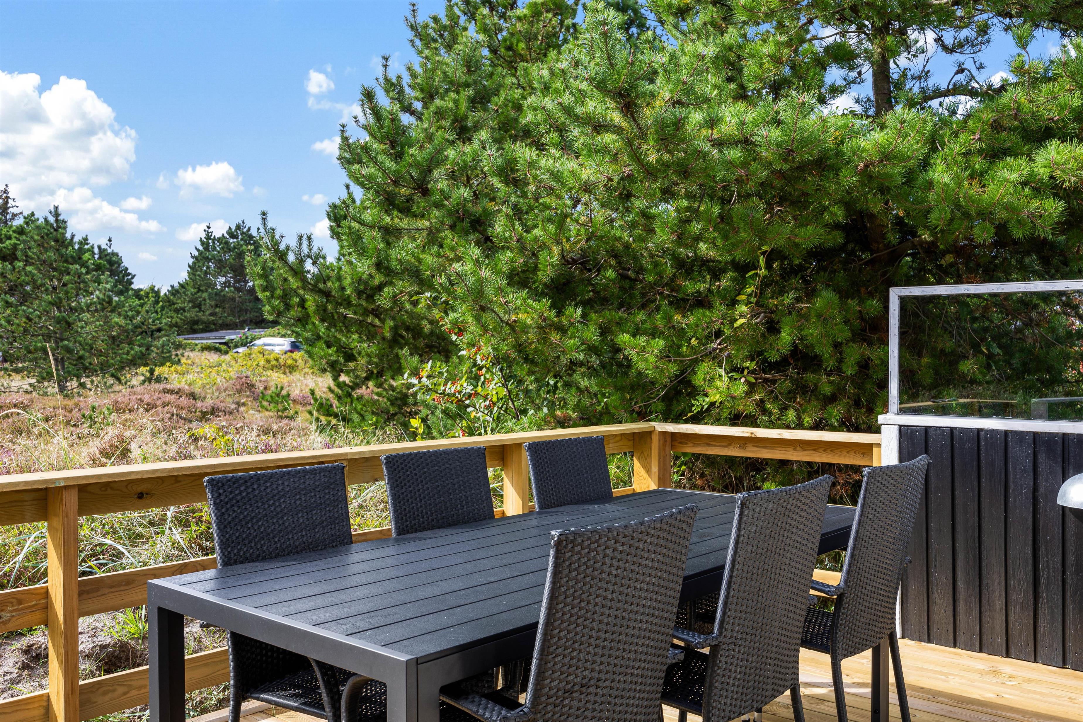 Den afskærmede og lukkede terrasse er det perfekte sted at nyde morgenkaffen eller en aften med grillmad. Med havemøbler og en grill til rådighed, kan I spise udendørs og nyde de smukke omgivelser. Der er også en overdækket terrasse, hvis I trænger til skygge eller læ.