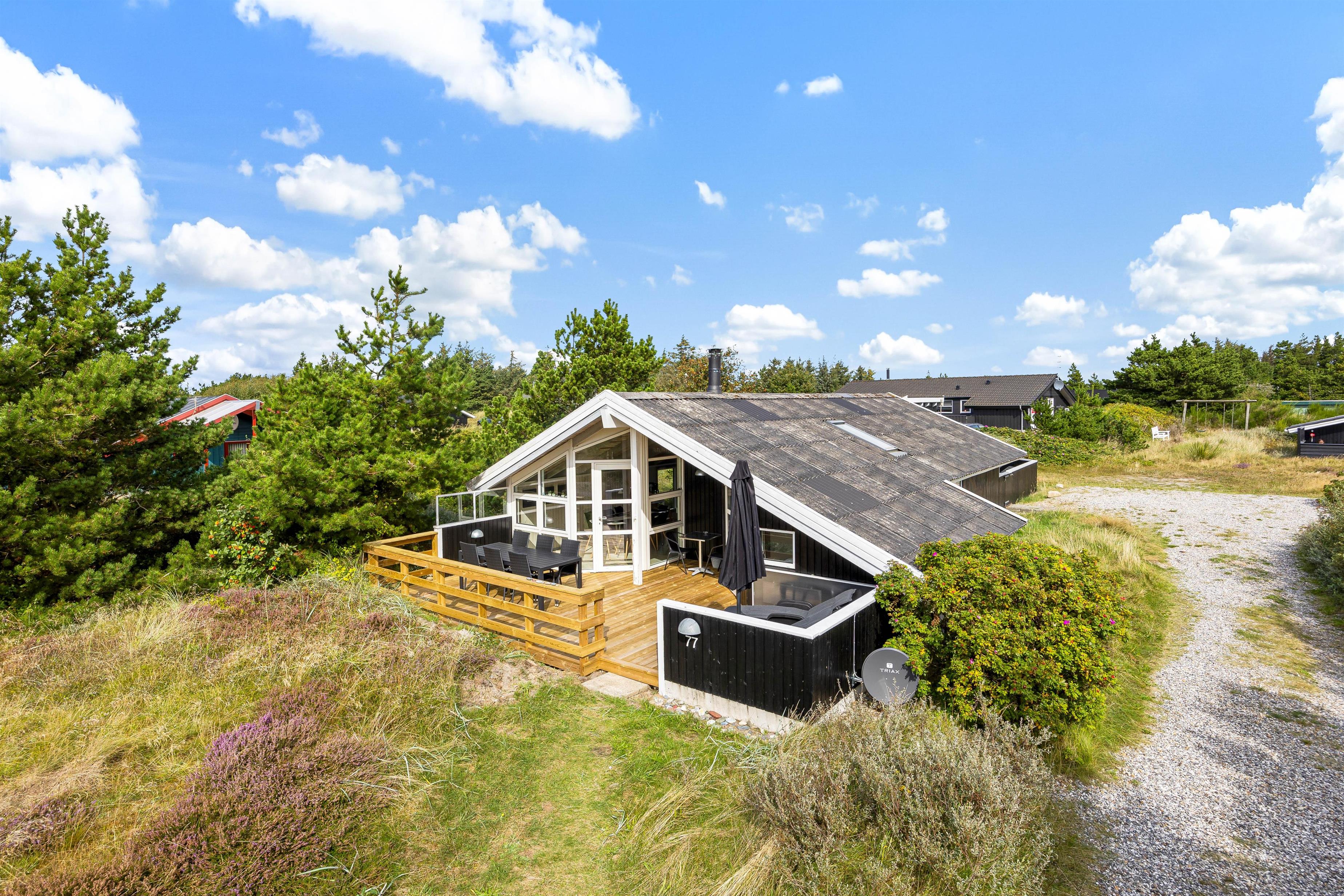 Bjerregård er en perle på den danske vestkyst, kendt for sin betagende natur og rolige atmosfære. Området tilbyder en blanding af klitter, strand og skov, som skaber det perfekte miljø for en afslappende Vesterhavsferie. Den lokale strand, som kun ligger 850 meter fra sommerhuset på Bjerregårdsvej 77, er et populært sted for både afslapning og vandsport. Her kan I tage lange gåture, samle muslinger eller blot nyde solen.