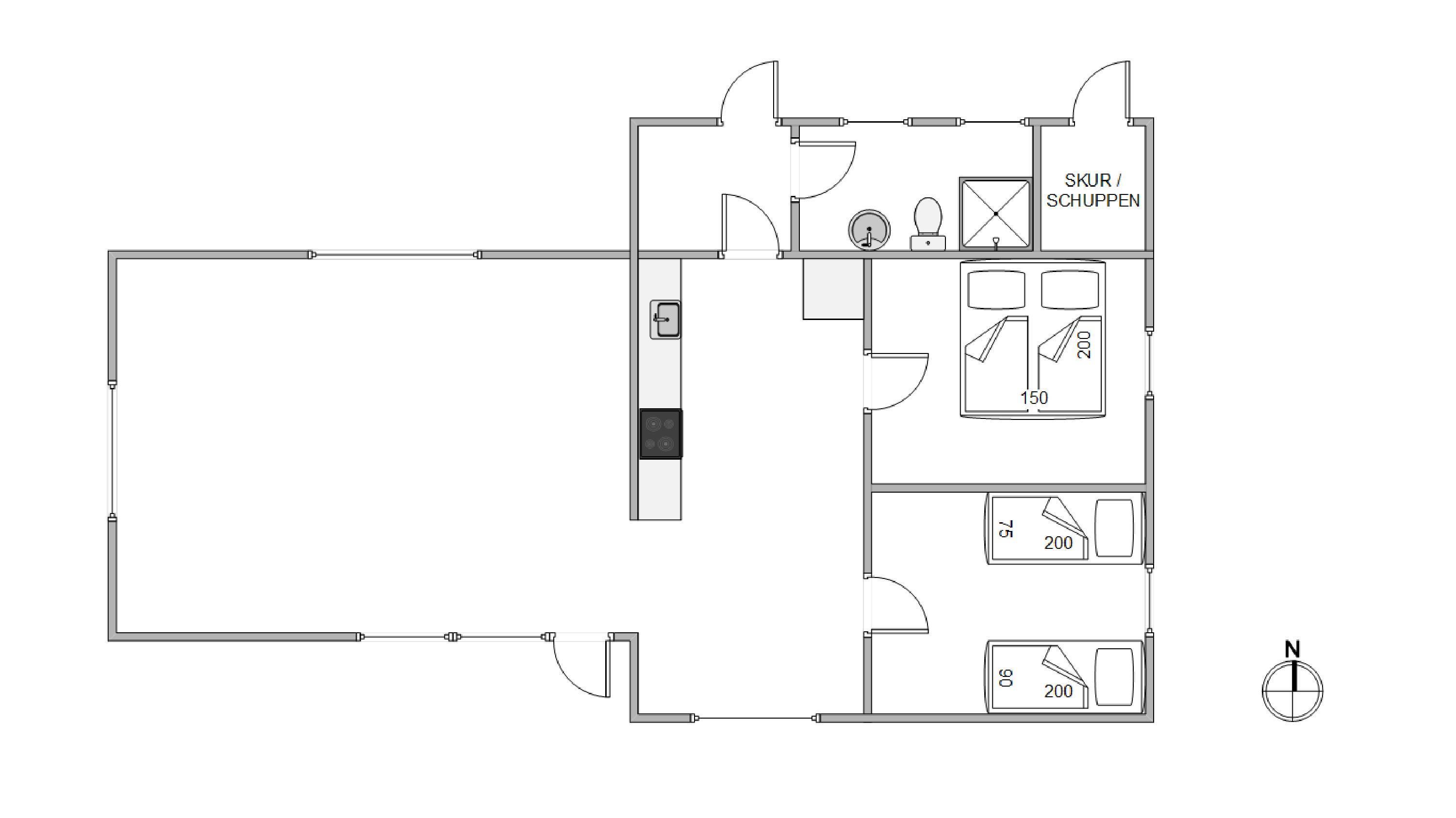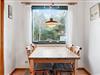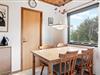 Det første, der møder jer, når I træder ind i feriehuset, er en praktisk entré til opbevaring af overtøj og fodtøj. Herfra er der indgang til det lille køkken med blandt andet opvaskemaskine og god skabsplads. Ud for køkkenet er spisebordet placeret. Herfra kan kokken underholdes, eller I kan nyde et glas vin, mens der holdes øje med maden, der koger færdig på komfuret, og børnene spiller spil.