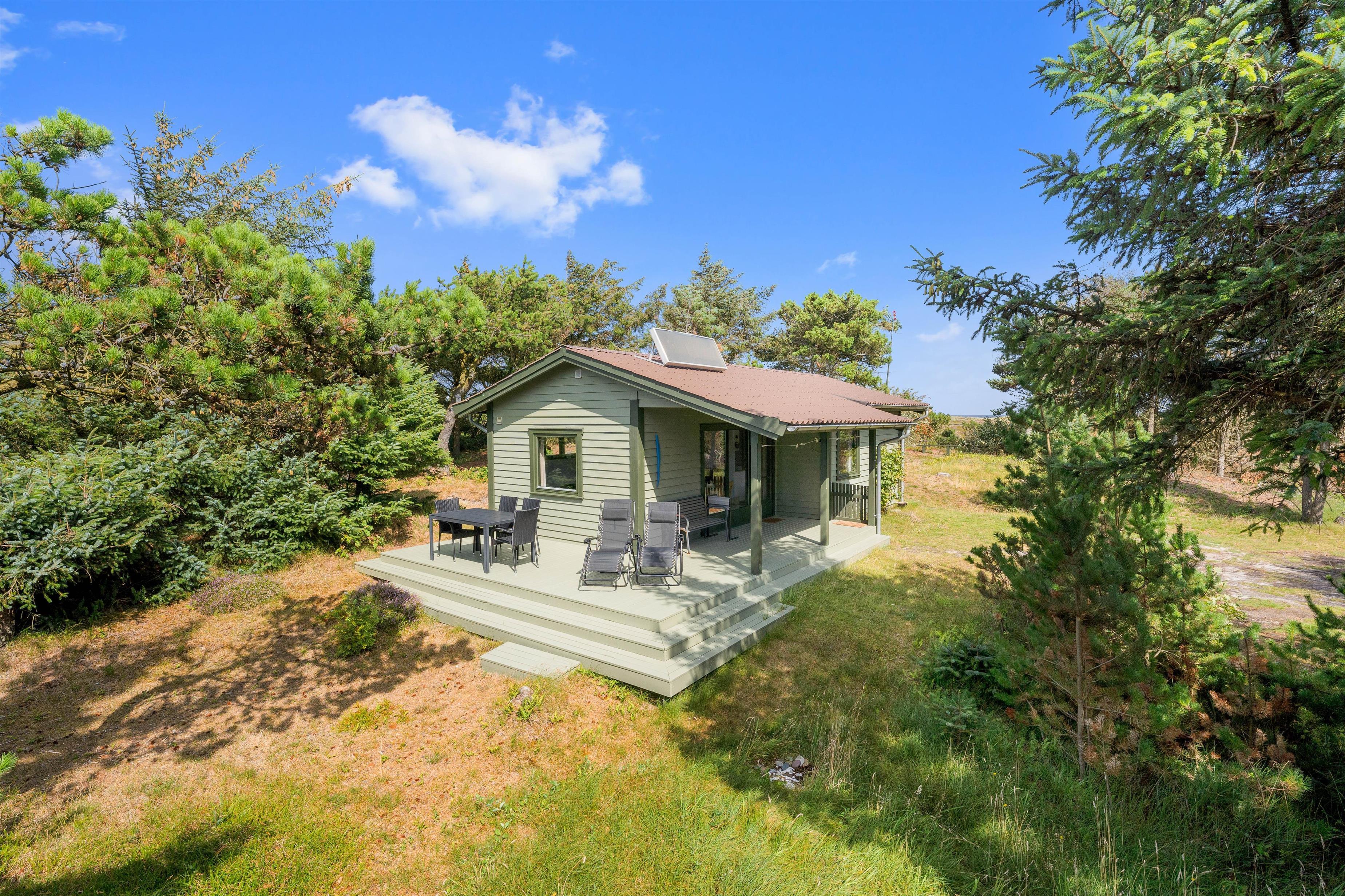 På Sønder Klitvej 206 med naturskøn og fuldstændig uforstyrret beliggenhed, finder du dette hyggelige 2-stjernede sommerhus fra 1976 til den lille familie eller vennepar. Feriehuset er på 50 m2 og ligger på en ugeneret klitgrund, så I kan nyde at være jer selv. Bliv dog ikke forbavset, hvis et rådyr skulle komme og hilse på.