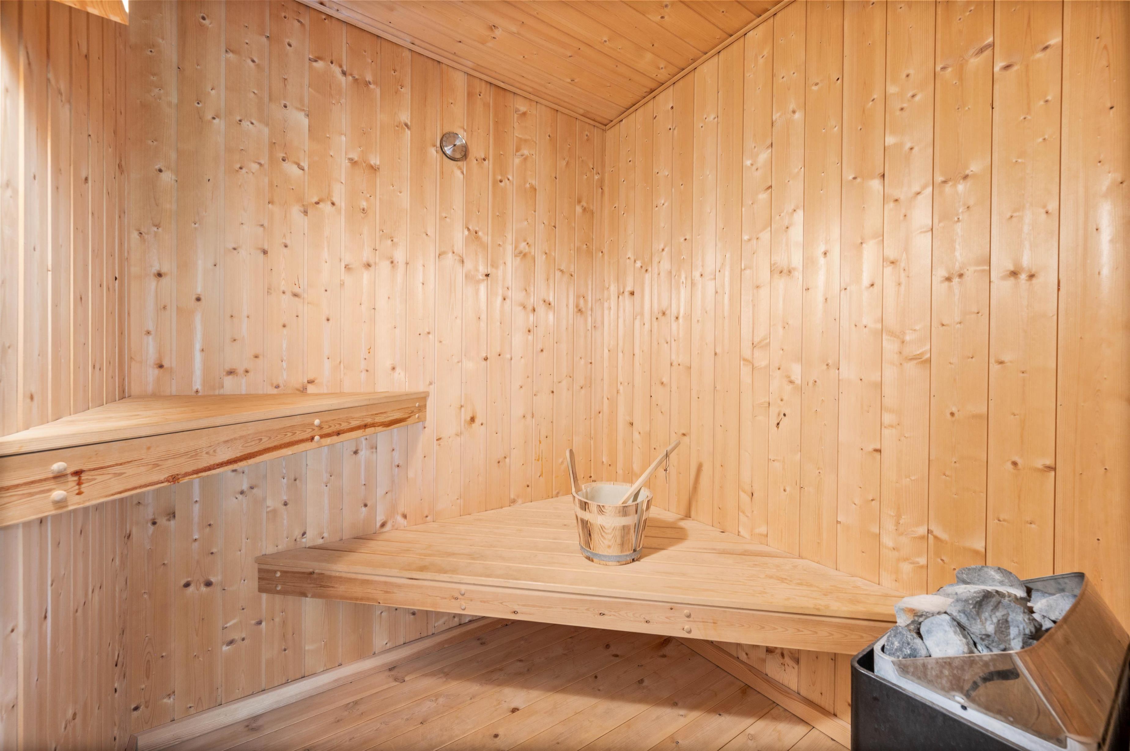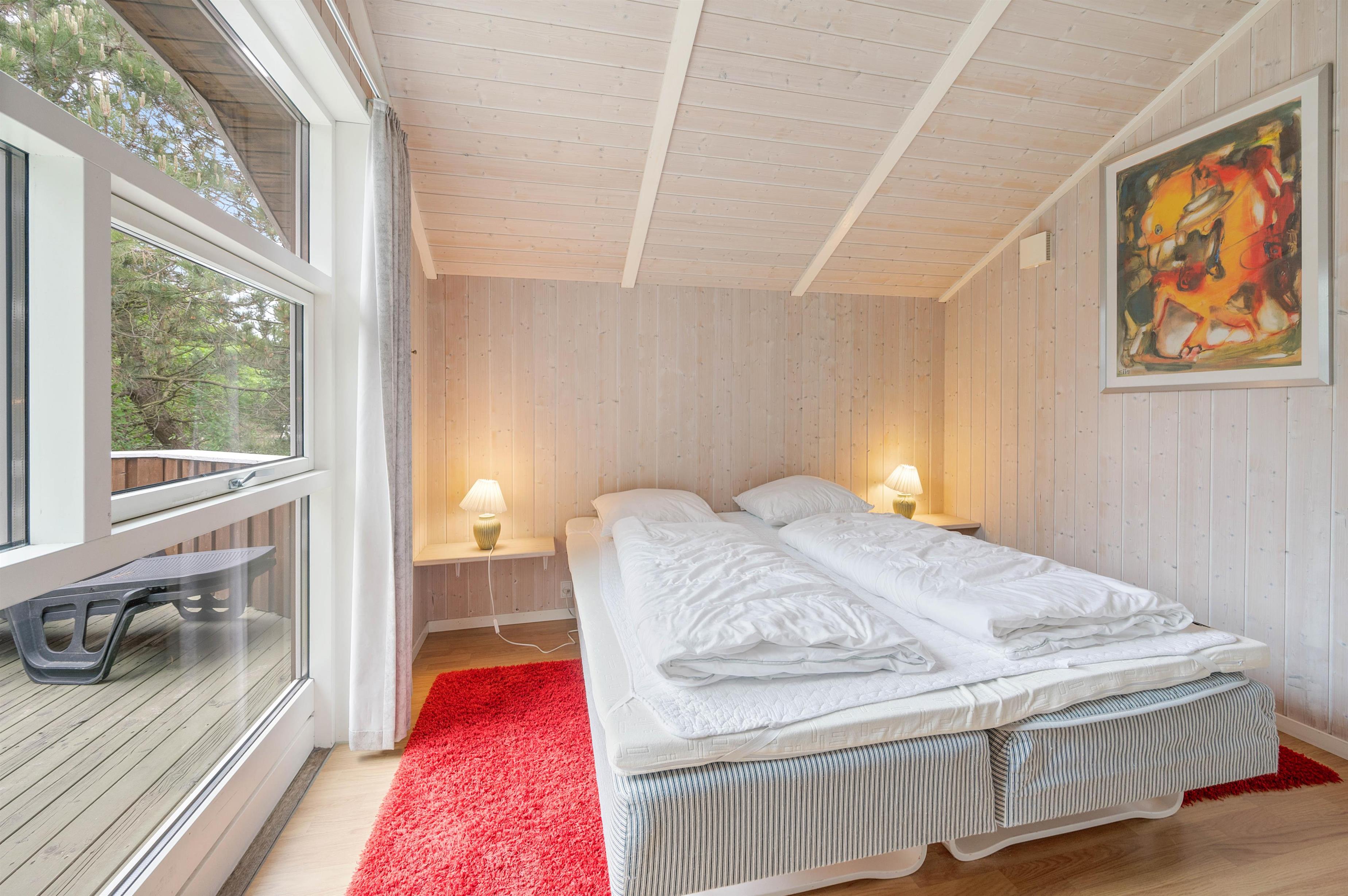Feriehusets 2 badeværelser er begge med brus og gulvvarme, og på det store badeværelse kan I slappe af i spabadet eller få varmen i saunaen – herinde har I også en vaskemaskine til rådighed, som gør det muligt at vaske tøj eller strandhåndklæder undervejs. Ud af de 4 soveværelser er 3 indrettet med en dobbeltseng, mens det sidste har 2 enkeltsenge.