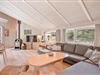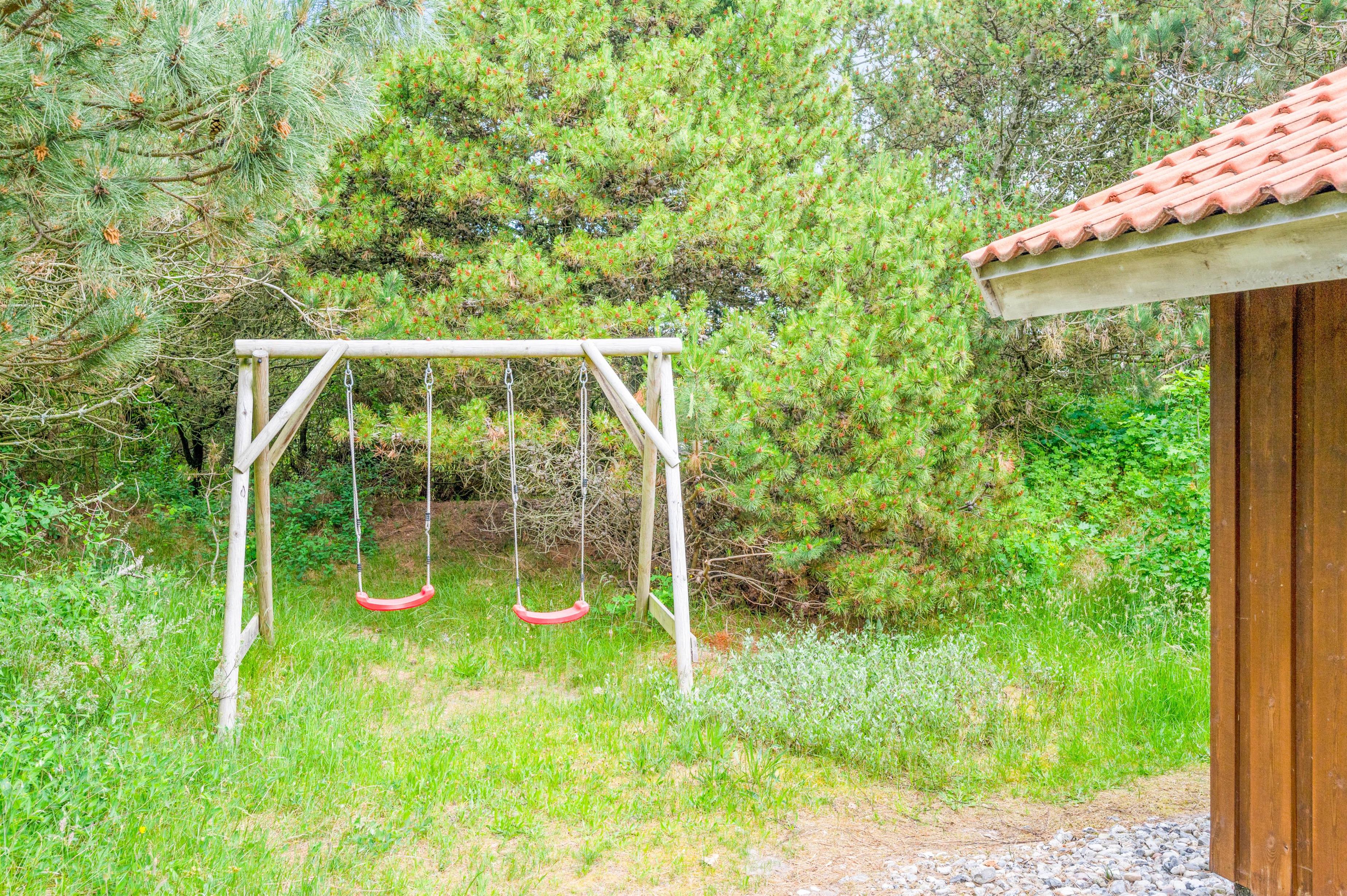 På den vestlige side findes den fine lukkede terrasse, som er delvist overdækket. Her kan I trygt lade børn eller hundene bevæge sig frit. Udstyret med havemøbler, liggestole og en grill, er her perfekt til masser af udendørshygge på en varm sommerdag, hvor grillen bliver tændt til aftensmaden. Bag feriehuset er et gyngestativ, som de små helt sikkert vil få glæde af.