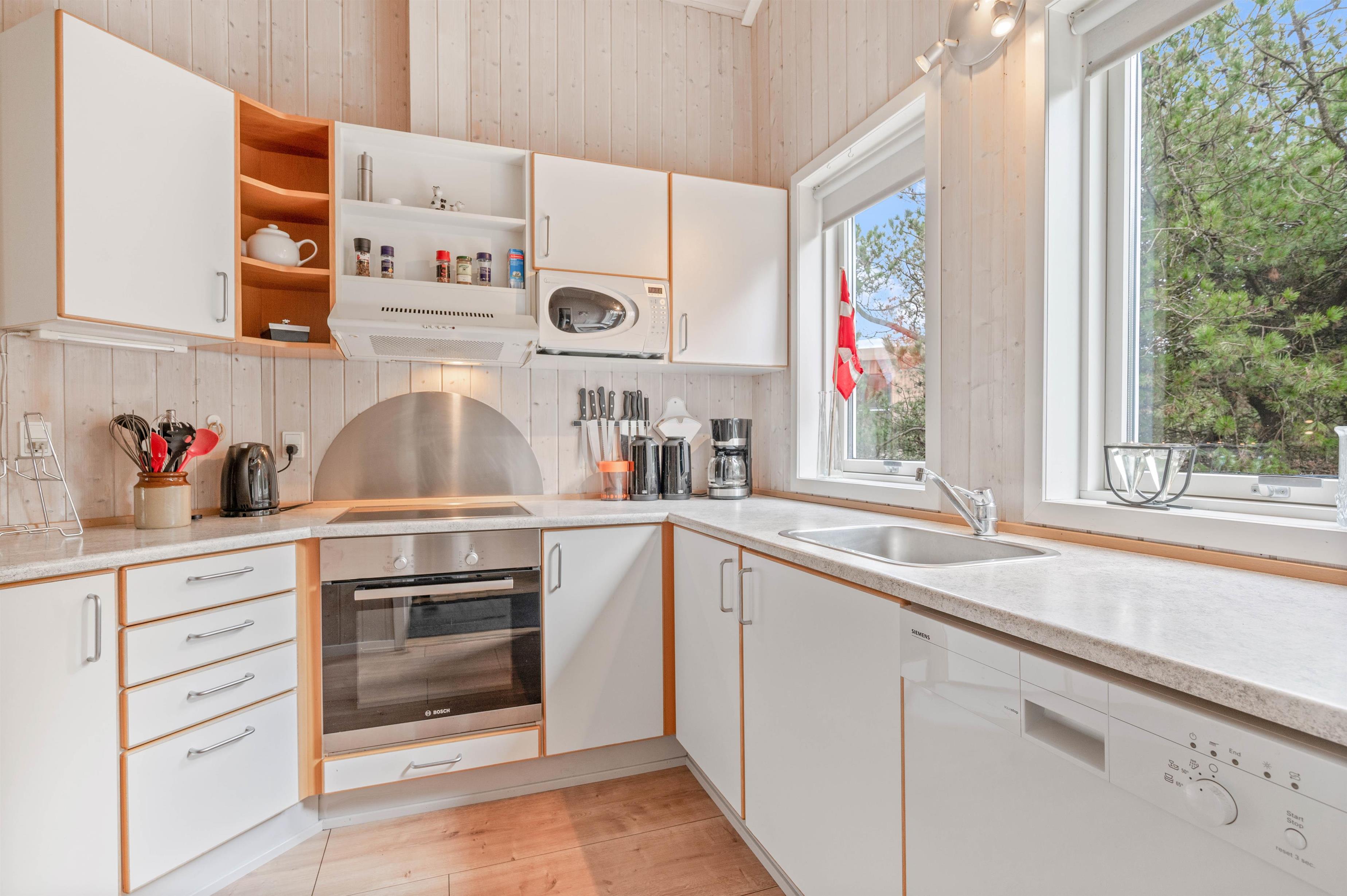 Vesterhavets brede sandstrande er i gåafstand fra feriehuset, og det samme gælder den lokale købmand i Bjerregård. Her bliver der dagligt leveret friske forsyninger fra bageren i Hvide Sande. Området er forbundet af gode cykelstier, der snor sig gennem det smukke hede landskab både mod Nymindegab i syd og helt til Hvide Sande og Søndervig i nord. Begge byer emmer af liv, særligt i sommermånederne, og der er rig mulighed for prøve kræfter med surfing, handle i de lokale forretninger eller besøge én af de lækre caféer.