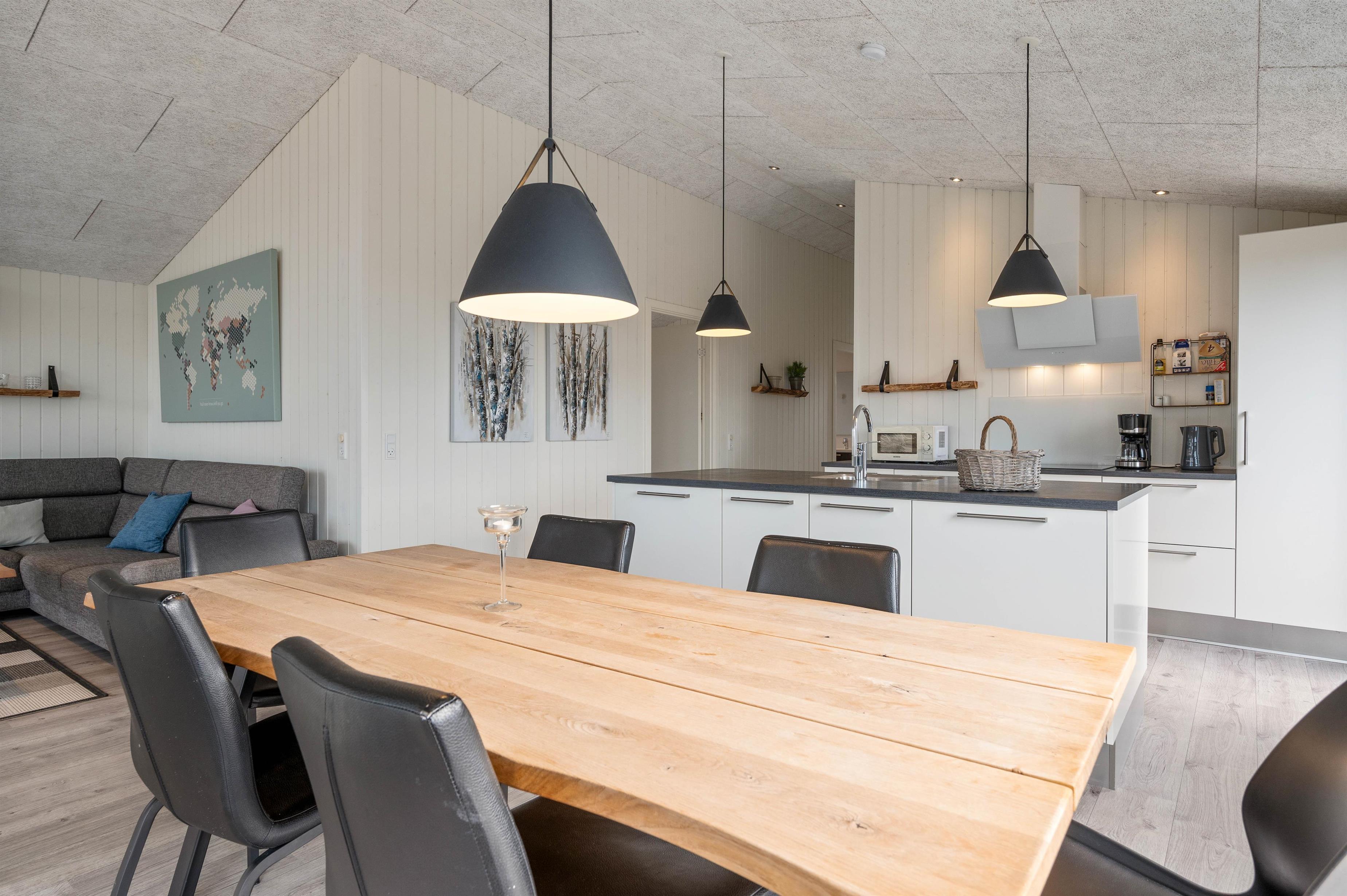 I opholdsrummet smelter køkken, stue og spiseafdeling sammen i ét. Her er I lovet kvalitetstid med familie og venner; både med fælles madlavning i køkkenet, middage omkring spisebordet eller en sen filmaften på sofaen. På fjernsynet kan I logge på Netflix og streame, mens lænestolen i brændeovnshjørnet er perfekt til ferielæsningen. Sæt dig godt til rette med en god bog, nyd udsigten udover det fredelige område og mærk varmen fra brændeovnen. Til at sørge for et behageligt indeklima har I naturligvis også en varmepumpe, og med lynhurtig internetforbindelse kan I nemt holde jer opdateret eller ordne arbejdet, der evt. skal klares undervejs.