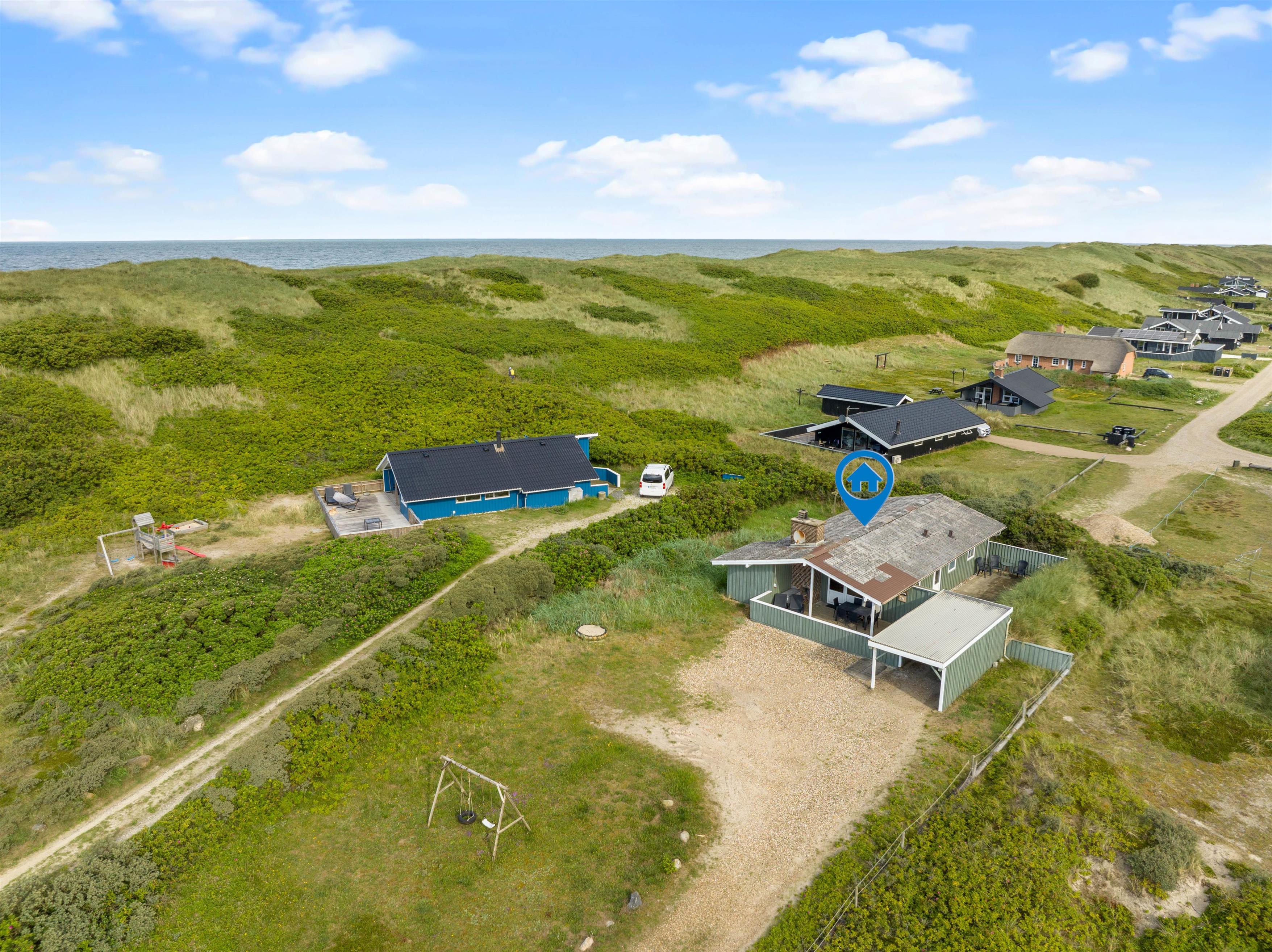 Sommerhuset har den bedst tænkelige beliggenhed i sidste klitrække kun 50 meter fra Vesterhavet og den dejlige sandstrand – Det perfekte udgangspunkt for en afslappende ferie og med den smukke vestjyske natur lige uden for døren.
