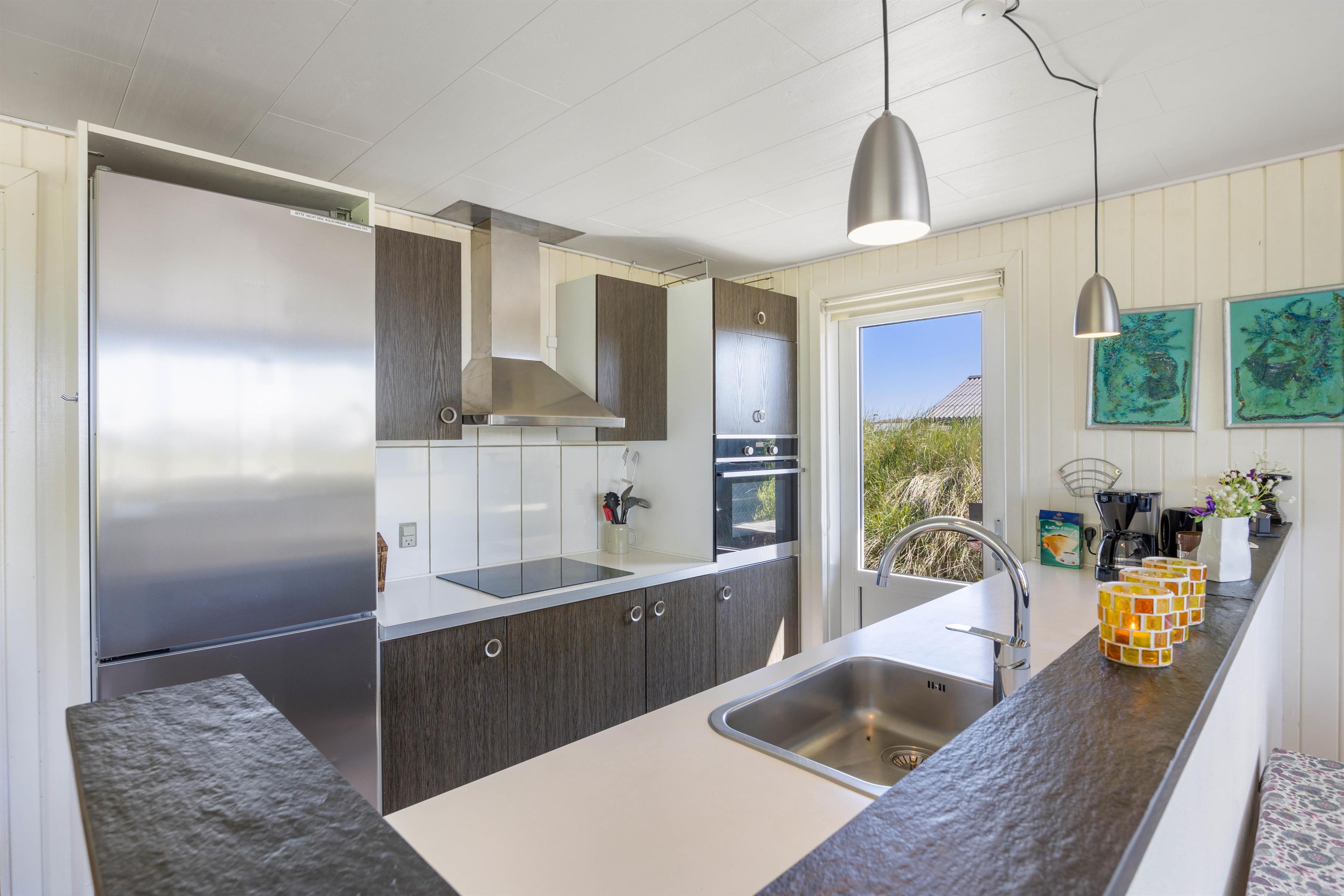På Rauhesvej 74 finder I dette hyggelige sommerhus med en fantastisk beliggenhed i yderste klitrække. Herfra er der blot 50 meter til Vesterhavet og den fine sandstrand, som indbyder til lange gåture med fødderne i vandet. Dette 2-stjernede feriehus til 4 personer har 2 terrasser, hvoraf den ene er lukket og udstyret med en udendørspejs. Jeres hunde er desuden hjertelig velkomne i feriehuset.