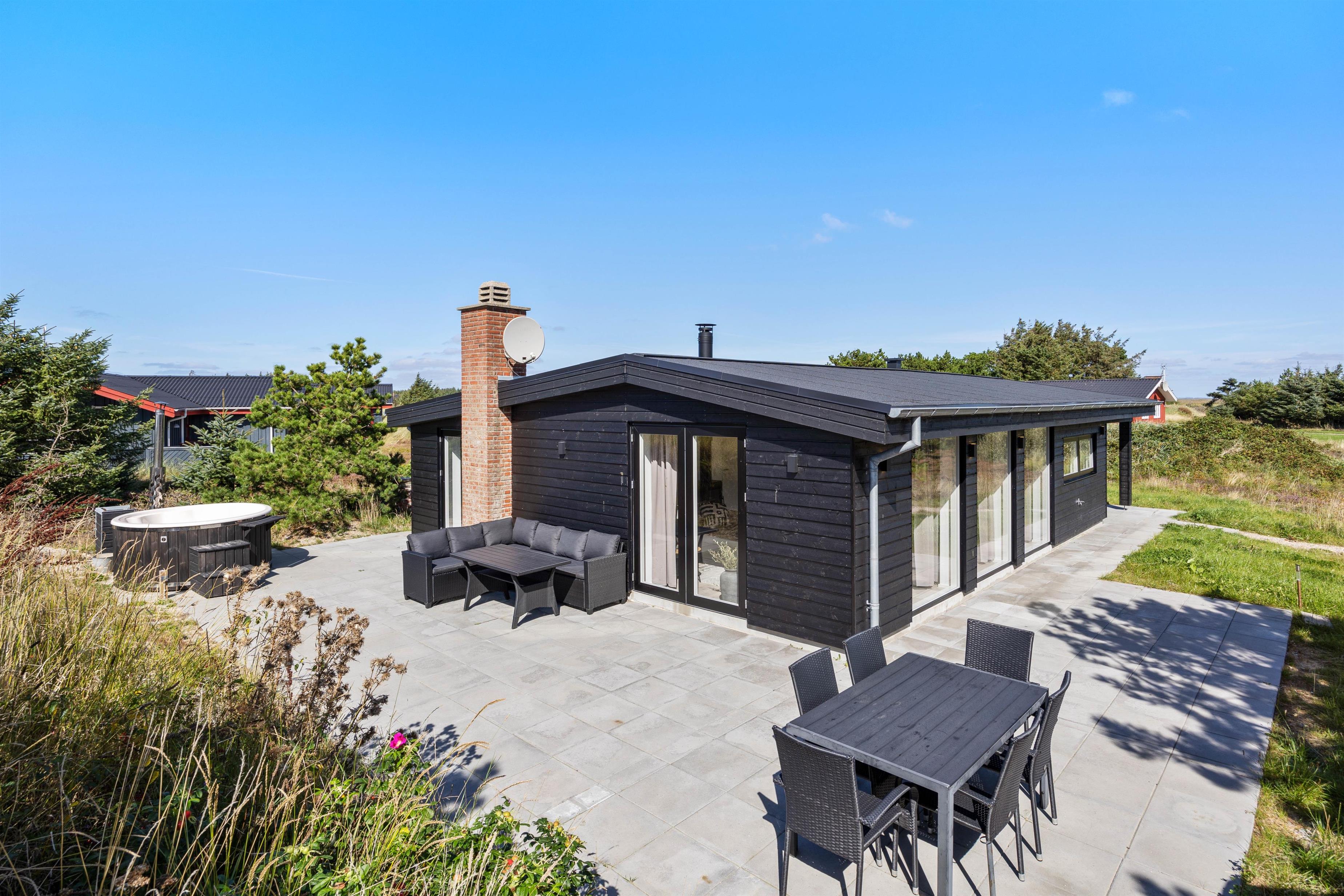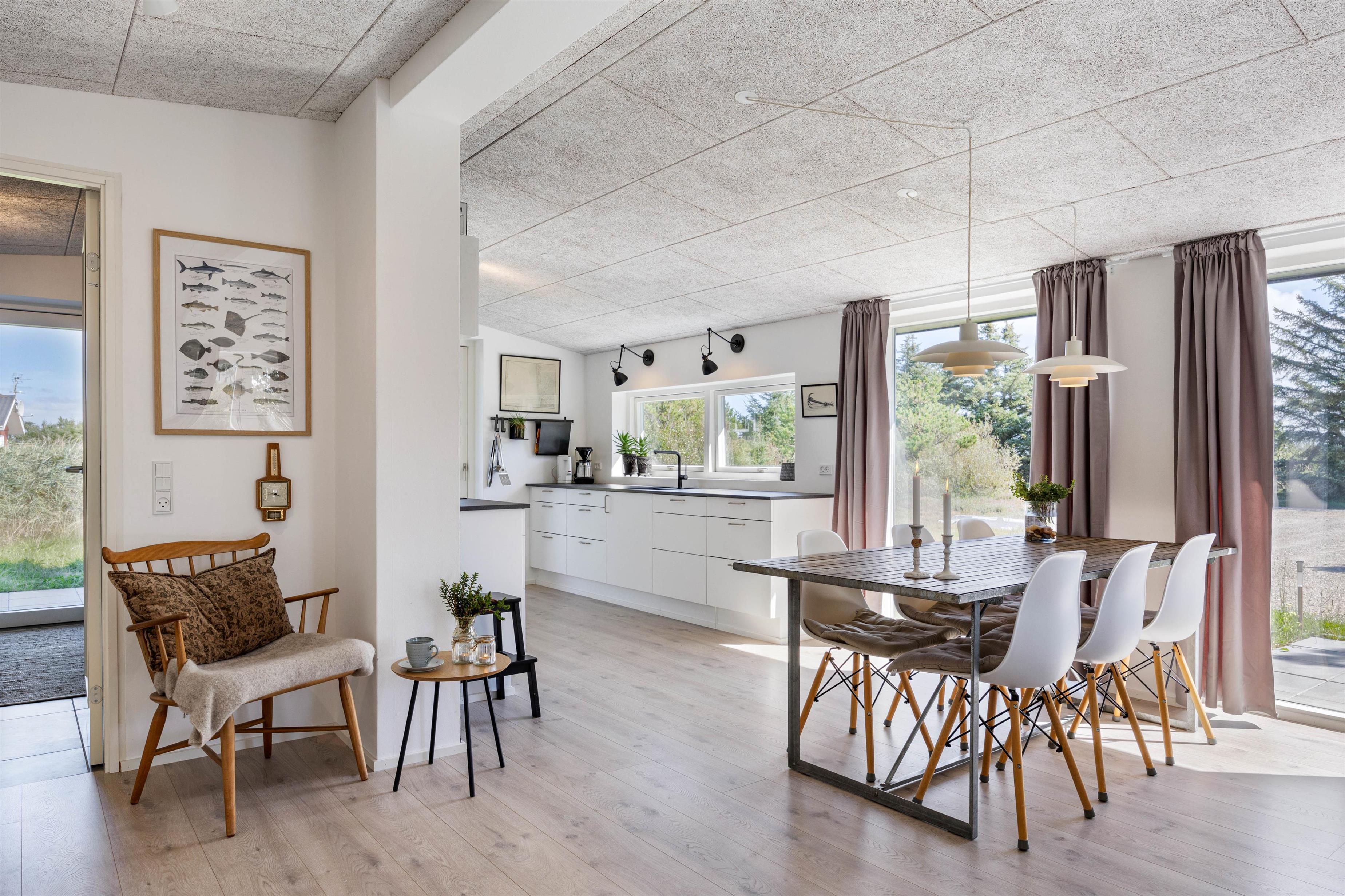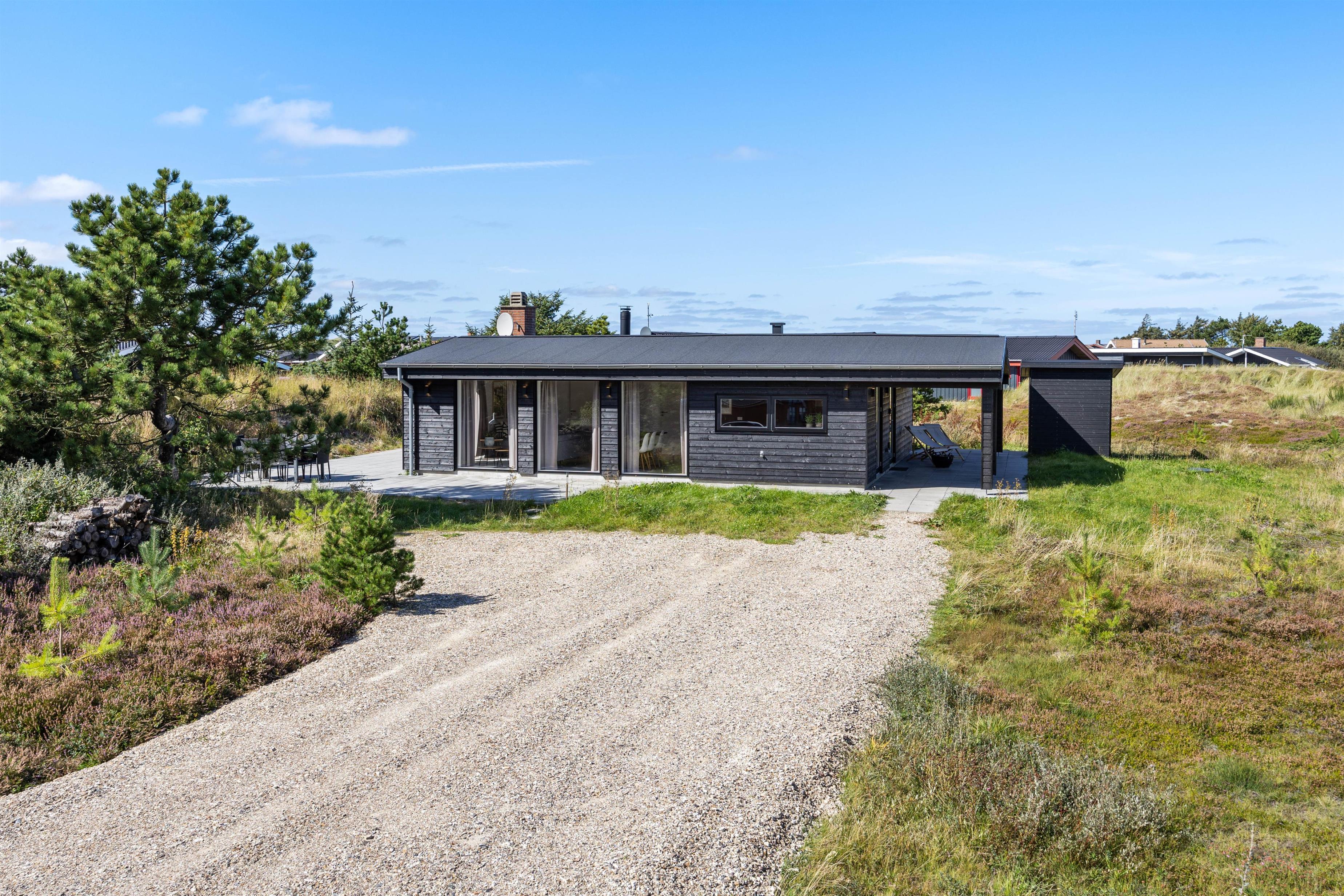 Det moderne feriehus ligger i det sydlige Bjerregård, mellem Vesterhavet og Ringkøbing Fjord. Herfra er der aldrig langt til vandet. For eksempel er der kun 600 meter til den kilometerlange sandstrand og en forfriskende dukkert i Vesterhavet.
