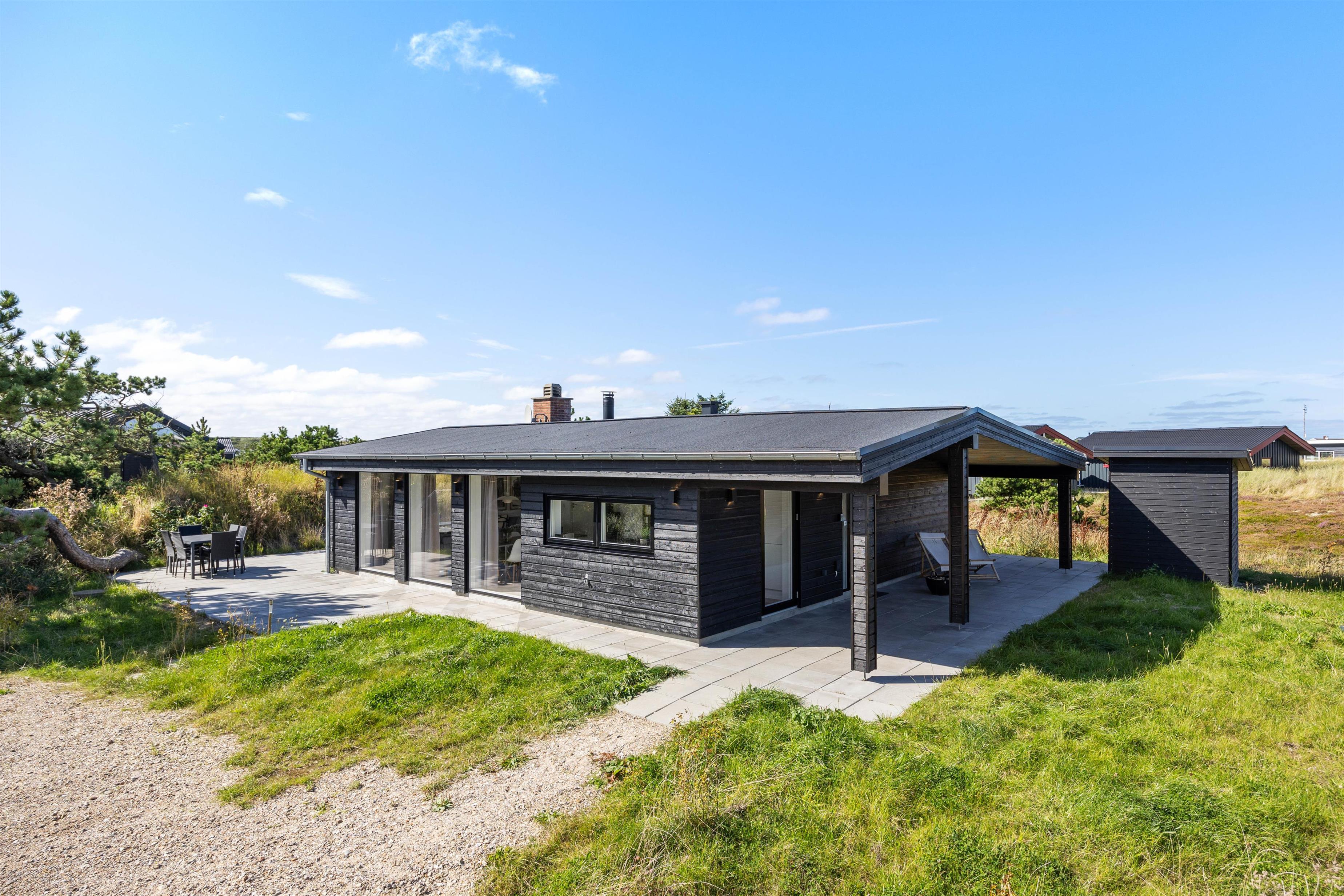 Er I på udkig efter et moderne feriehus fra 2023 med vildmarksbad og brændeovn, er dette sommerhus på P Chr Dahls Vej 8 lige noget for jer.