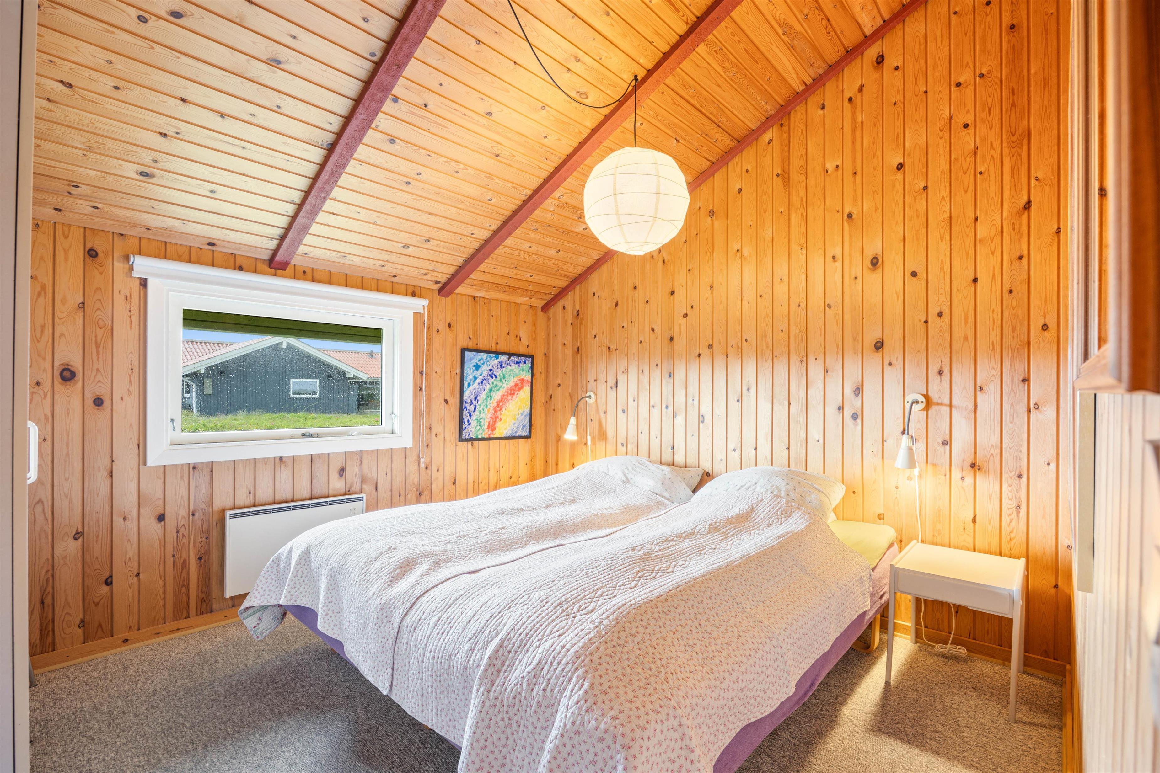 Badeværelset har gulvvarme og her er der adgang til saunaen, som er helt perfekt efter lange gåture i naturen. Her kan I blive varmet godt igennem og glemme hverdagen for en stund. Foruden badeværelset med sauna er der to soveværelser, hvoraf det ene er med en dobbeltseng og det andet med 2 enkeltsenge.