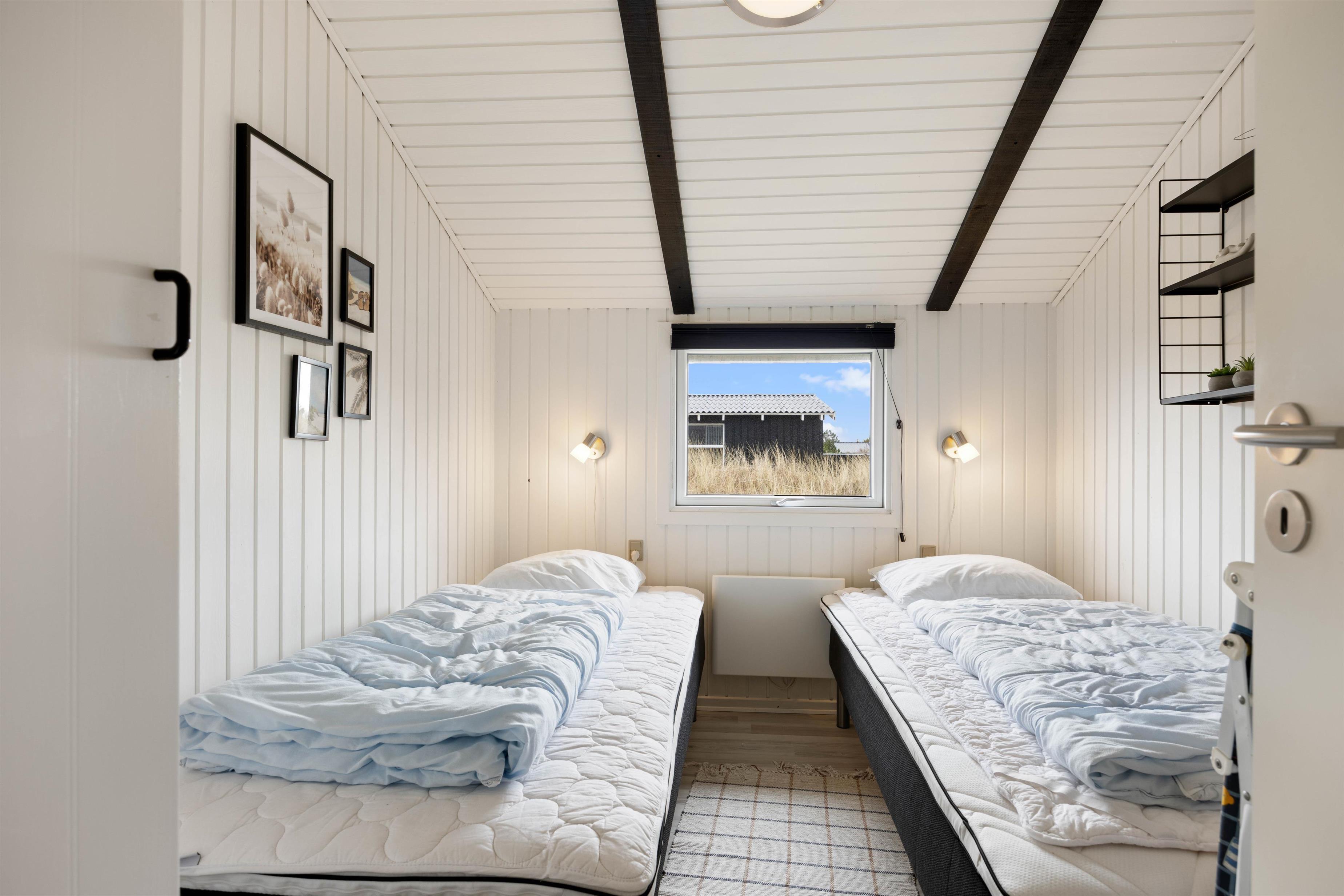 Dette store sommerhus har god plads til 8 personer. De 4 soveværelser er alle med trælaminat og 2 af soveværelserne har dobbeltsenge. De sidste 2 soveværelser har hver 2 enkeltsenge til en god nats søvn.