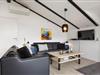 Det lyse køkken har en opvaskemaskine, en mikroovn og en fryser på 10 L. Køkken og stue er i et stort rum, hvor der er loft til kip, hvilket skaber en hyggelig atmosfære i rummet. I stuen er der en brændeovn, et TV, chromecast, parabol, en DVD og en radio m/CD-afspiller. Her er der god plads til familielivet, og I kan lave dejlig mad sammen, spille brætspil eller noget helt tredje - mulighederne er mange!