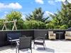 Der er en stor og skøn træterrasse mod syd. Den er delvis overdækket, delvis afskærmet og næsten helt lukket. Den er derfor særdeles anvendelig, både til lange og hyggelige grillaftener, til leg for børnene og til afslapning i solen. Desuden er der både sandkasse og gyngestativ til familiens yngste.