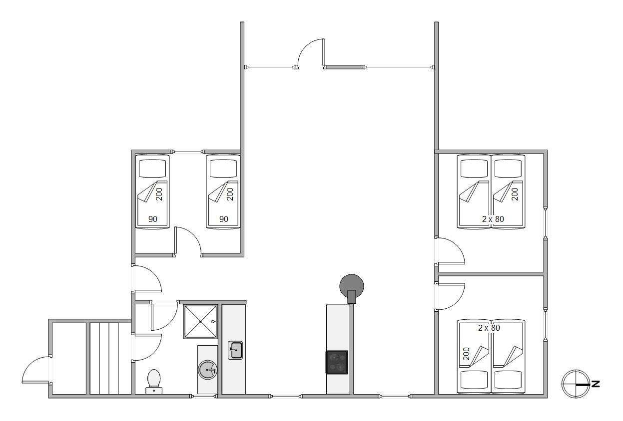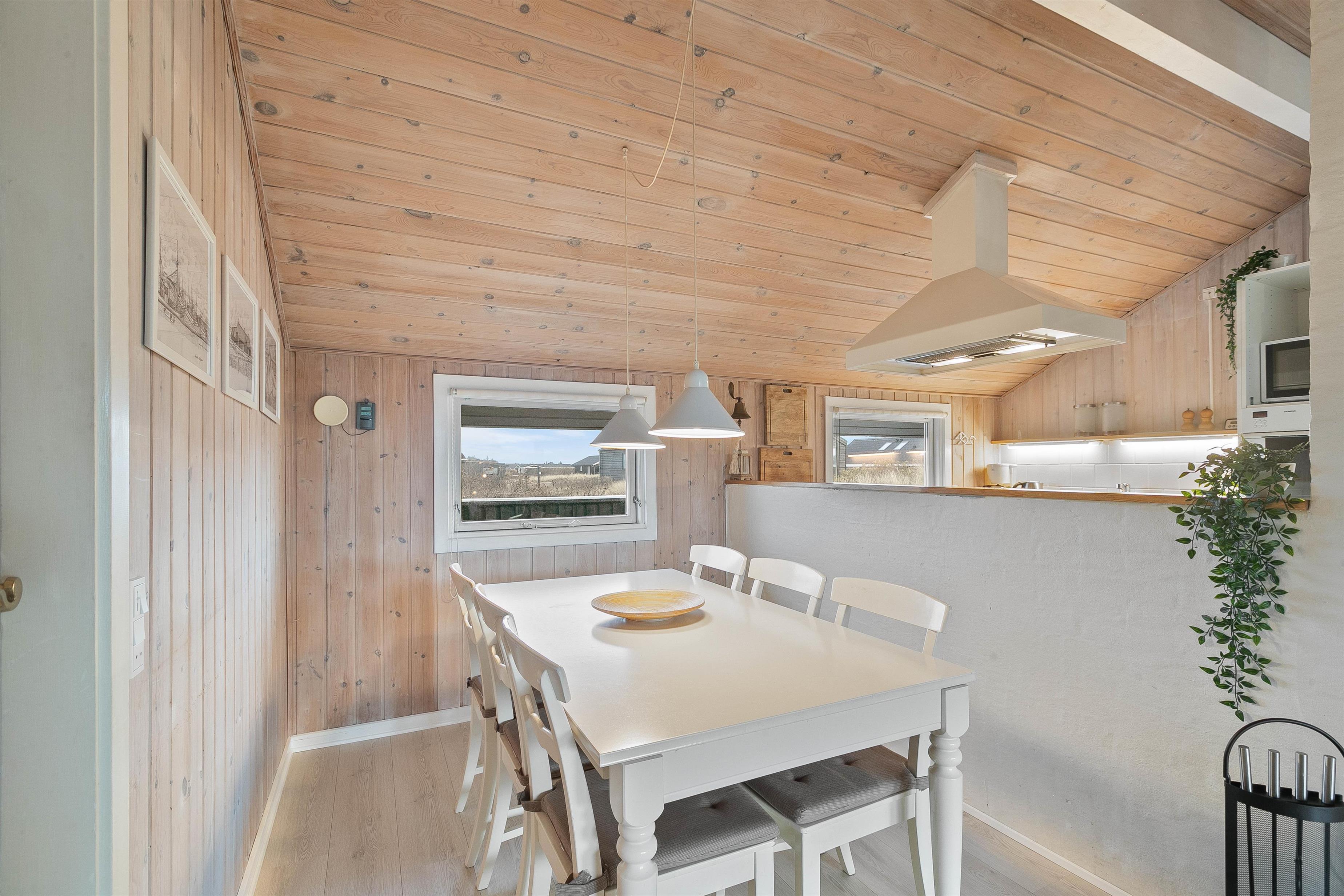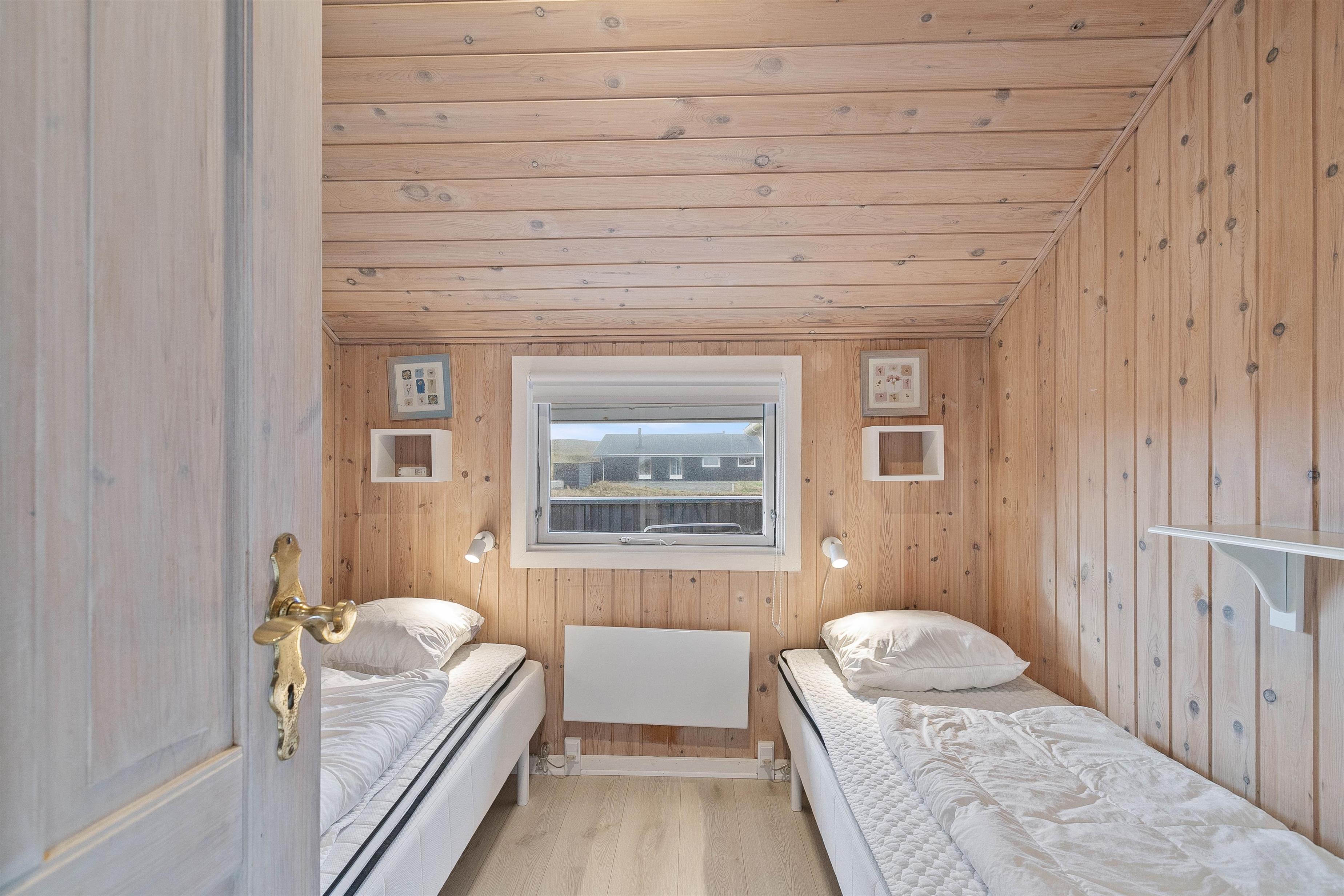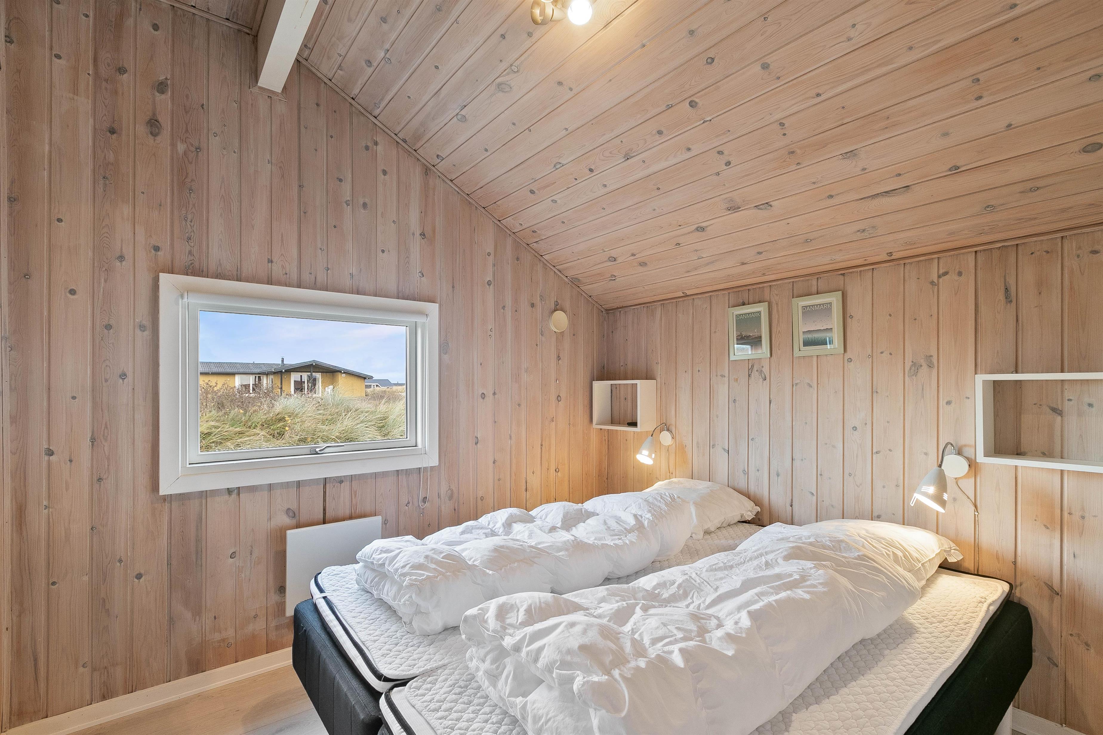 Der er plads til 6 personer her – fordelt på 3 soverum, hvoraf de to er med dobbeltsenge og et værelse er med enkeltsenge. I forbindelse med badeværelset finder I en sauna, hvor man rigtig kan blive gennemvarm - måske efter en lang dag i klitlandskabet og ved stranden.