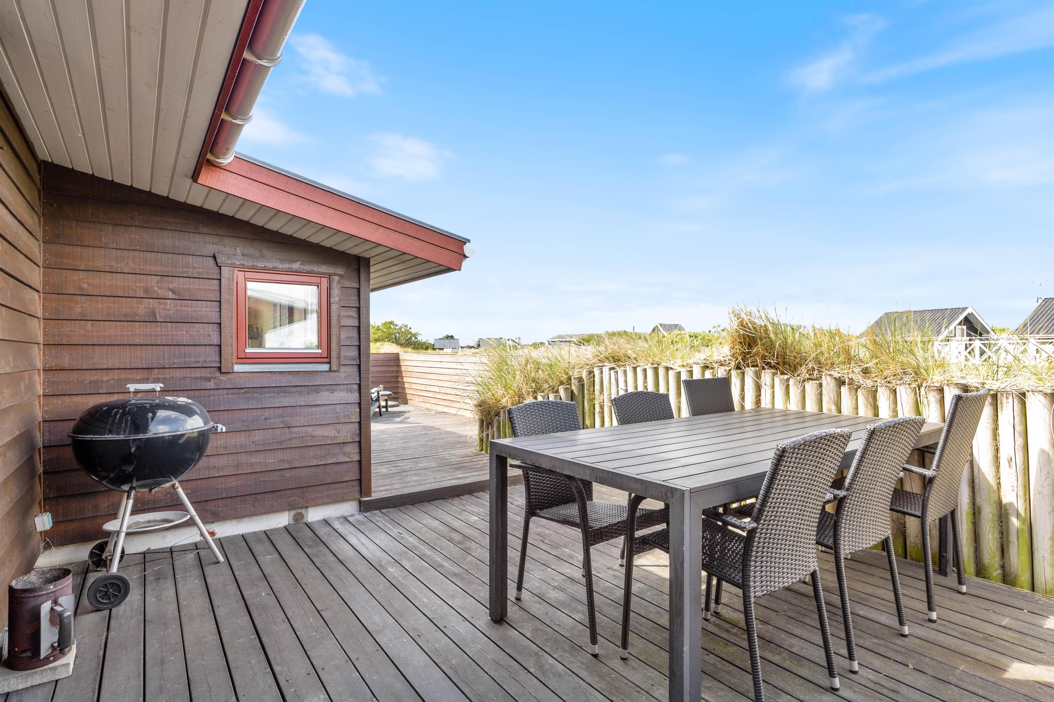 Sydvest om huset er der to terrasser, hvor der både er afskærmning og overdækning, der gør det muligt at sidde ude det meste af tiden. Der er naturligvis havemøbler og grill til rådighed, så du kan sidde ude og nyde naturen, den friske luft og et par lækre bøffer tilberedt på grillen.