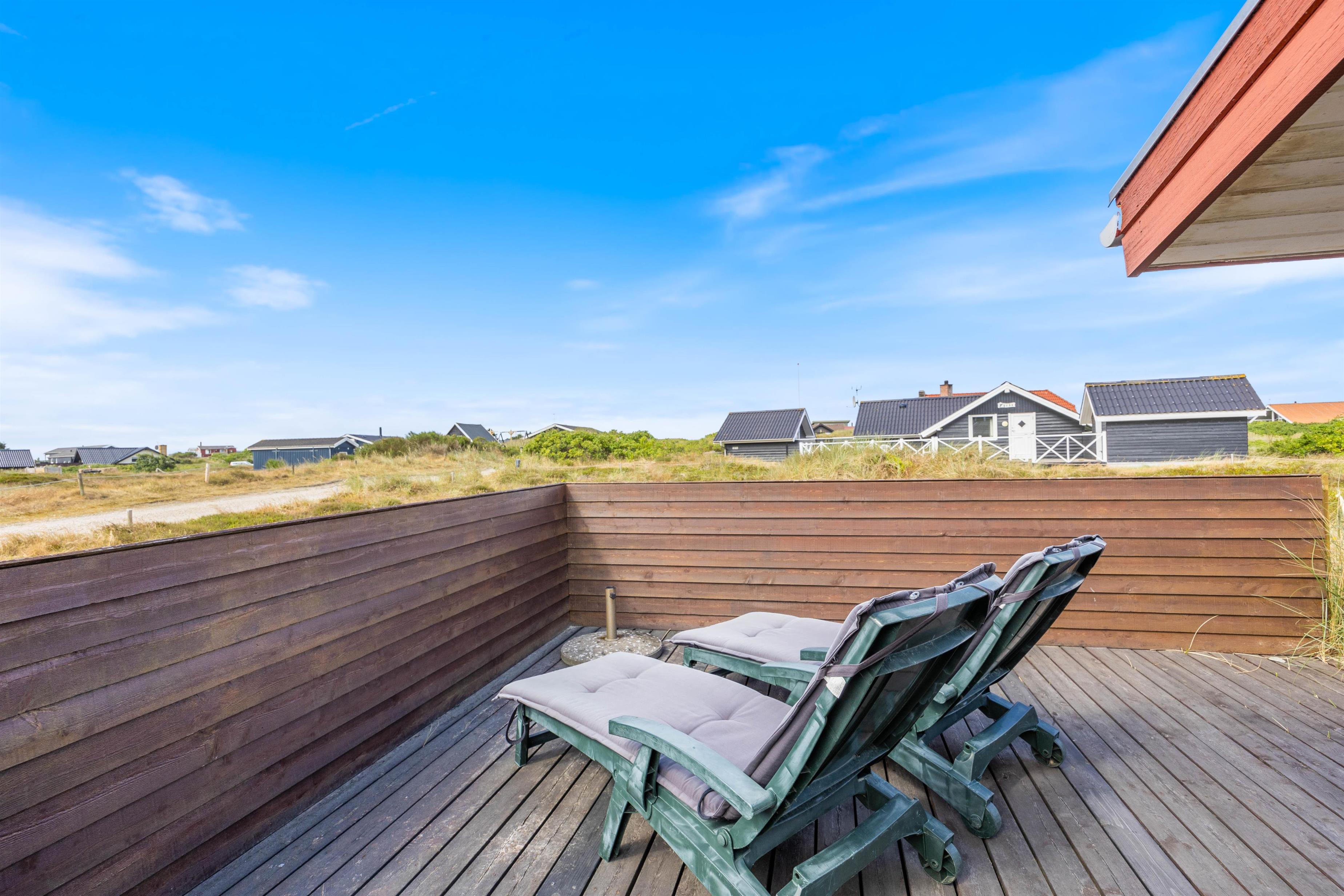 Feriehuset ligger blot 500 meter fra den lokale Købmand i Bjerregård, hvor man hver dag kan hente friske forsyninger. Derudover er der 900 meter til Vesterhavet, hvor man kan gå langs vandet og nyde lyden af de brusende bølger eller endda tage en forfriskende dukkert i dem.