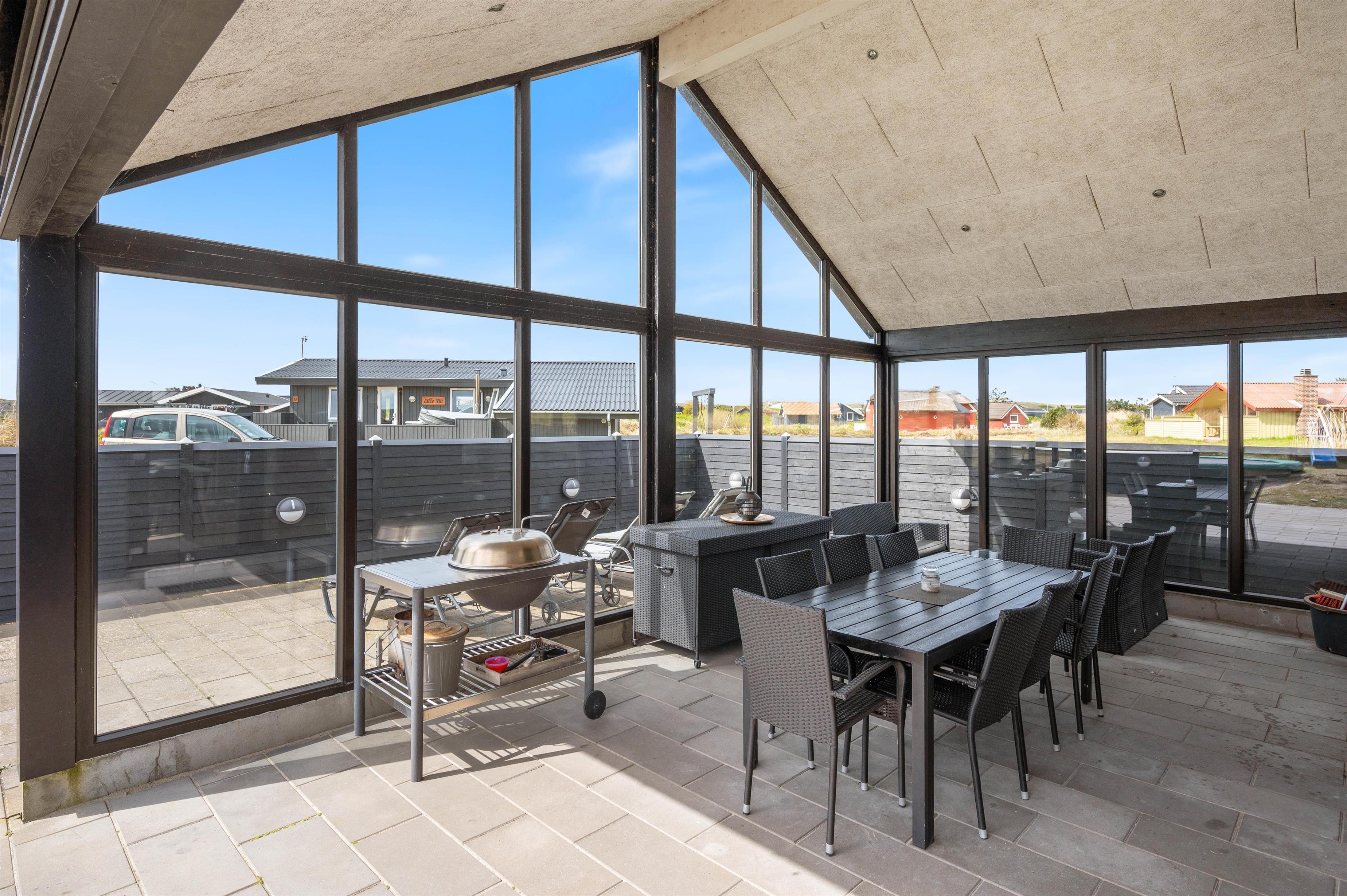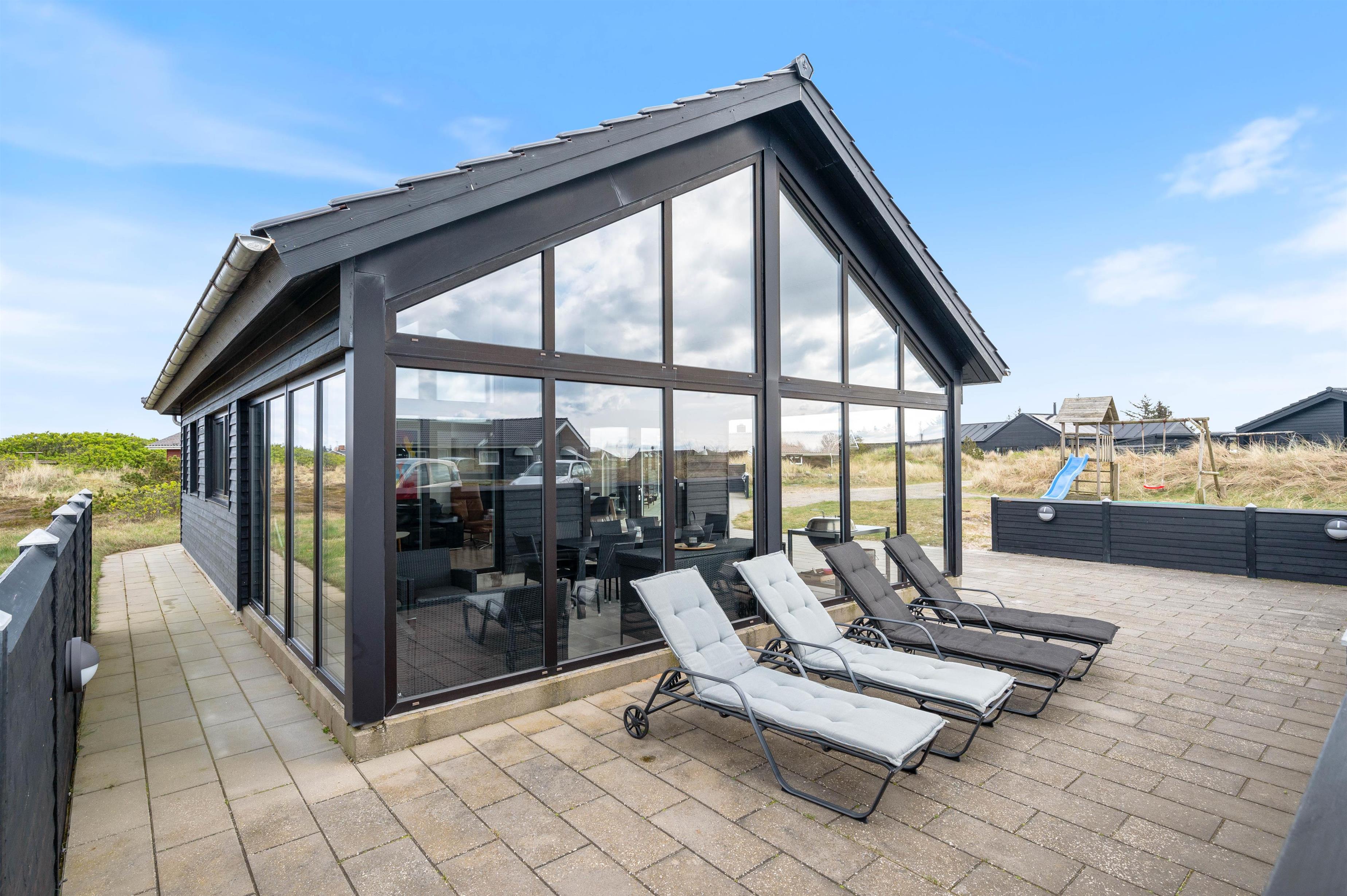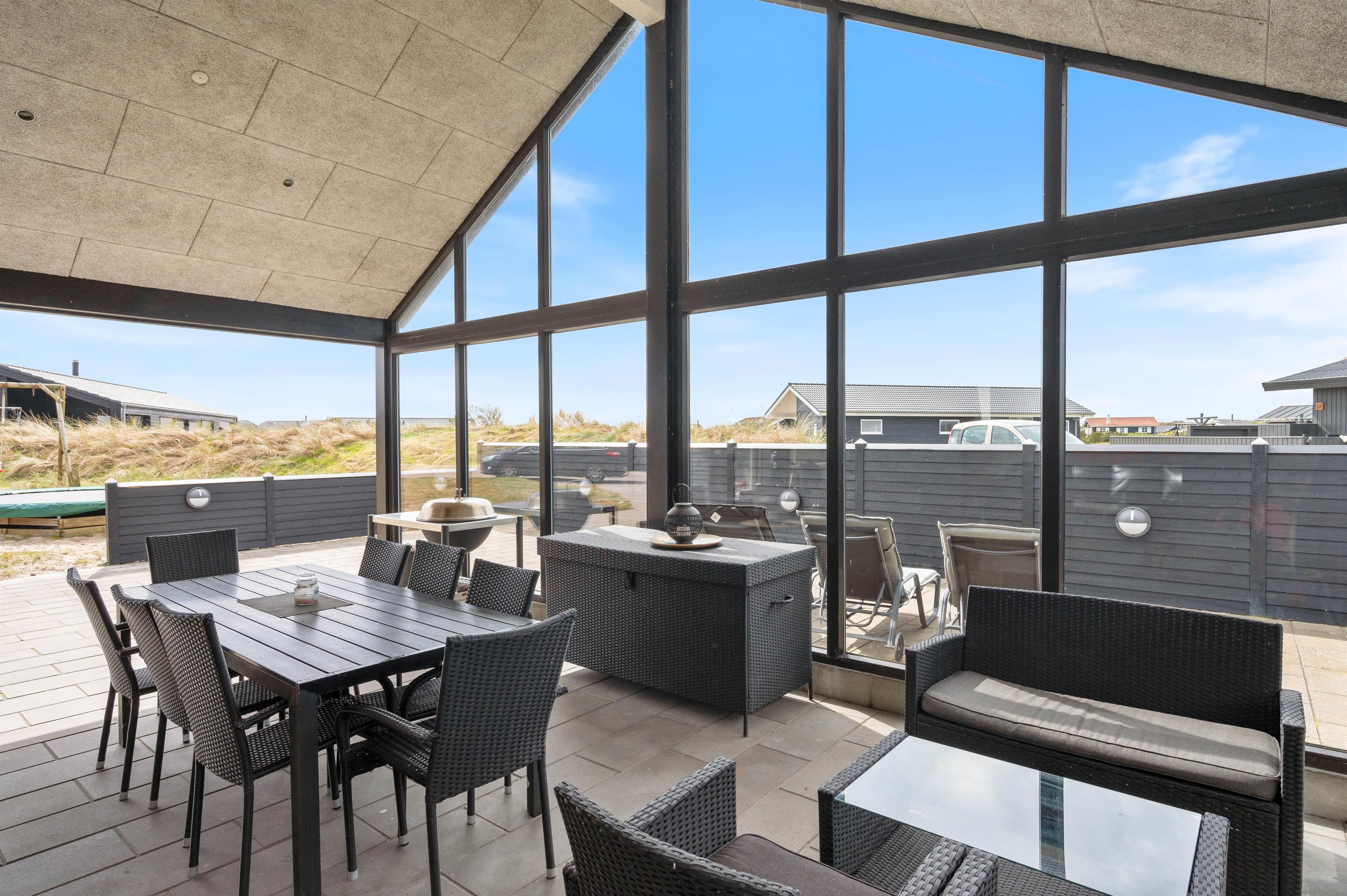 Vil du på en dejlig sommerdag bare gerne nyde solstrålerne, så kan du gøre dette på sommerhusets store og delvist overdækket terrasse, som også er afskærmet. Læg dig på en liggestol og slap af med en god bog, mens børnene leger udenfor. På grunden er der rigtig gode muligheder for børn, idet der både er sandkasse, gynger og trampolin.