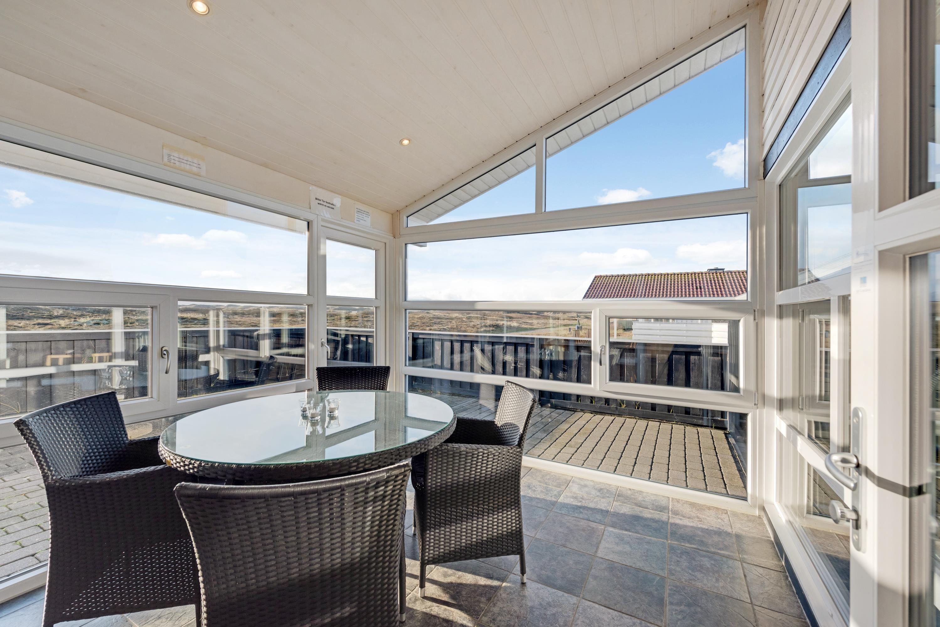 Et af sommerhusets highlights er den fine udestue, som forlænger en lun sommeraften og ellers et hyggeligt samlingspunkt på en regnvejrsdag.