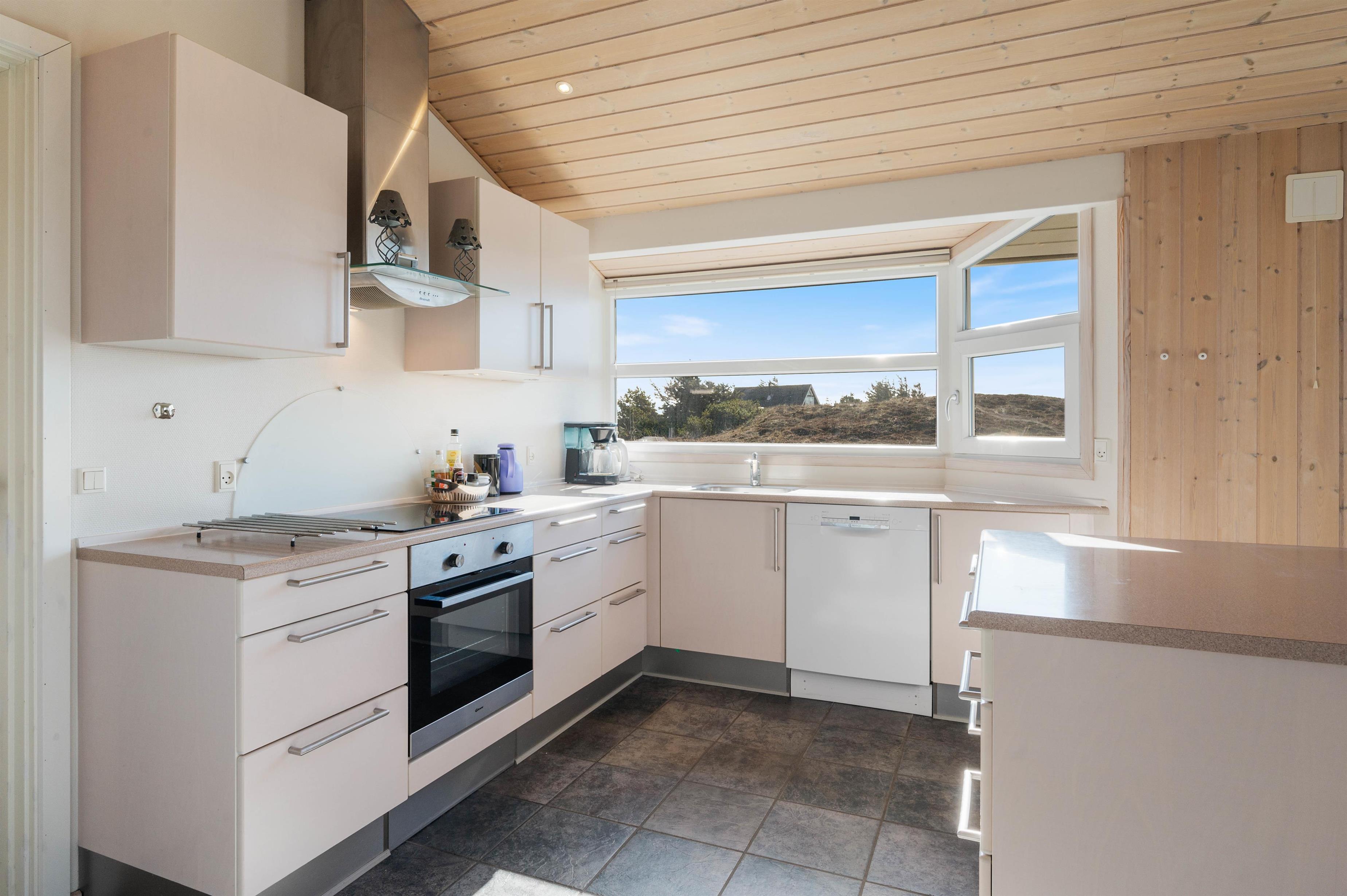 Sommerhuset er hyggeligt og særdeles flot indrettet med fantastisk lysindfald i alle rum, klinkegulve med gulvvarme og gedigne møbler. Her er et moderne køkken med alt i hårde hvidevarer. Desuden er der både vaskemaskine og tørretumbler, så I kan vaske lidt håndklæder efter en tur på stranden.