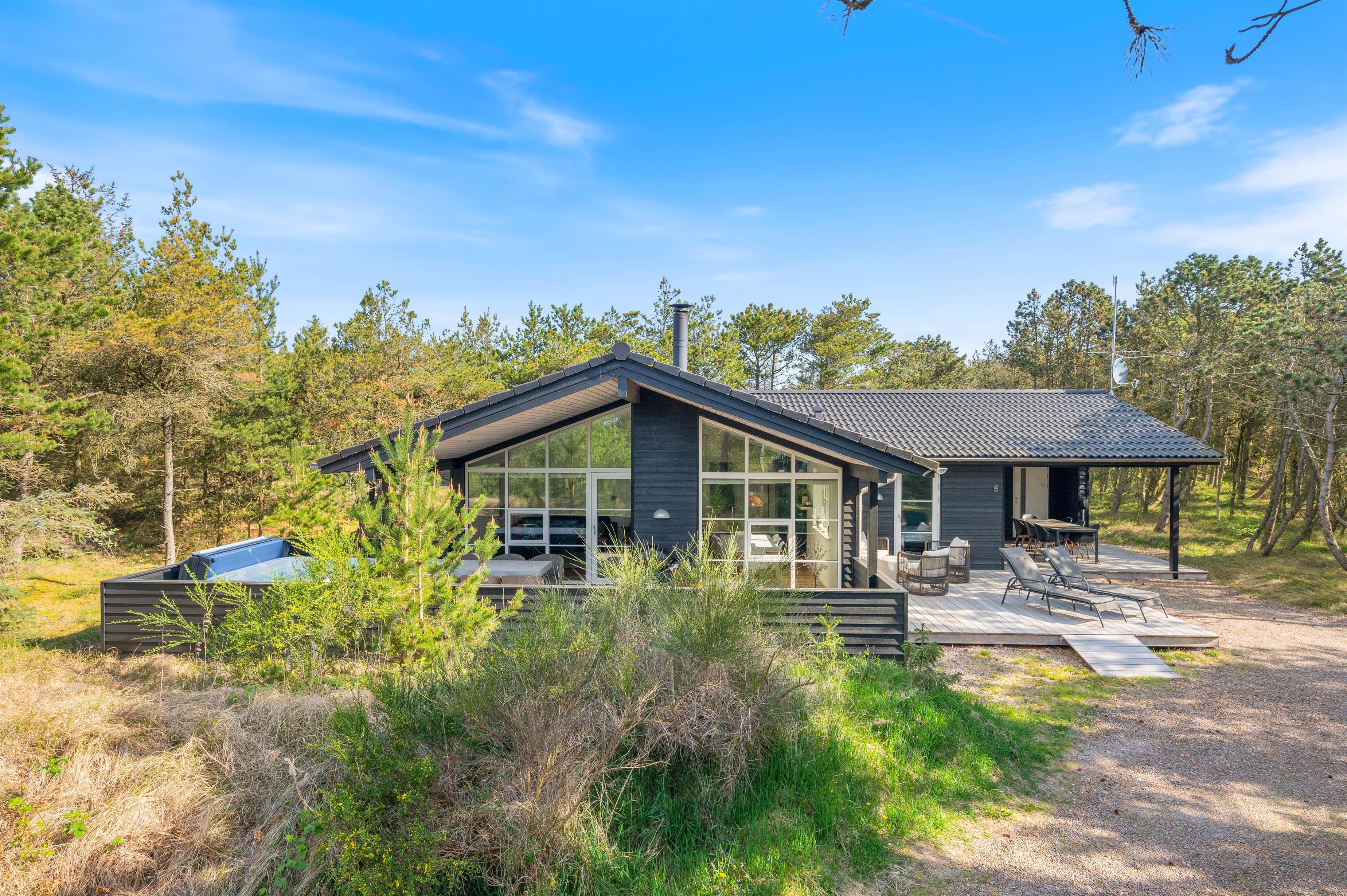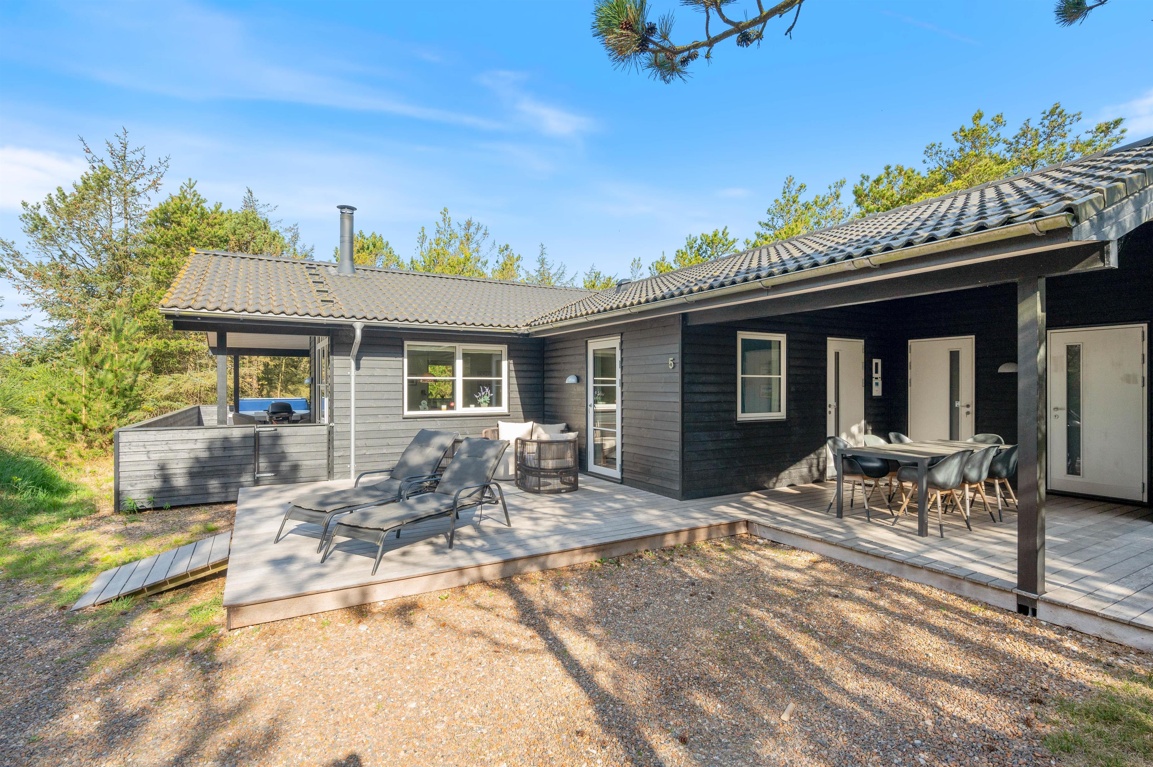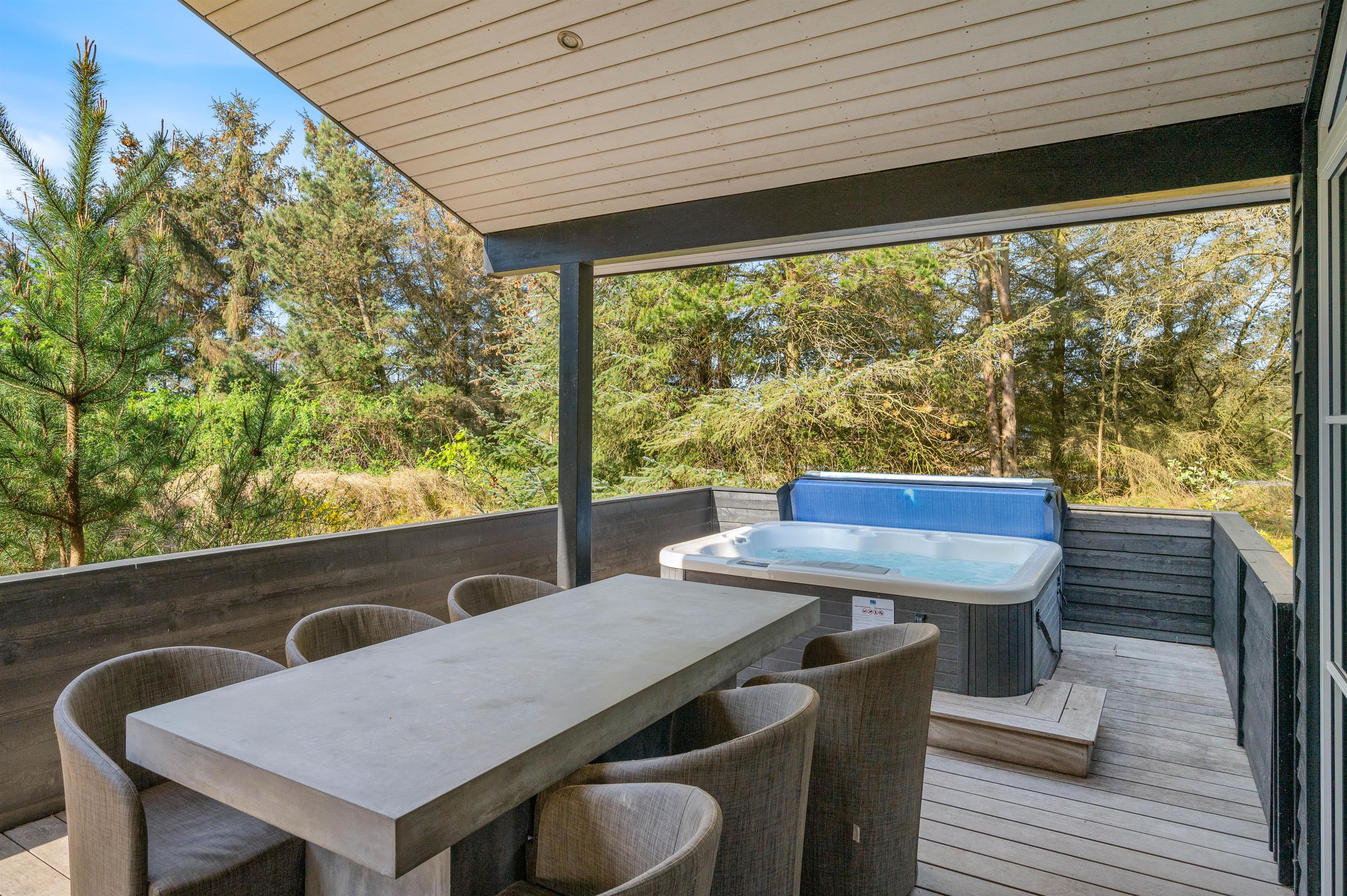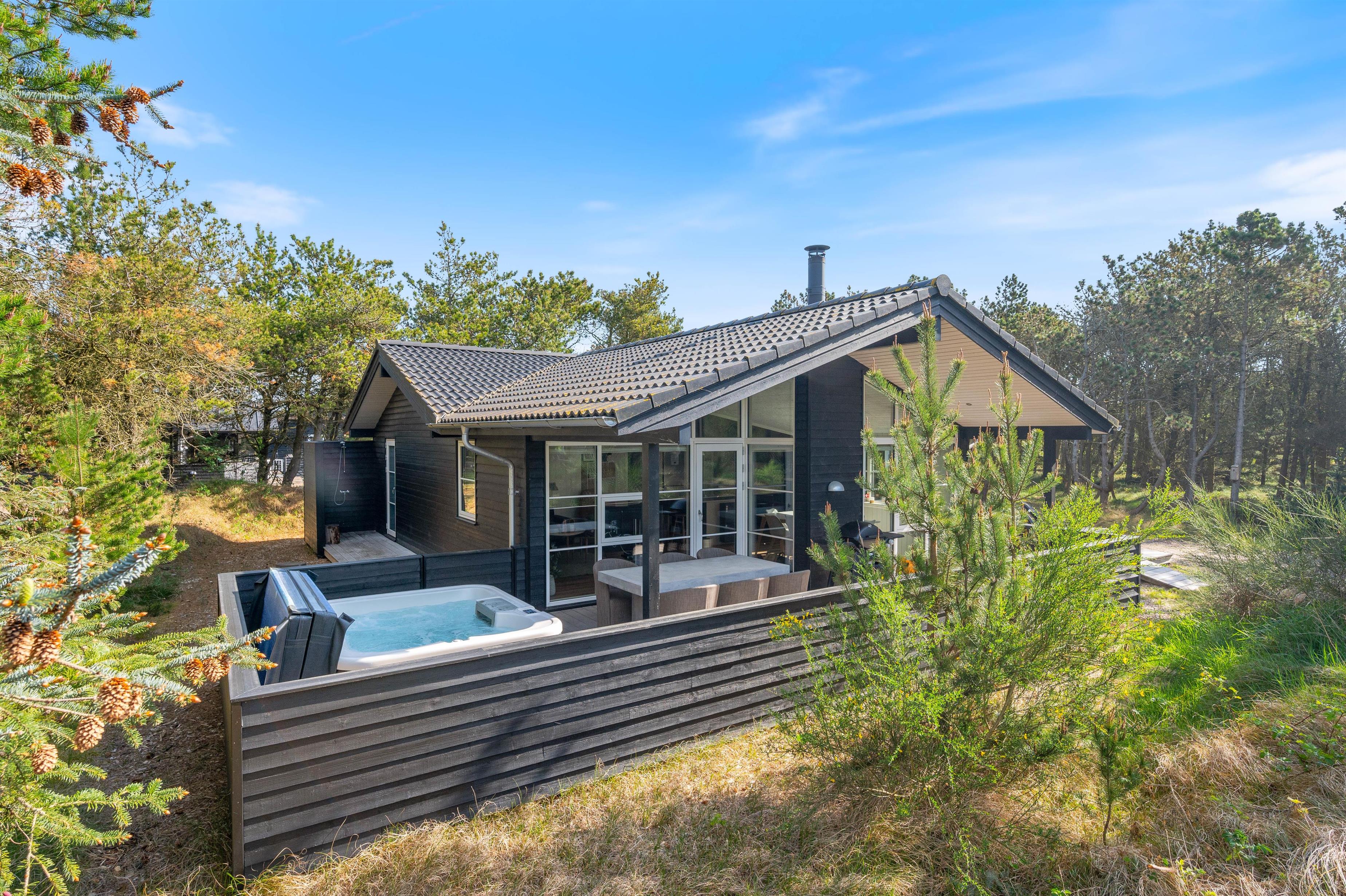 Dette feriehus er perfekt for familien, som ønsker en ferie i et moderne, lyst og funktionelt feriehus. Der er 3 gode soveværelser og 2 lækre badeværelser. Der er udespa på terrassen og en sauna i det ene badeværelse.