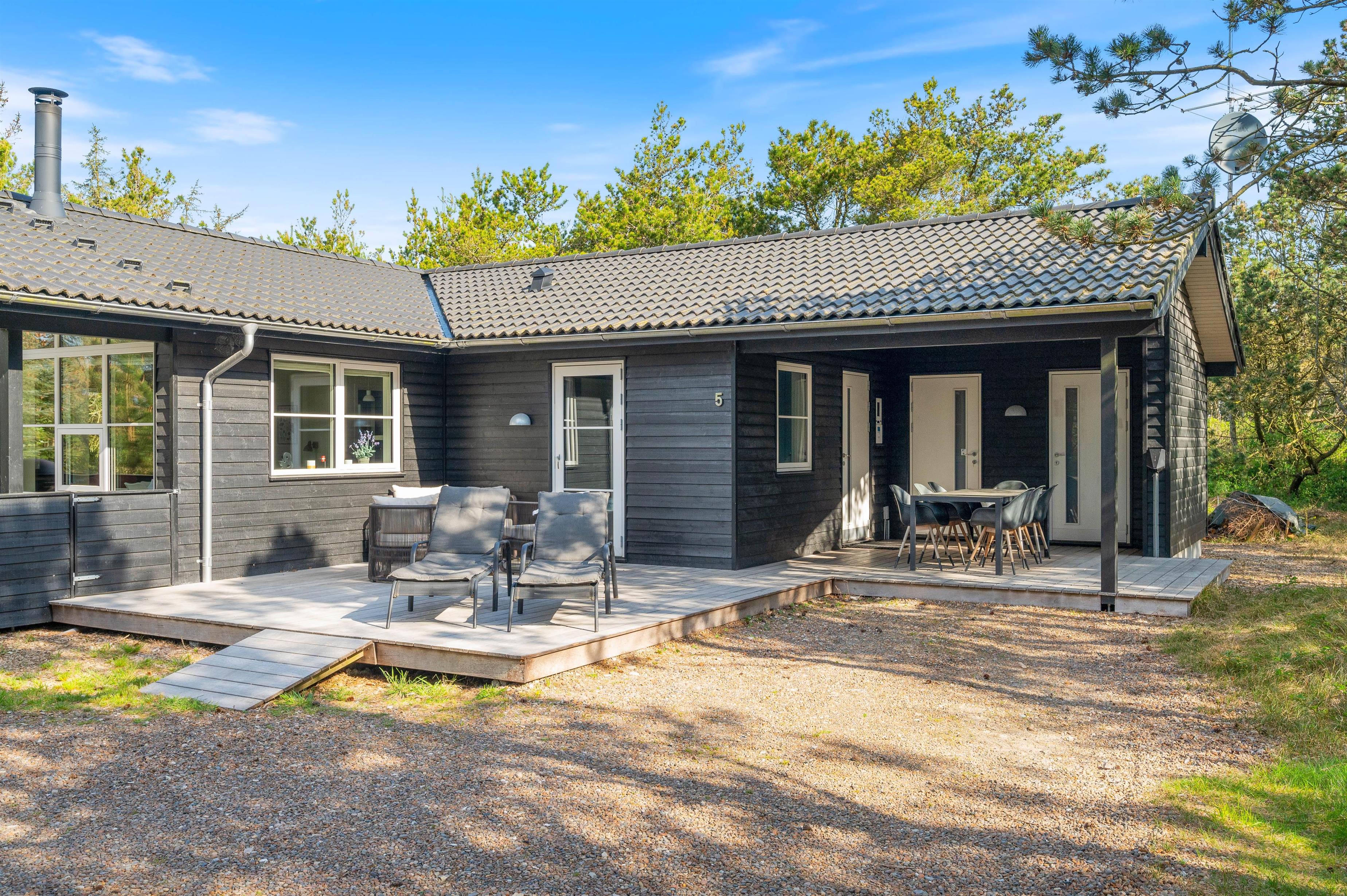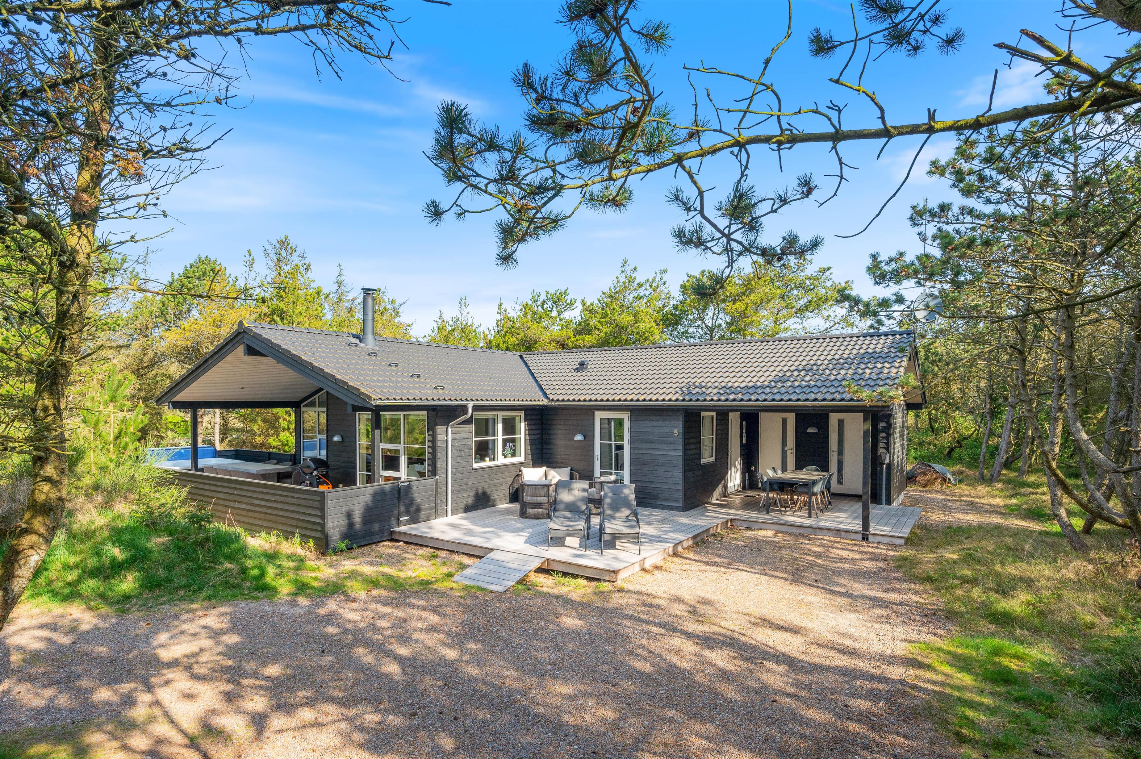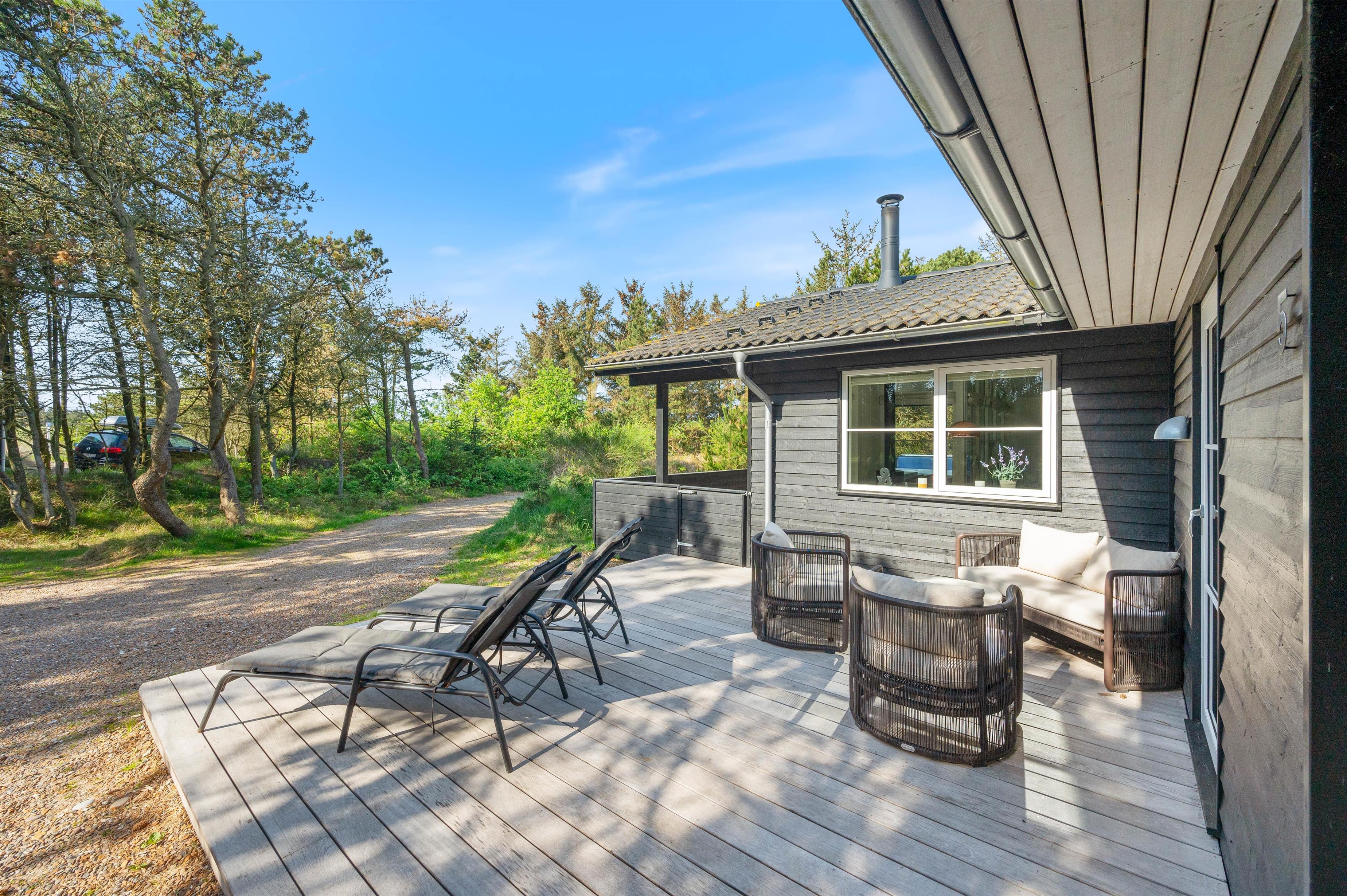 Et lækkert kvalitetshus beliggende ud til et fredet areal i Bjerregård finder I her på Bilbergsvej 5. Der er en god lukket terrasse, hvilket er ideelt til familien, som har børn og hund med. Feriehuset er beskyttet af træer mod øst, og på terrasserne er der god mulighed for læ. Indretningen i sommerhuset er lys, moderne og indbydende. Desuden er der ved feriehuset installeret en ladestander til el-bil.