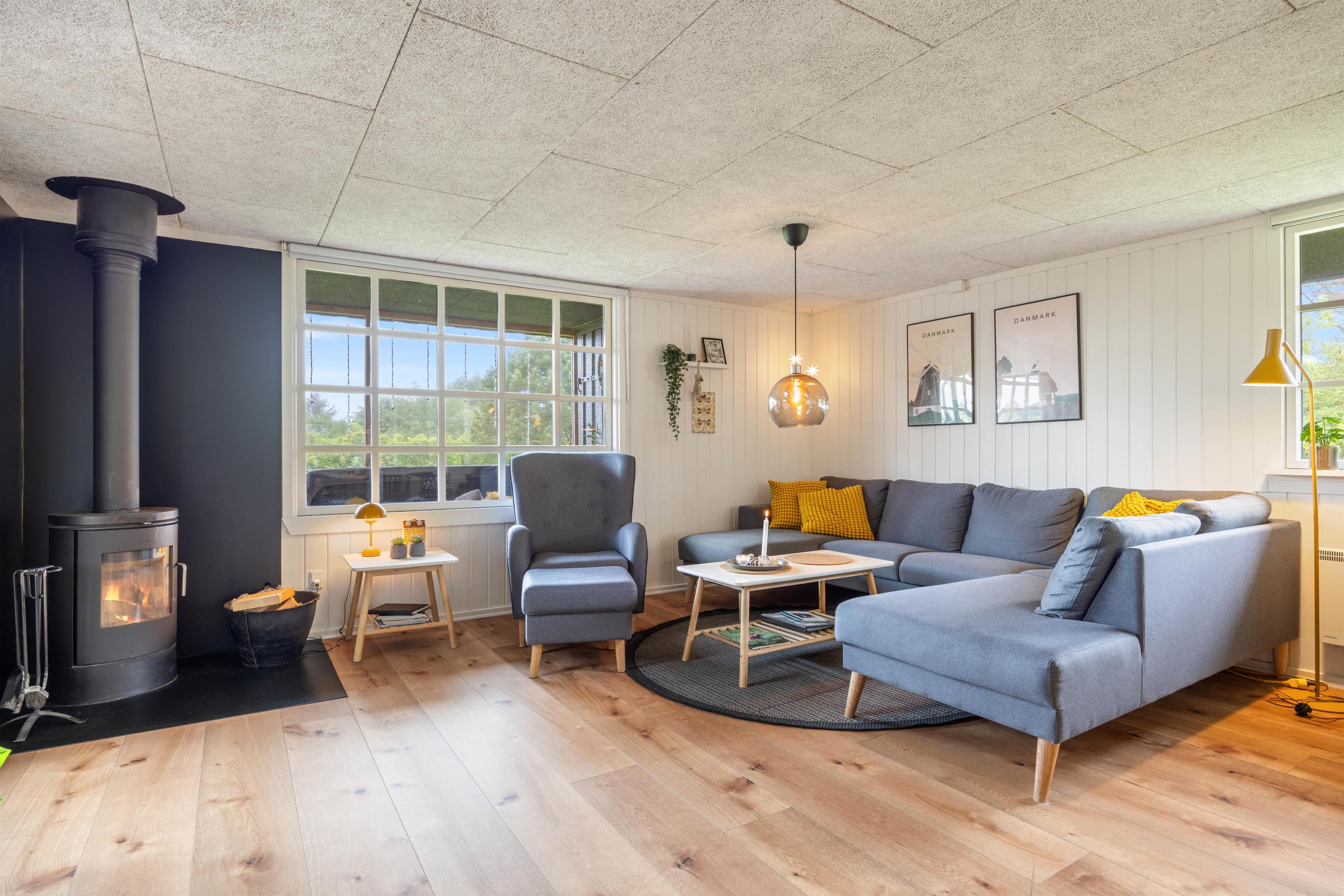 Hyggeligt opholdsrum med brændeovn