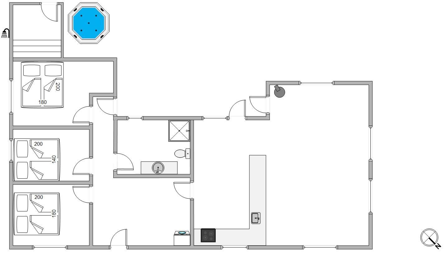 Sommerhuset har 3 gode soveværelser, som alle er indrettet med komfortable dobbeltsenge. Her har I mulighed for at få en god nats søvn, inden morgendagens aktiviteter går i gang. I feriehuset er der både vaskemaskine og tørretumbler, så I kan vaske lidt tøj i løbet af ferien. Desuden er det rummelige badeværelse udstyret med gulvvarme.