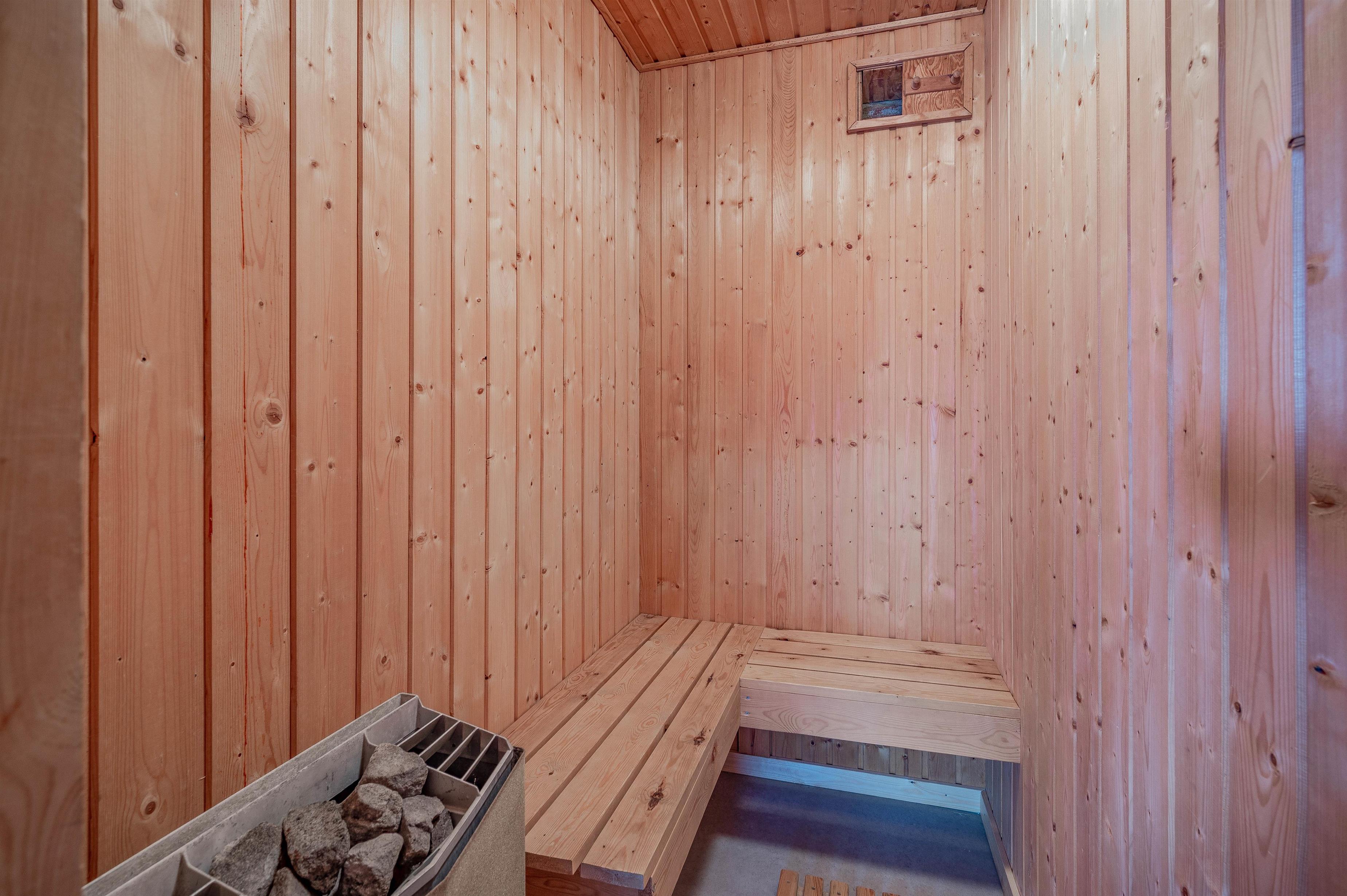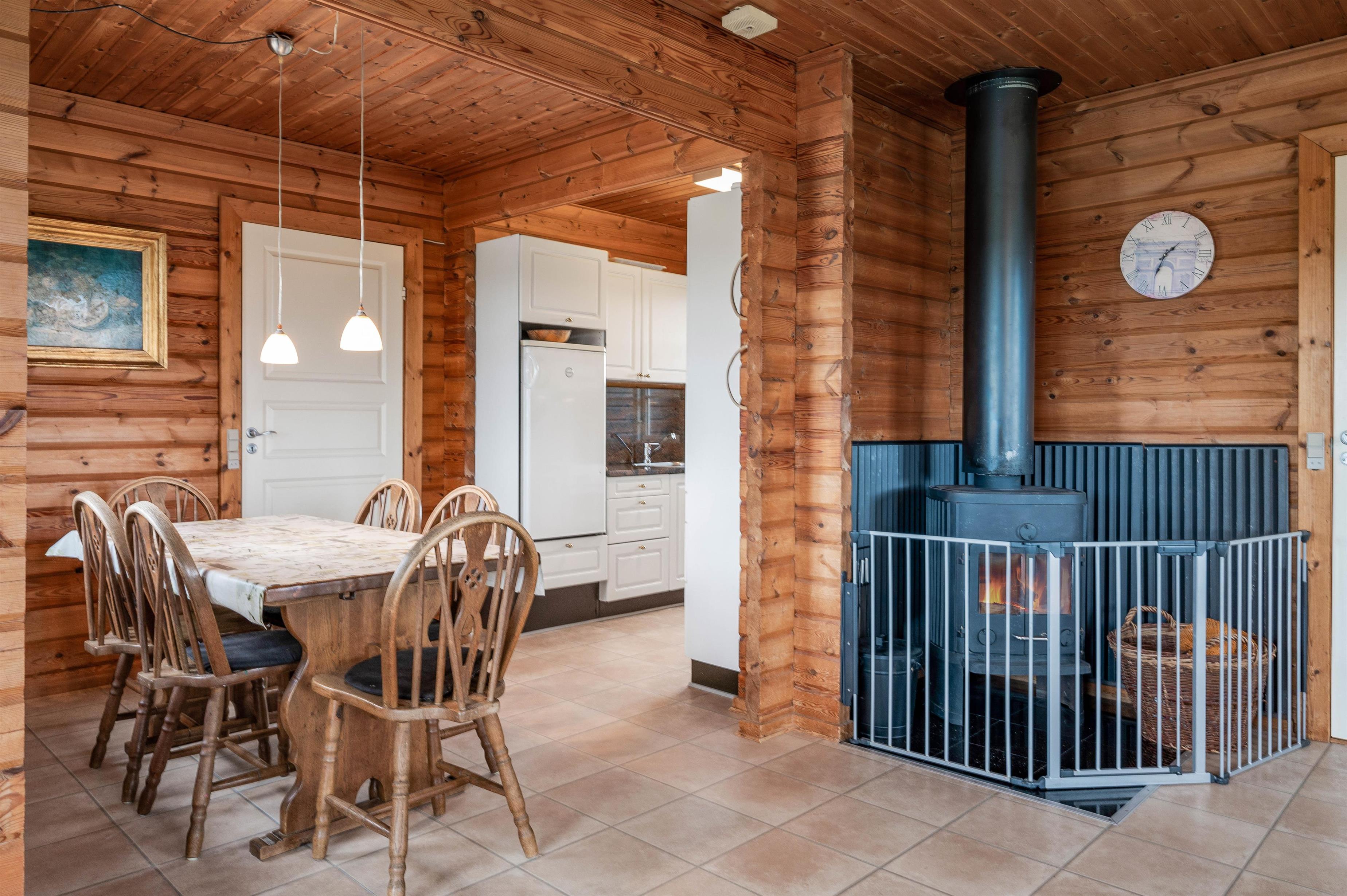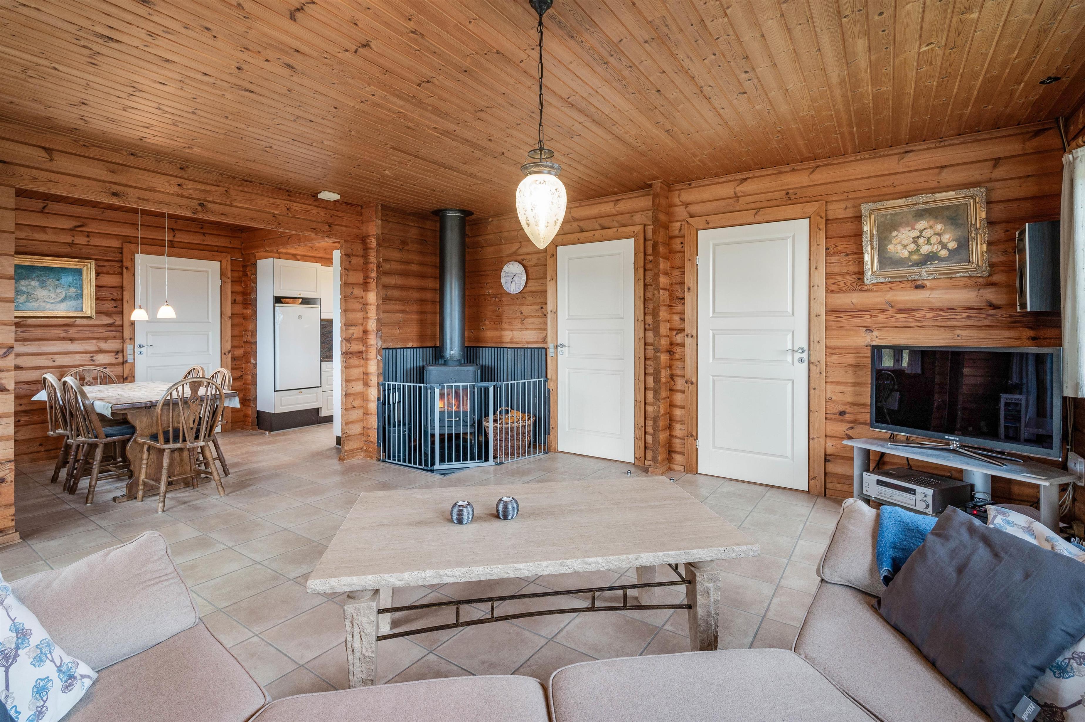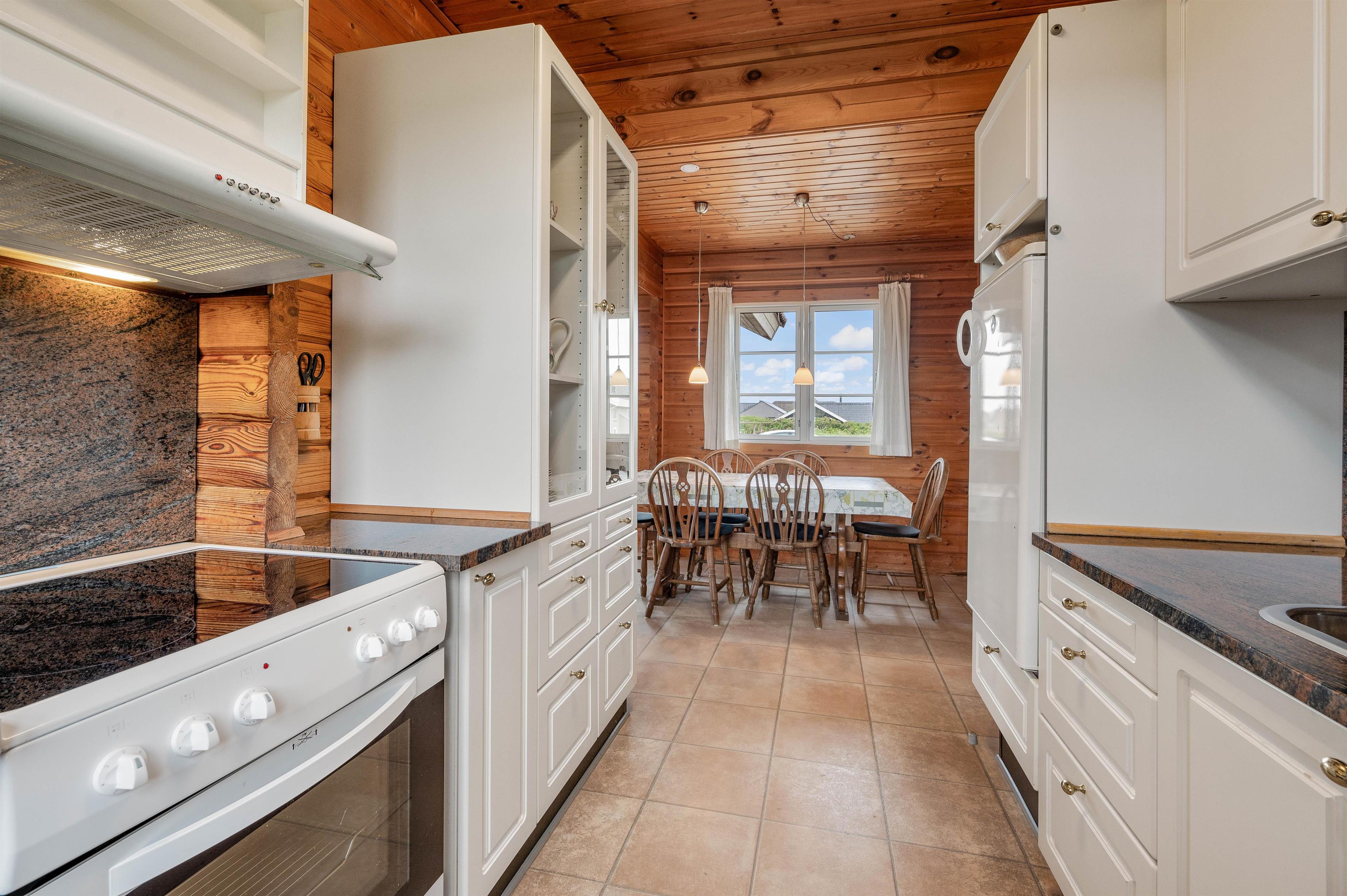 Dette rustikke bjælkehus har et godt udstyret køkken og en stor stue med trævægge, der giver en atmosfære af feriehygge. Her er både brændeovn, TV, DVD og stereoanlæg. Efter dagens oplevelser er det en fornøjelse at slappe af i sommerhusets sauna eventuelt efter en frisk dukkert ved Vesterhavet. Sommerhusets badeværelse er samtidig med gulvvarme, så jeres fødder holdes varme om morgenen.