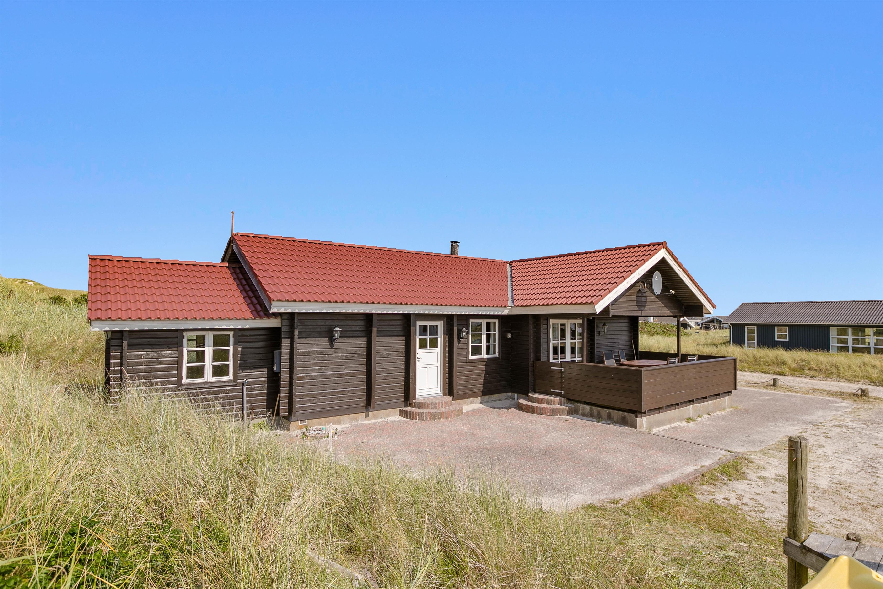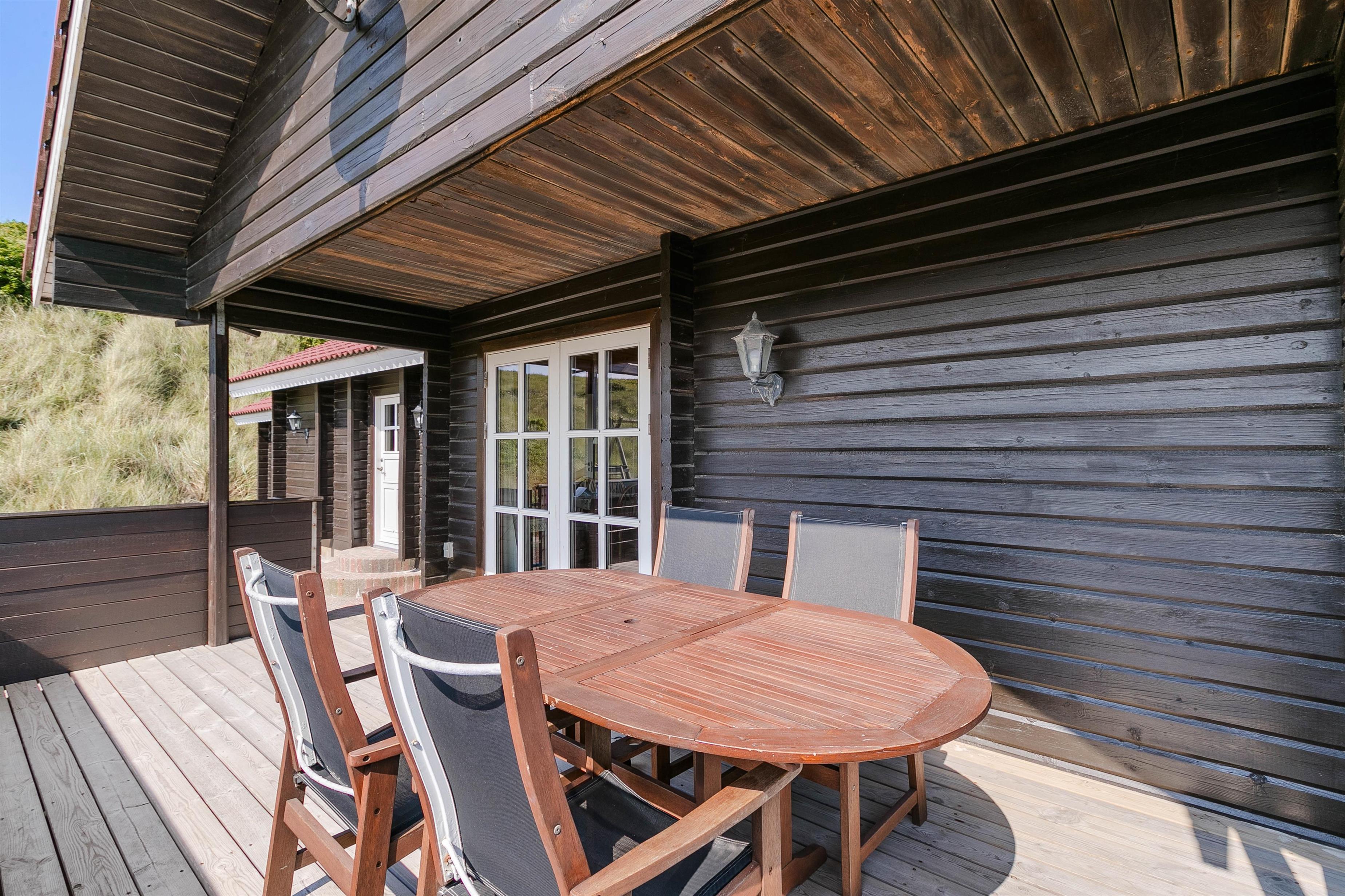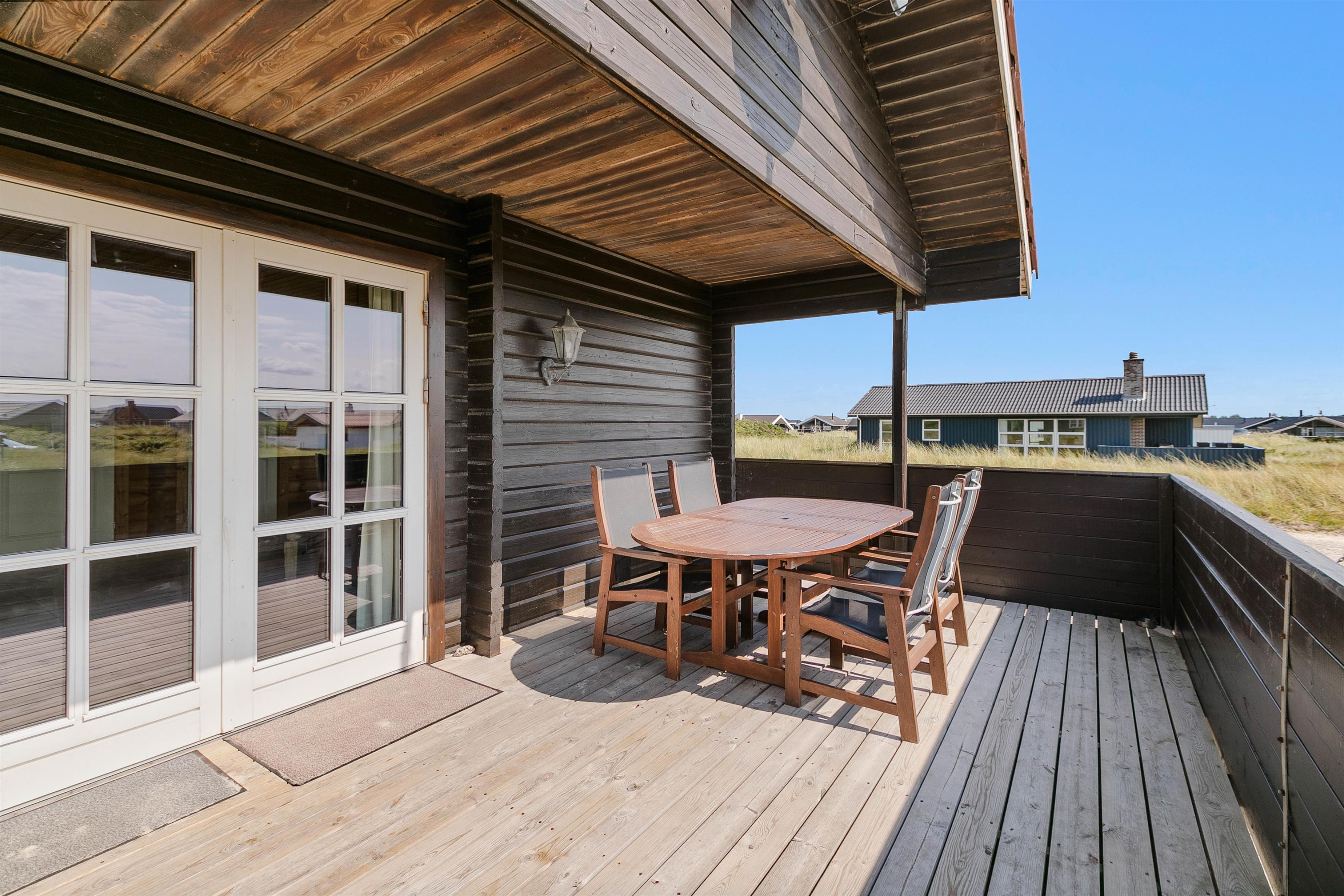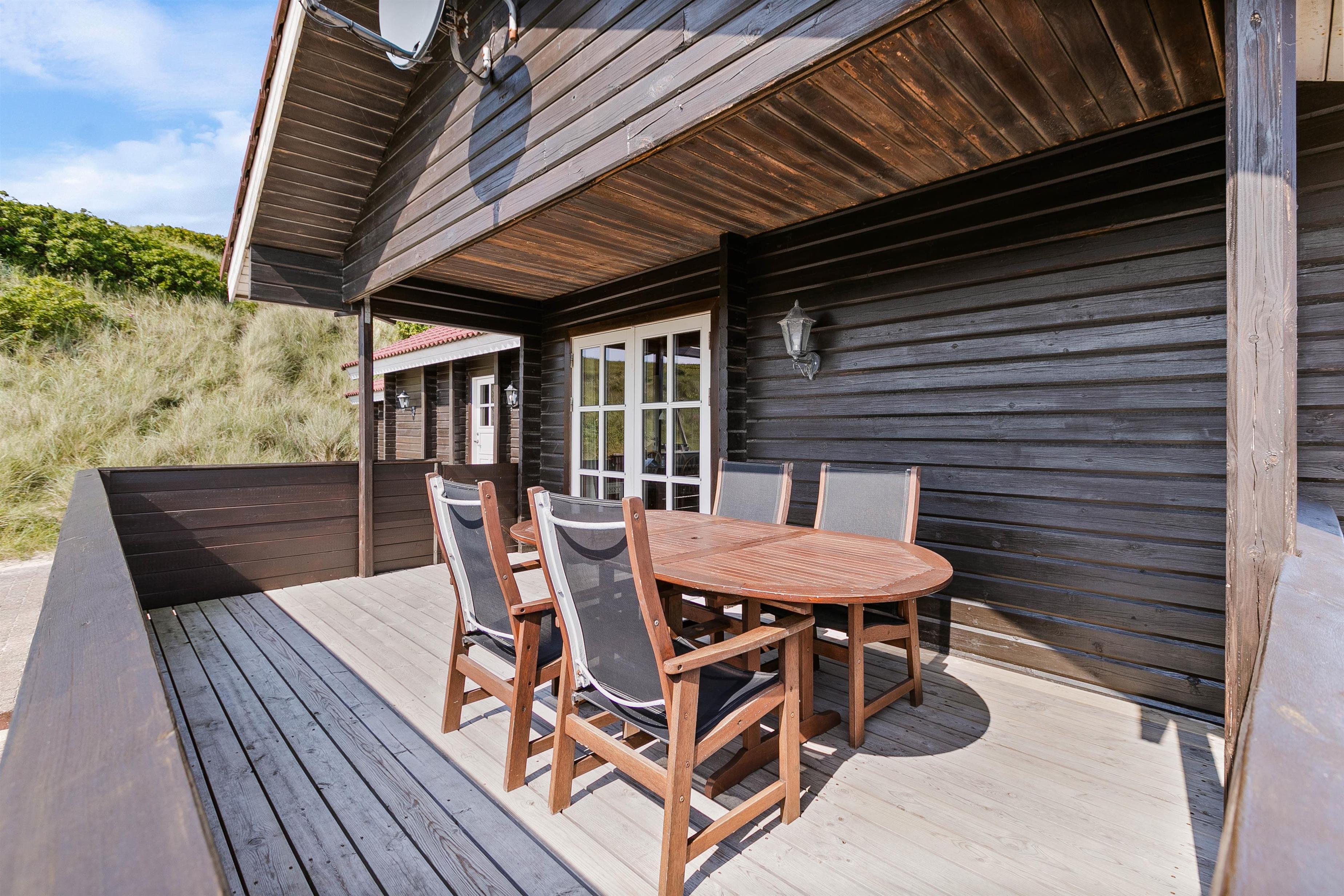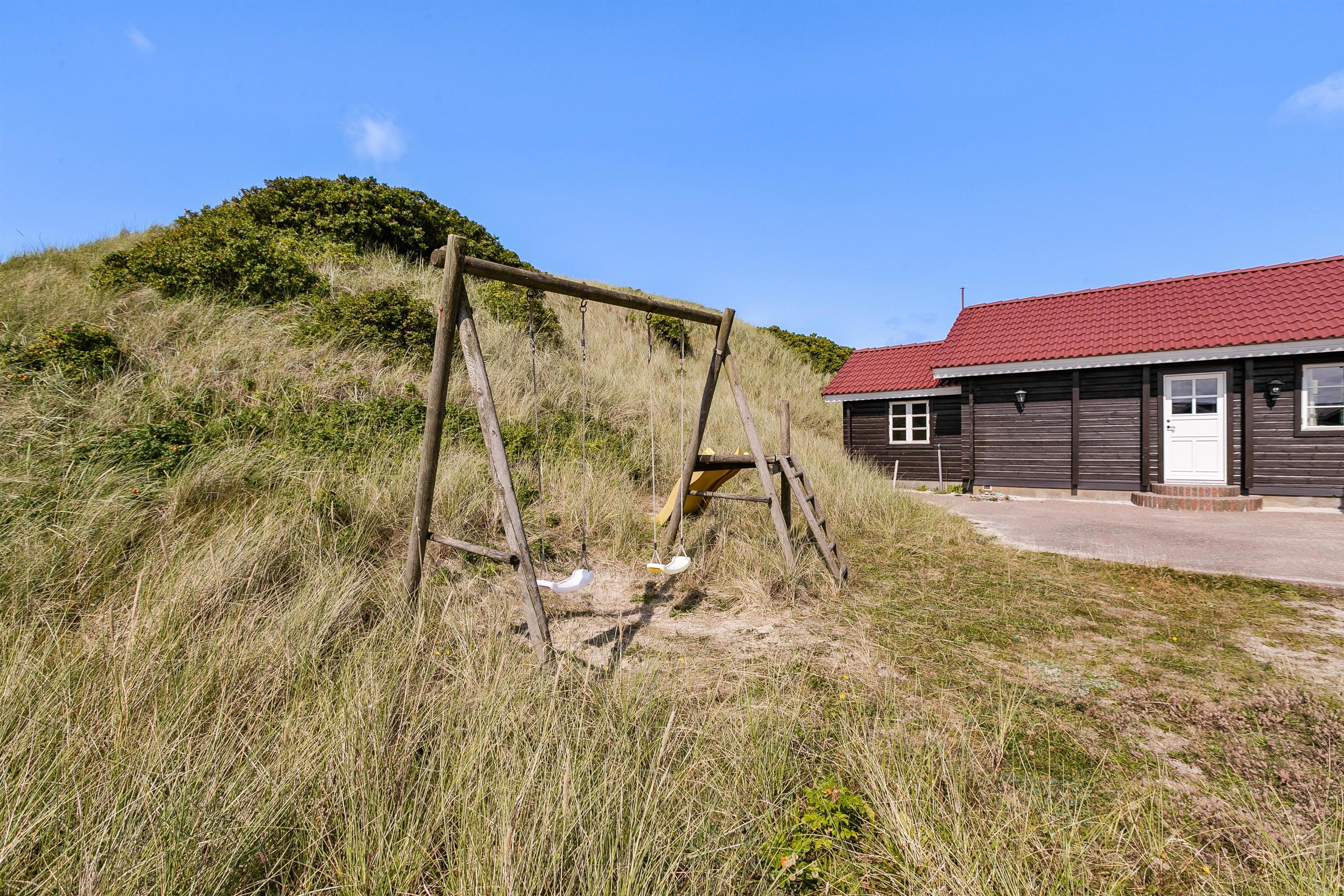Feriehuset er beliggende på en flot naturgrund og har et stort flisebelagt terrasseareal, hvoraf en stor del er overdækket og helt lukket. Her finder I naturligvis gode havemøbler og liggestole, hvorfra I kan nyde naturen og bølgebruset fra Vesterhavet. For at nå den dejlige sandstrand skal I blot gå over klitten og derefter nyde trave- eller badeturen. Den lukkede terrasse gør, at I med ro og mag kan lade børnene løbe frit, imens I nyder solen fra liggestolen. Ved huset er der også et gyngestativ med rutsjebane, hvor de små kan lege og have det sjovt. Find grillen frem om aftenen og lav en lækker middag herpå, dette er til stor glæde for både store og små.
