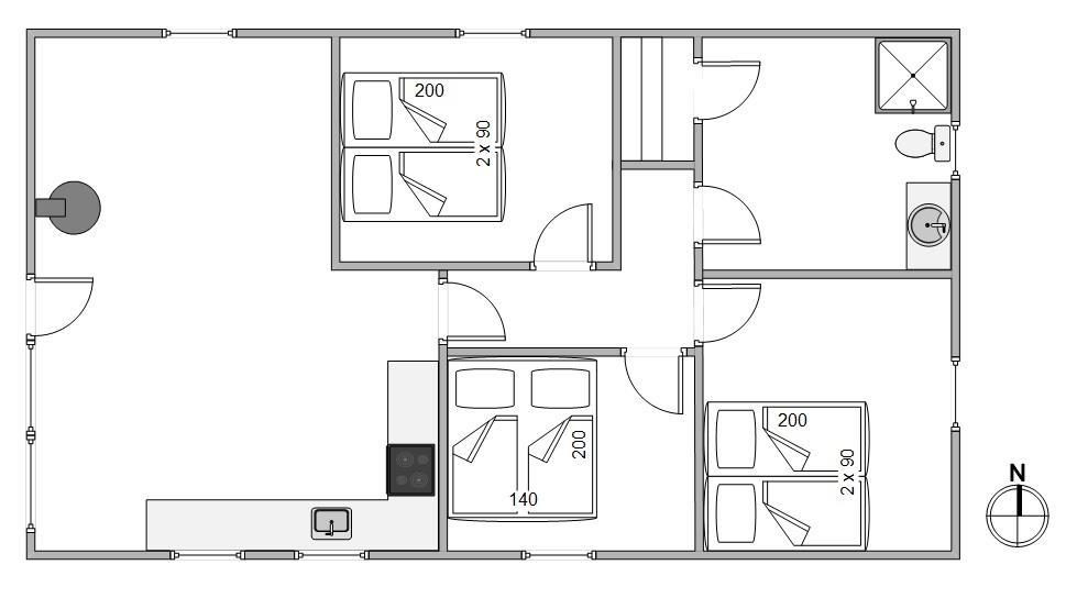 3 hyggelige og gode soveværelser, alle udstyret med komfortable dobbeltsenge, sikrer afslappende nætter efter en dag fuld af oplevelser og aktiviteter. Bemærk venligst, at de øverste vinduer i stuen ikke kan mørklægges.