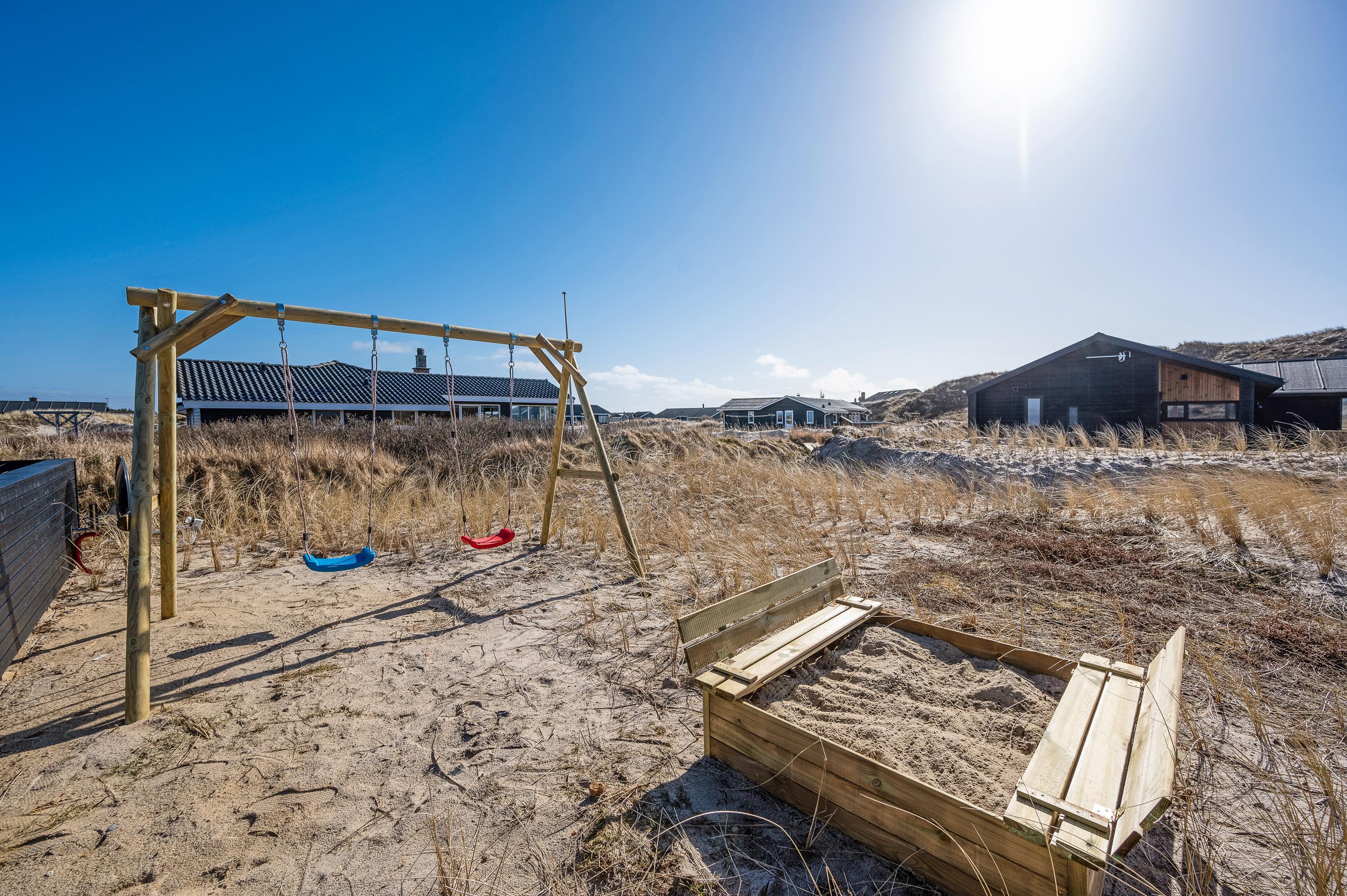 På naturgrunden er der et gyngestativ og en sandkasse, så også de yngste feriegæster er godt underholdt. Og som ekstra har sommerhuset en udendørs hems, som giver jer mulighed for at prøve en ret usædvanlig overnatningsoplevelse.