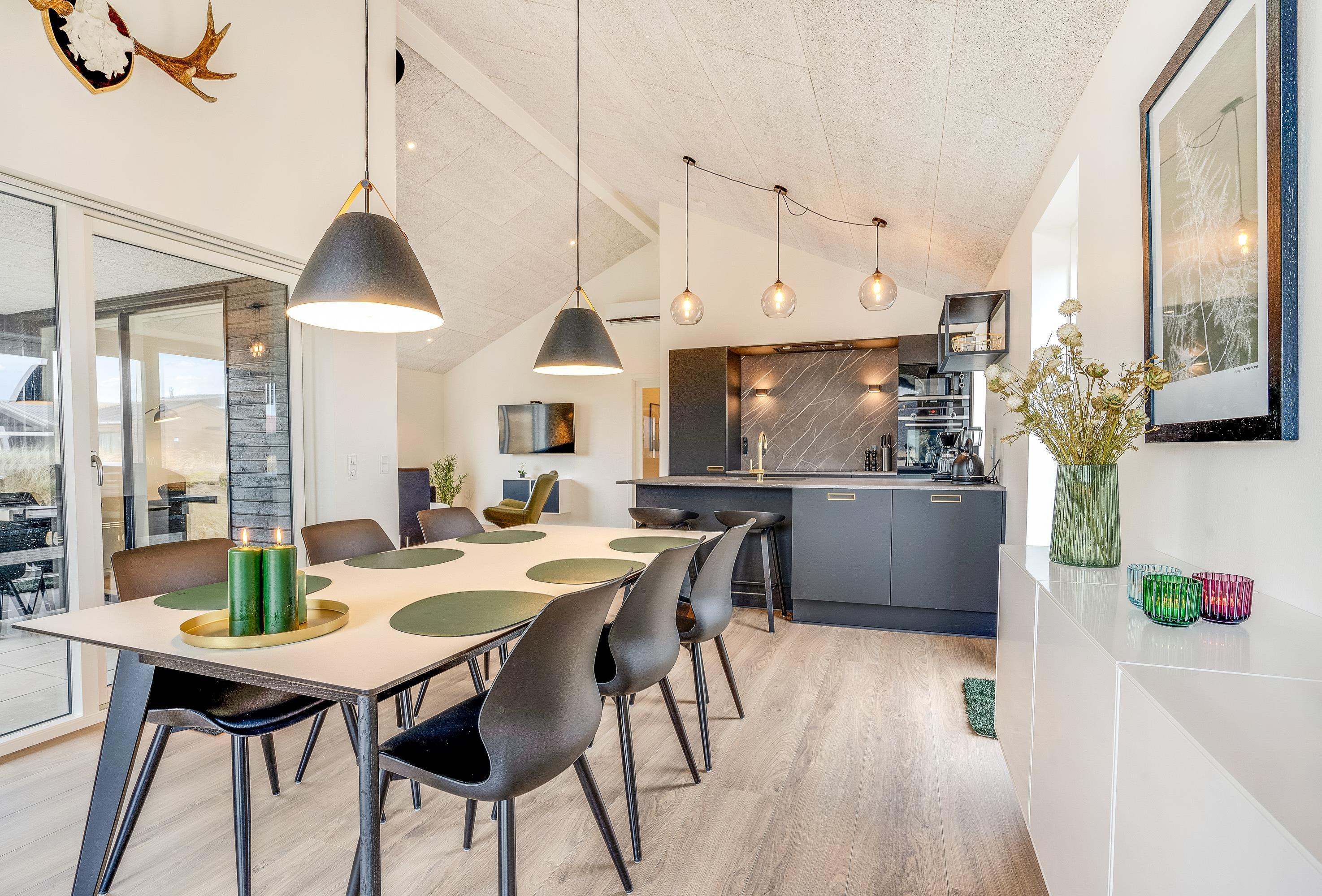Det moderne feriehus på Bjerregårdsvej 379 er opført i 2021 og sætter rammerne for en skøn sommerhusferie ved Vesterhavet – lidt ud over det sædvanlige. Den stilfulde indretning i flotte kvalitetsmaterialer vil opfylde selv den mest kræsne feriegæsts drømme, og der er selvfølgelig også sørget for alle praktiske nødvendigheder såsom opvaskemaskine, vaskemaskine, tørretumbler og en hurtig og stabil internetforbindelse.