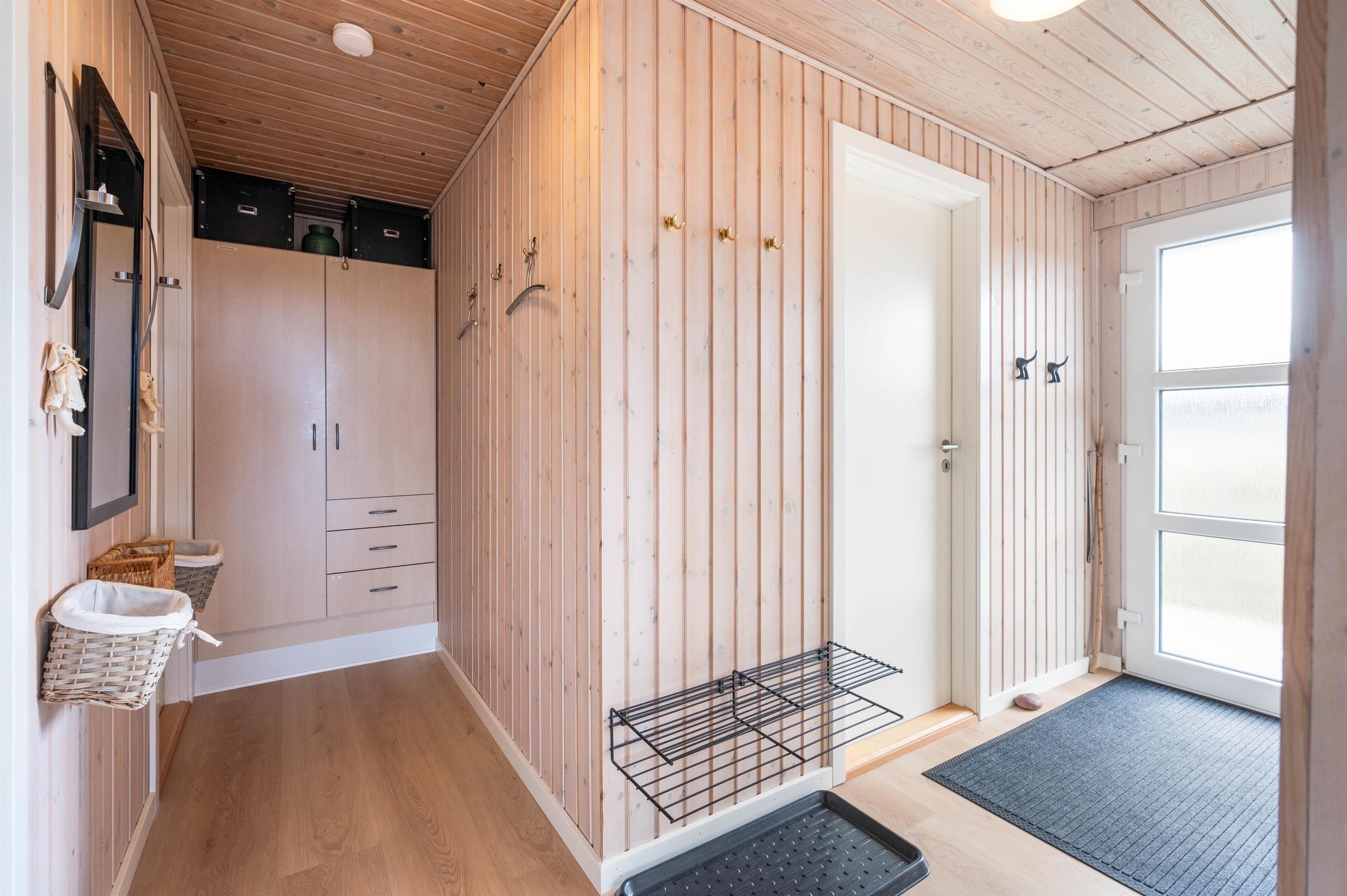 Der er terrasse mod øst, mod syd og mod vest, hvilket giver mulighed for at opholde jer udenfor det meste af dagen. Den delvist overdækkede terrasse mod vest er ideel til hyggelige grillaftener. Herfra er der skøn udsigt, der indbyder til en dejlig gåtur igennem klitlandskabet til strand og hav.