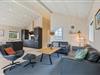 Feriehusets hjerte og samlingspunkt er det store lyse opholdsrum, hvor der er plads til alle – og hvor de store vinduespartier mod vest og syd tager både solen og naturen med helt ind i stuen.