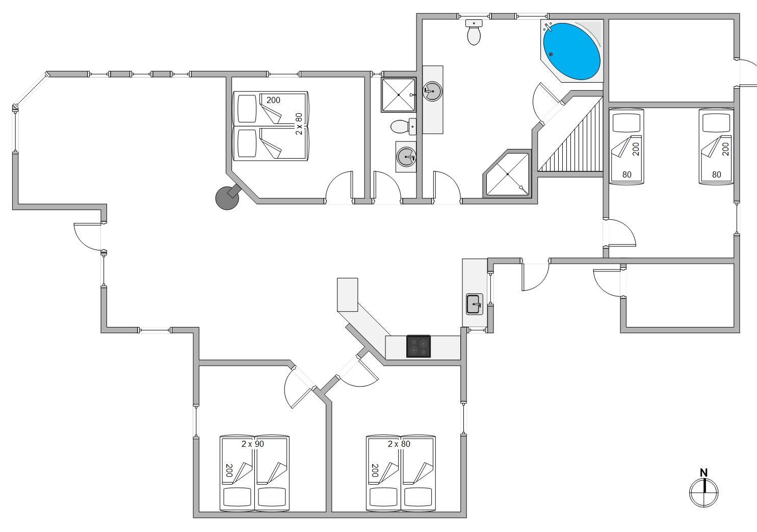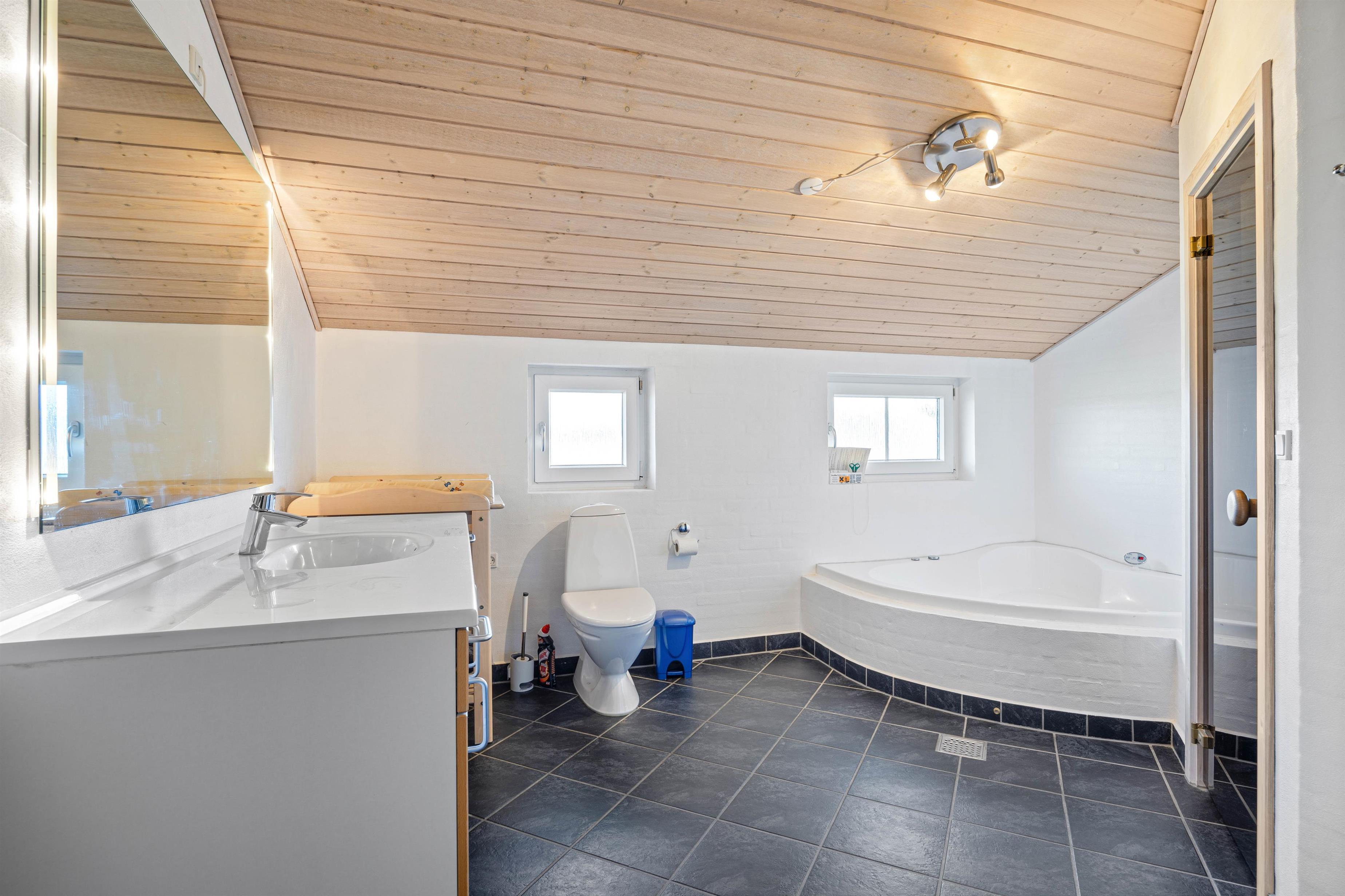 Køkkenet indeholder alt, hvad I behøver for at forkæle hinanden med lækre hjemmelavede måltider, herunder opvaskemaskine og en separat fryser på 60 l. I det fælles opholdsrum er gulvvarme, så her er både lunt og hyggeligt med eller uden ild i brændeovnen. I de 2 badeværelser er også gulvvarme, og i forbindelse med det ene- er også sauna og spabad, så I kan arrangere jeres egen lille wellnessaften.