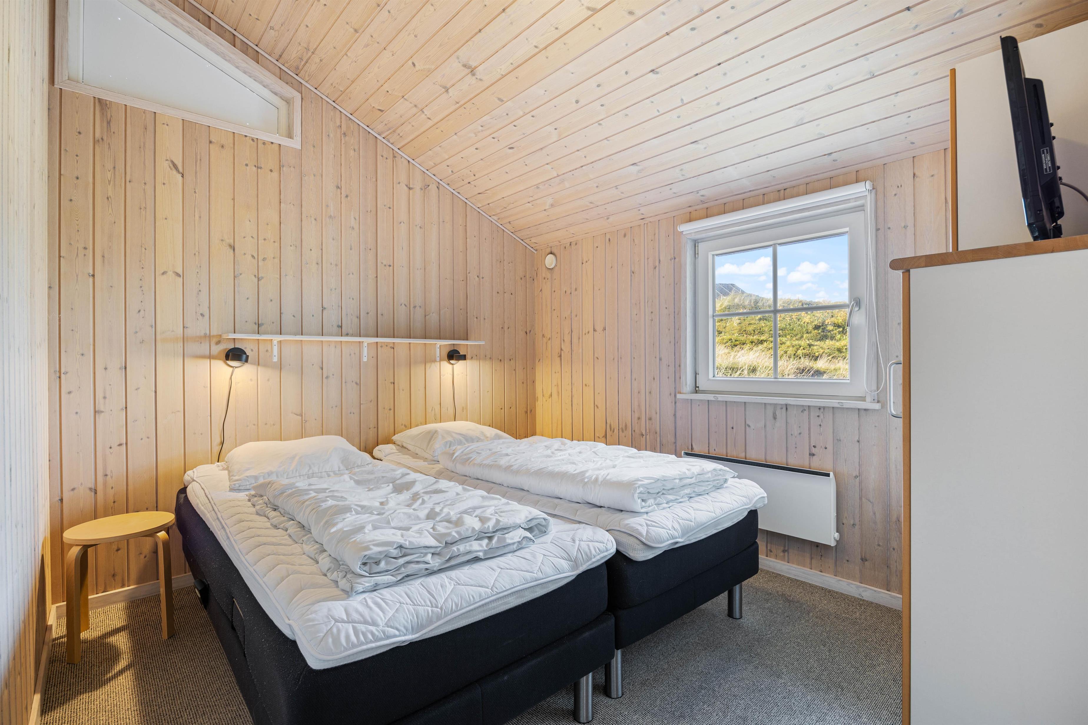 I de 4 hyggelige soveværelser finder I 3 komfortable dobbeltsenge og 2 enkeltsenge, så I kan indrette jer efter behov og nyde en god nattesøvn i den friske vesterhavsluft. Med vaskemaskine og tørretumbler til rådighed, har I mulighed for at opfriske håndklæderne eller garderoben i løbet af ferien. Den energibesparende varmepumpe sørger hurtigt og effektivt for et behageligt indeklima og en god temperatur i feriehuset.