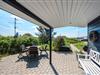 Det flotte og utraditionelle feriehus er beliggende på en naturgrund og har en stor afskærmet og næsten helt overdækket terrasse med havemøbler, liggestole og grill, der kan levere et ægte sommermåltid. Terrassen er også indhegnet, så hundene kan gå frit rundt. Skråt overfor terrassen er der mulighed for leg – både for børn og voksne. Her er nemlig sandkasse, gyngestativ og en petanquebane.
