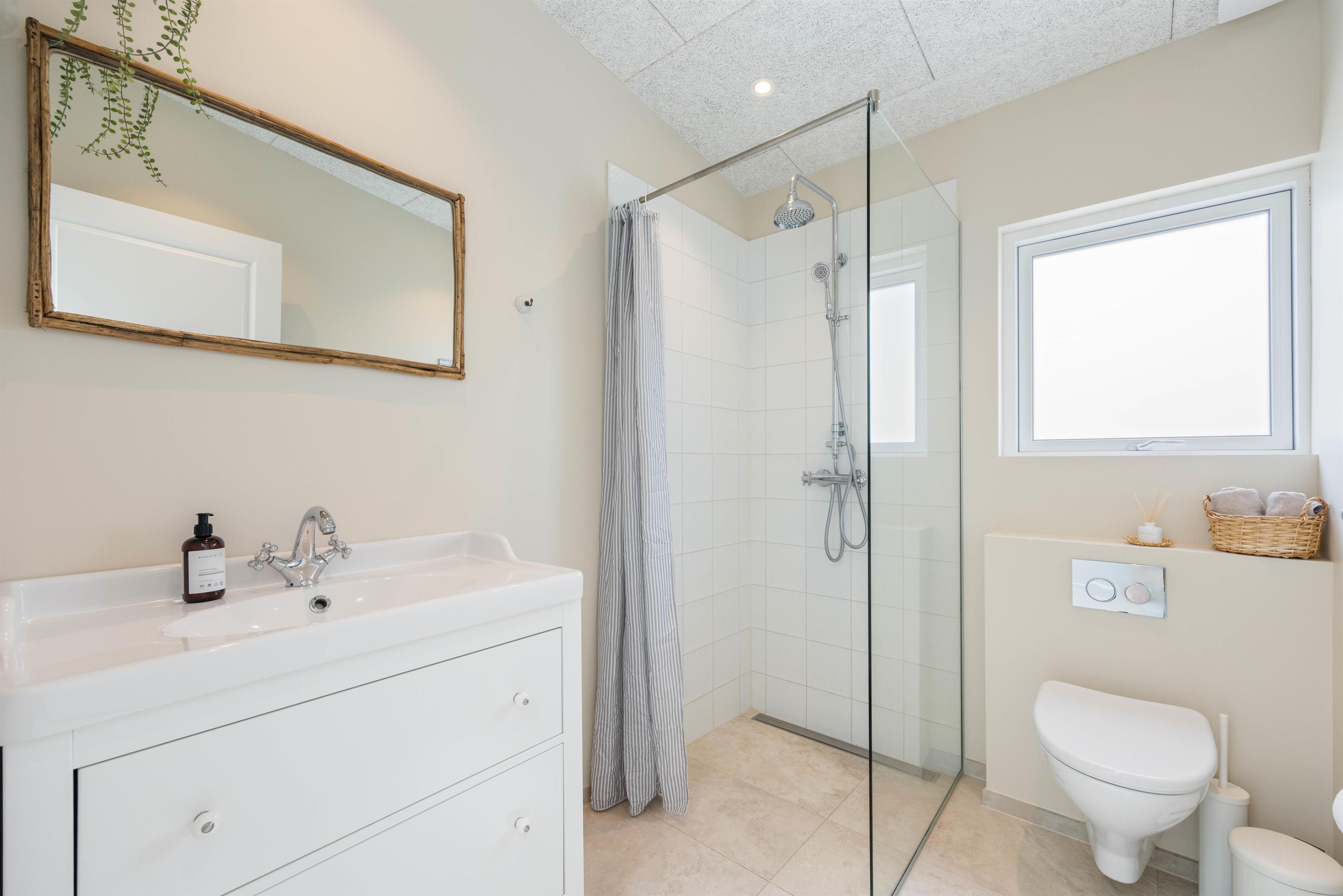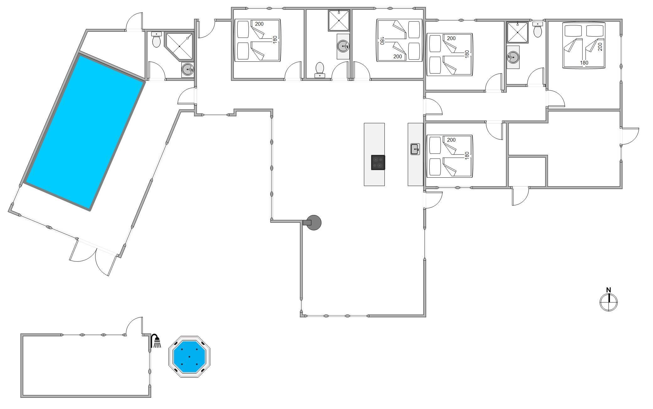 Et af sommerhusets absolut highlights er den superskønne poolafdeling med svømmetræner. Swimmingpoolen er 160 cm dyb. Her er der underholdning for store og små. Sommerhusets 3 badeværelser er alle med gulvvarme, hvilket er meget behagelig, især en kold efterårsmorgen med bare fødder.