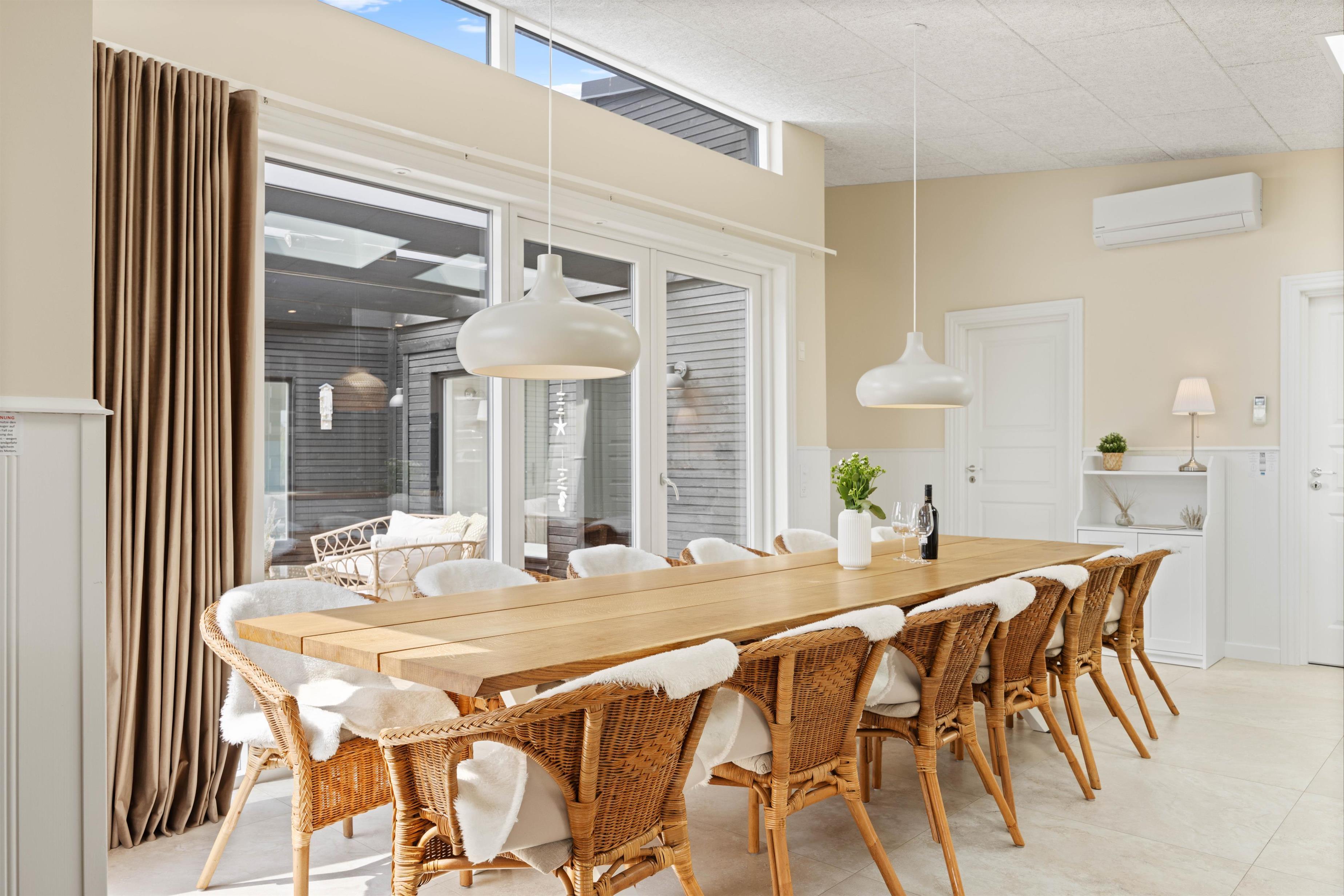 Drømmer I om femstjernet luksus tæt på Vesterhavet? Så er dette luksuriøse sommerhus på Bjerregårdsvej 227 et meget godt bud på jeres næste sommerferie. Her er der med de 180 m2 rigeligt med plads til 10 personer og jeres hunde. Dette aktivitetssommerhus byder på swimmingpool, bordtennis, udespa, udesauna, udebruser og lynhurtigt internet. Sommerhuset er beliggende kun 550 meter fra den smukke, hvide sandstrand. Ved sommerhuset er der endvidere mulighed for at oplade jeres bil via el-ladestikket.