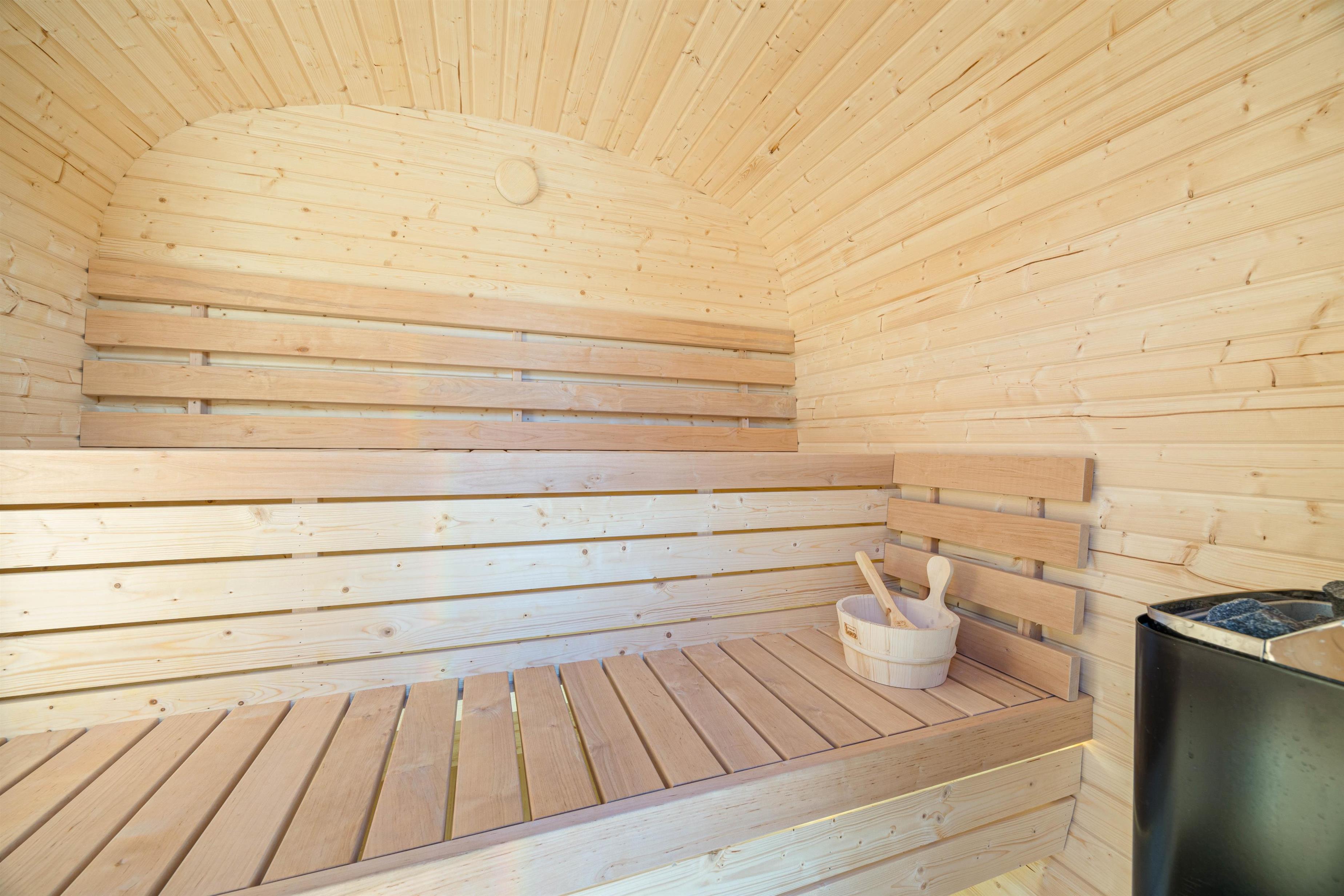 På den delvist overdækkede terrasse kan I nyde aftenen med en hyggelig grillaften i fællesskab. Bagefter inviterer vildmarksbadet i haven sammen med udendørssaunaen jer til at slappe af under den stjerneklare himmel, mens I lytter til havets rolige brusen bag klitterne.