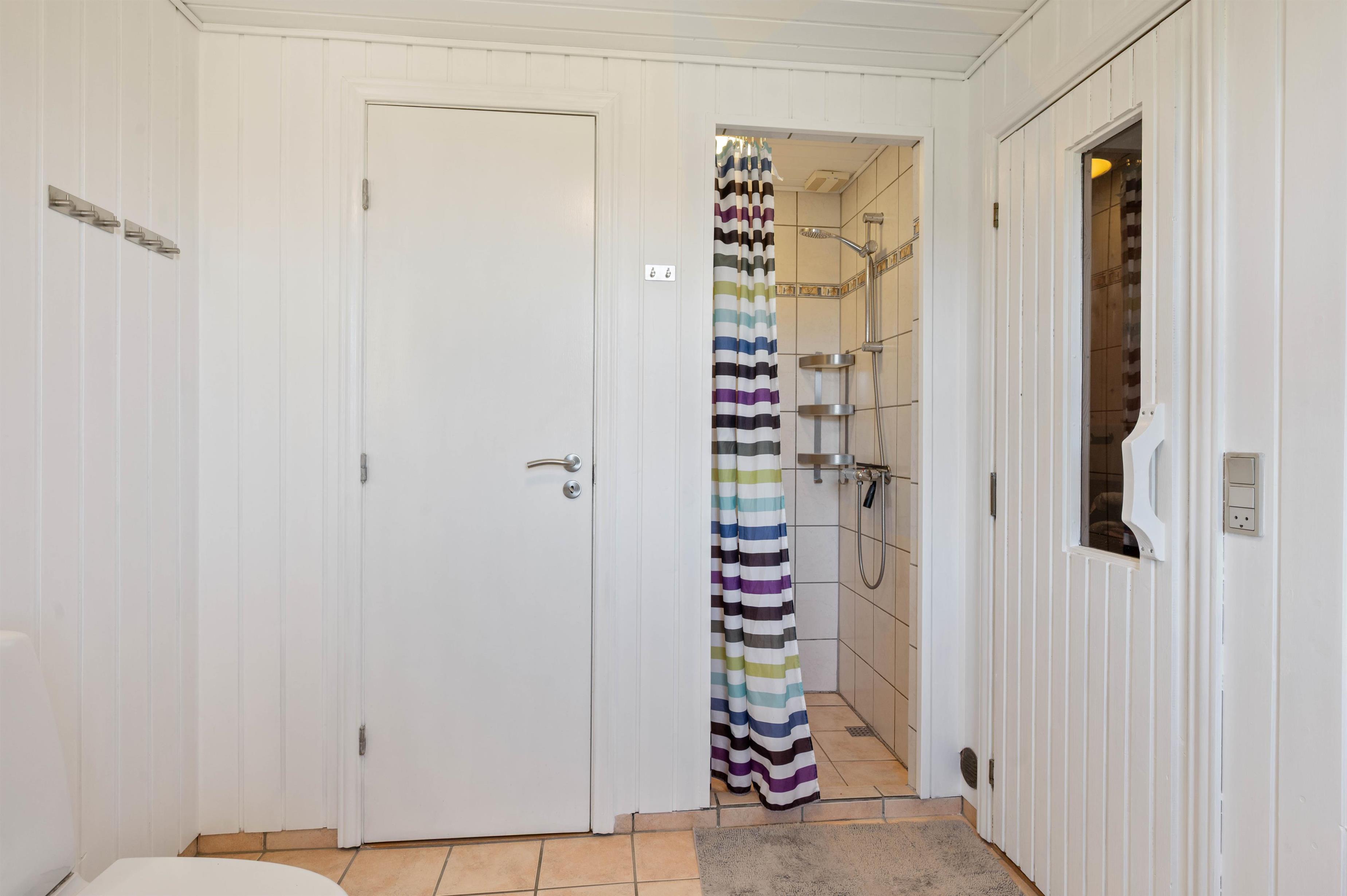 Sommerhuset har en hyggelig og lys indretning, og her er plads til 6 feriegæster. Sommerhuset har 3 gode soveværelser – 2 med dobbeltsenge og ét med 2 komfortable enkeltsenge. Fra feriehusets badeværelse har I indgang til saunaen, som indbyder til afslapning og velvære efter en lang dag ved stranden.
