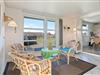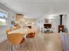 Køkkenet ligger i åben forbindelse med stuen, som er pænt indrettet med gode møbler og en brændeovn, som sætter prikken over i´et til feriestemningen. Fra stuen er der adgang til den hyggelige udestue, hvor I kan tilbringe mange feriestunder med en kop kaffe eller et sjovt spil.
