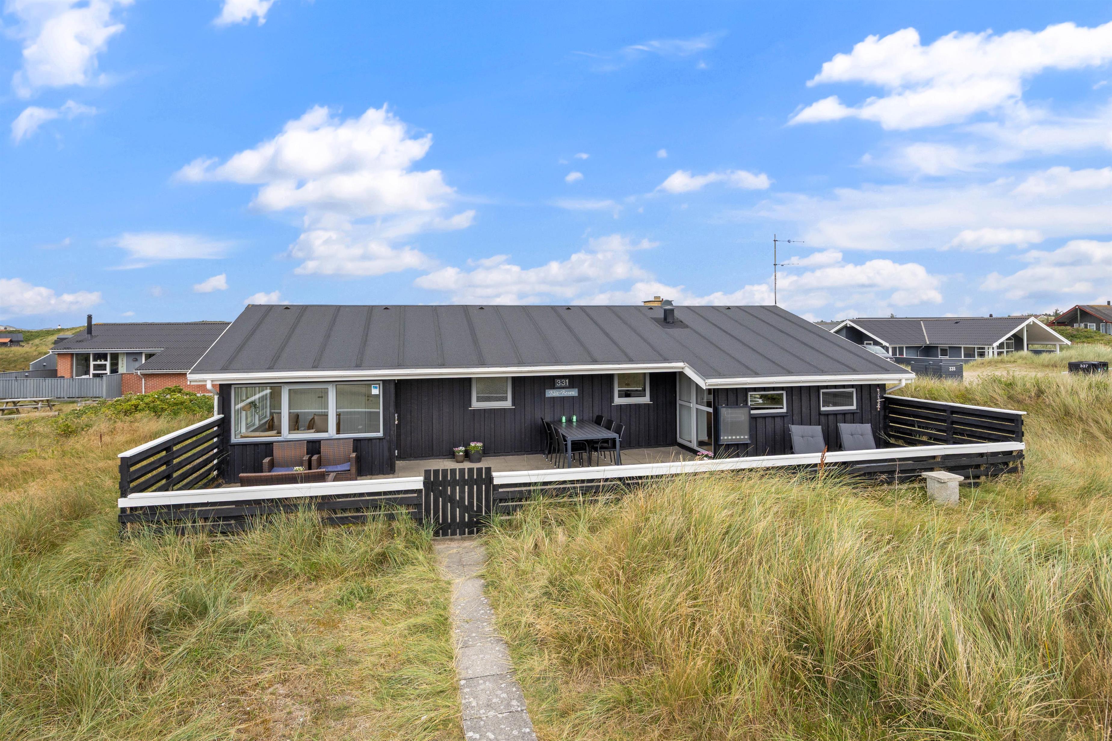 Sommerhuset ligger i det populære ferieområde Bjerregård, som er præget at naturskønne klit- og hedearealer. Her kan I gå lange ture ved det gode stisystem eller ved Vesterhavet, som kun ligger 250 meter fra sommerhuset.