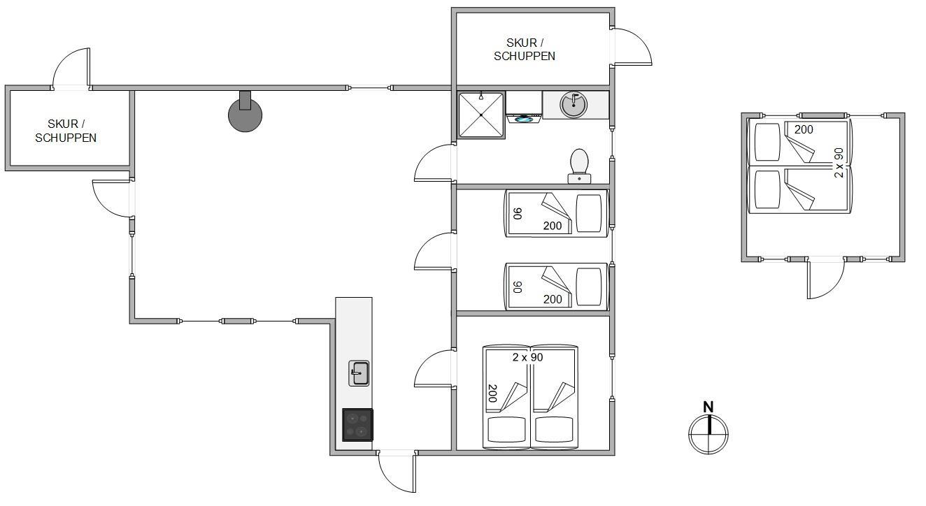 Sommerhuset på Bjerregårdsvej 320 er indrettet til 6 personer fordelt på 2 dejlige soverum inde i huset, samt med en dobbeltseng til 2 personer i det hyggelige tilhørende anneks. Det er helt ideelt, hvis I har teenagerne eller et vennepar, som ønsker lidt privatliv, med på ferie.
