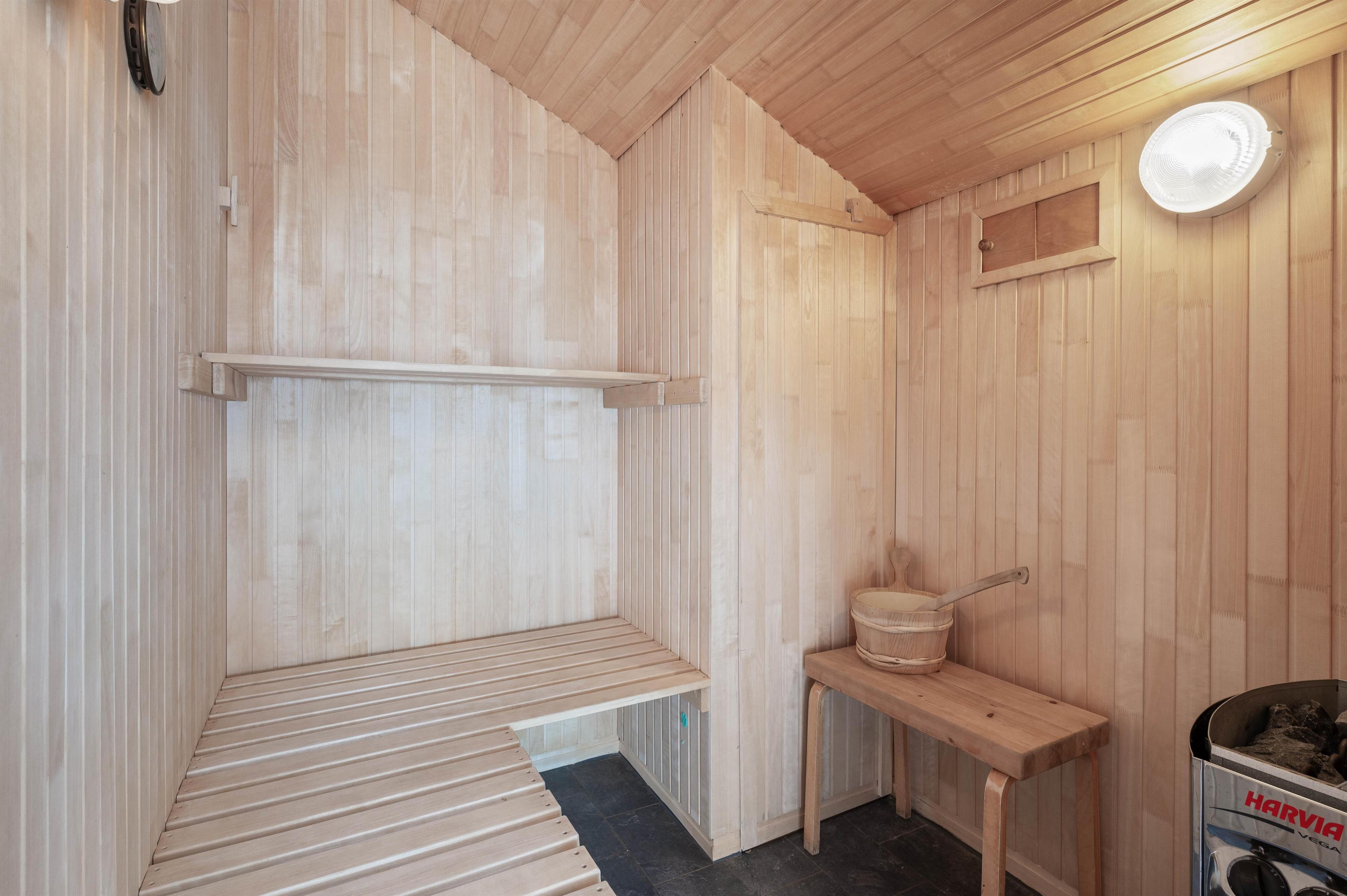 I forbindelse med det store badeværelse er der både spa og sauna, så her kan I have en lille wellnessafdeling. Vaskemaskine, tørretumbler og energibesparende varmepumpe er til rådighed for jer i feriehuset.
