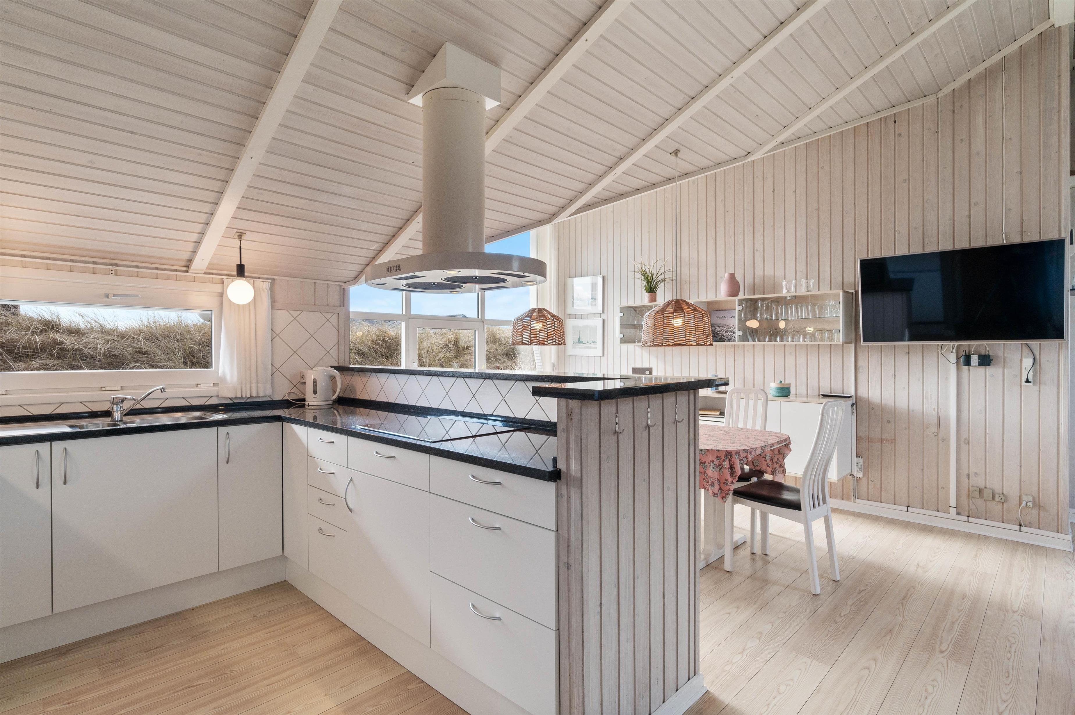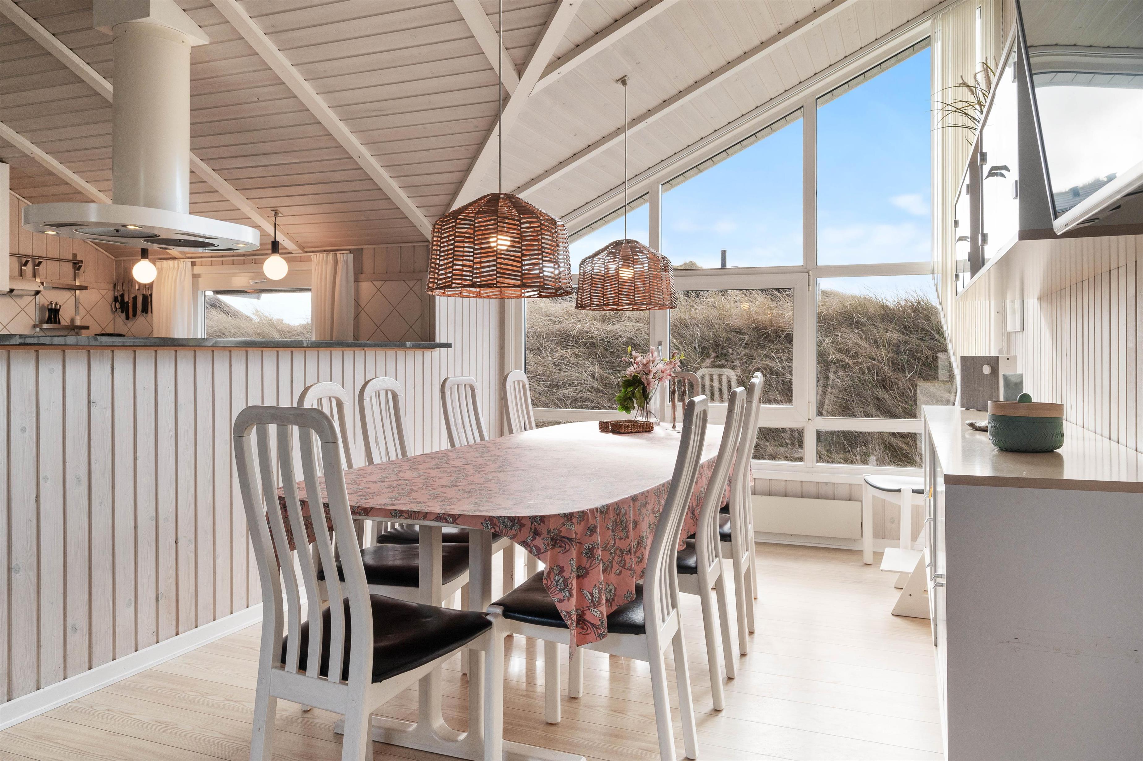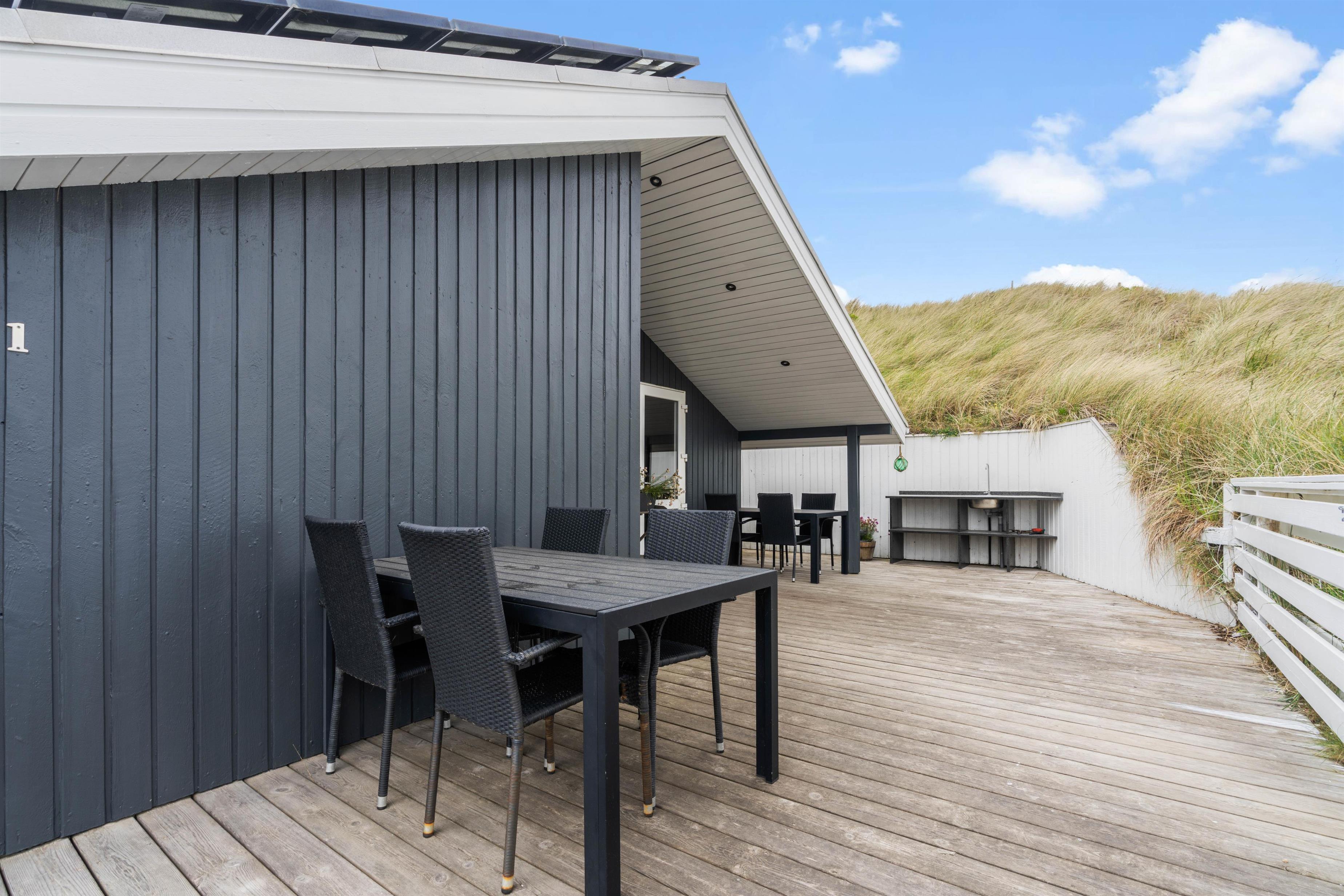 I dette flotte sommerhus får du alt, hvad du kan ønske dig på en vellykket ferie. Her er masser af plads til op til 8 personer, og detaljerne i feriehuset er gennemtænkte. Vesterhavet og den flotte sandstrand er under 200 meter væk. Indendørs kan I hygge jer med brændeovn, sauna og spa.