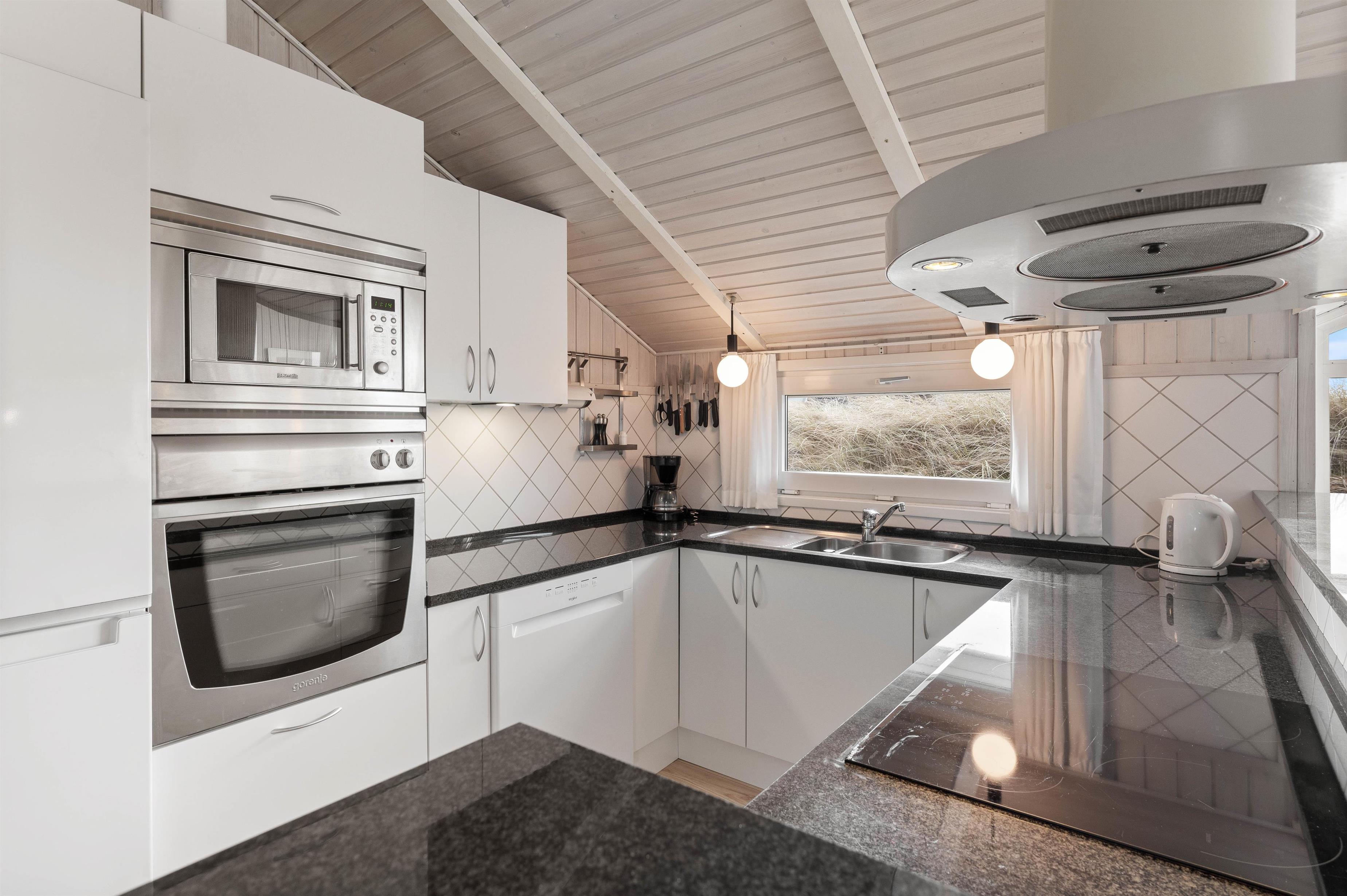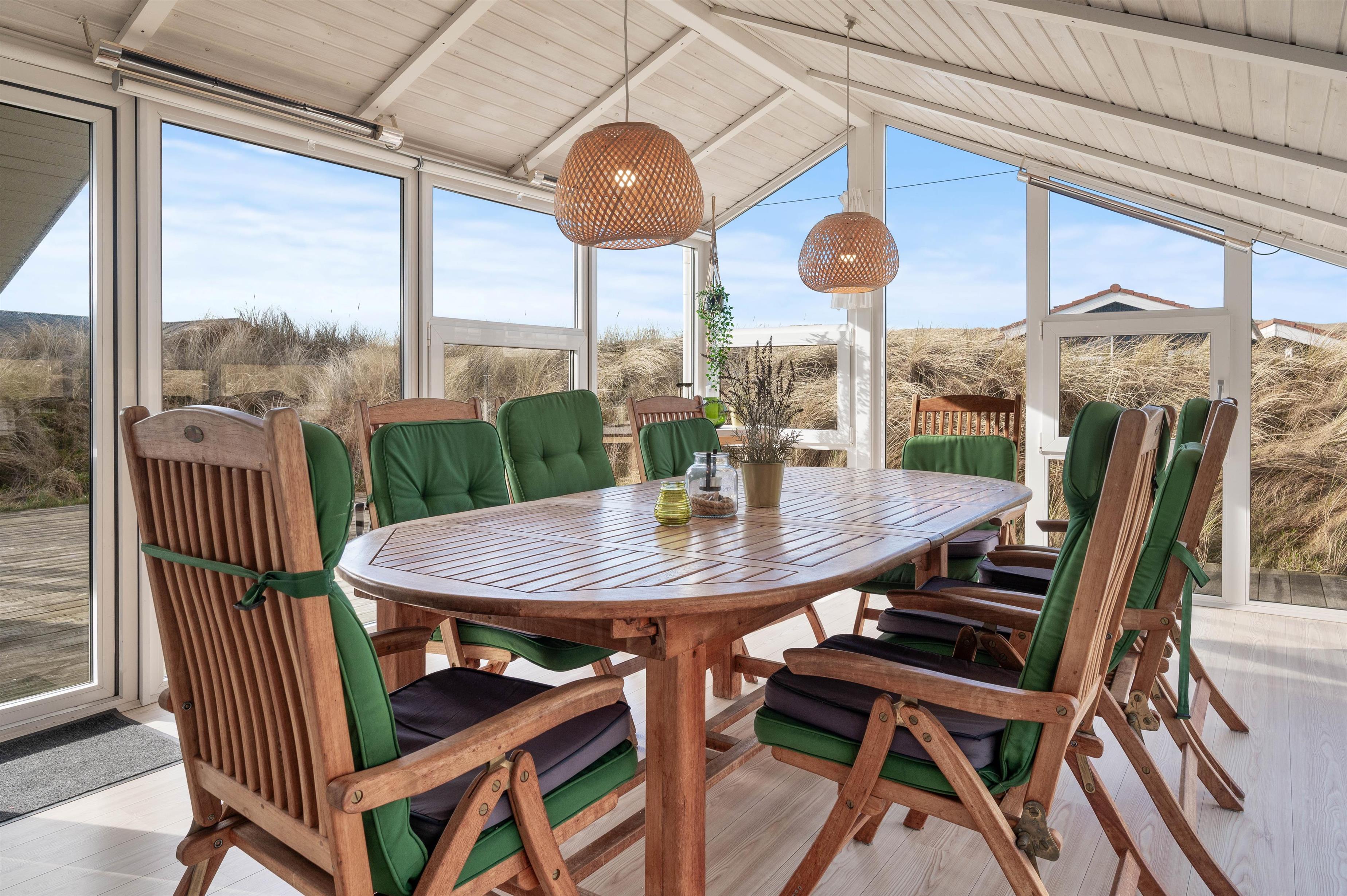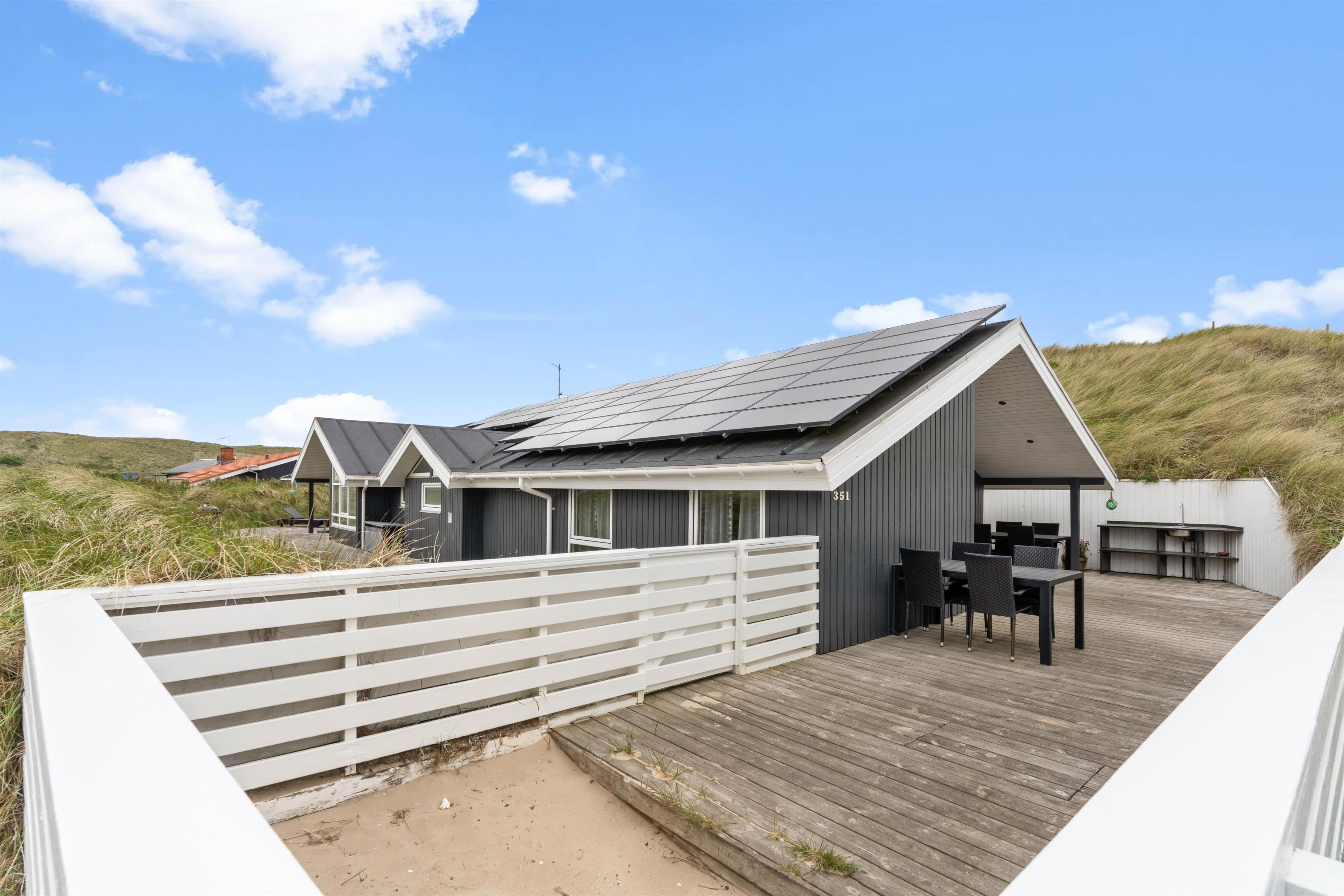 I dette flotte sommerhus får du alt, hvad du kan ønske dig på en vellykket ferie. Her er masser af plads til op til 8 personer, og detaljerne i feriehuset er gennemtænkte. Vesterhavet og den flotte sandstrand er under 200 meter væk. Indendørs kan I hygge jer med brændeovn, sauna og spa.
