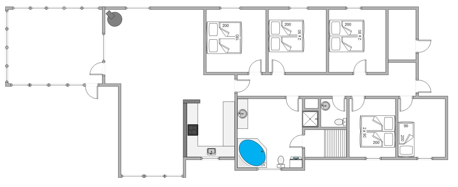 I det lyse og venlige sommerhus på Bjerregårdsvej 351 kan I ikke undgå at få en dejlig ferie. Det åbne køkken indeholder alt, hvad I har brug for til at forkæle hinanden med lækre, hjemmelavede måltider. Der er et fint lysindfald i stuen med både ovenlysvinduer og de brede vinduespartier. I det komfortable sofahjørne kan I hygge jer foran den knitrende ild i brændeovnen, og den store udestue er lys og indbydende hele dagen. De 5 soveværelser er alle indrettet med gode senge og skabsplads, og i børneværelset er der installeret et ekstra fjernsyn.